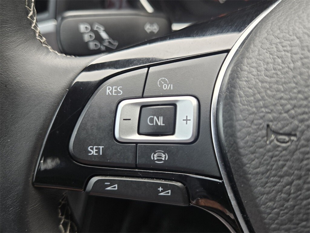 This vehicle comes equipped with Storm Gray/Black Premium Synthetic, 17" Twin 5-Spoke Alloy Wheels, 4 Speakers, 4-Wheel Disc Brakes, ABS brakes, Air Conditioning, Alloy wheels, AM/FM radio, Automatic temperature control, Brake assist, Bumpers: body-color, Delay-off headlights, Driver door bin, Driver vanity mirror, Dual front impact airbags, Dual front side impact airbags, Electronic Stability Control, Emergency communication system: VW Car-Net services (capabilities require enrollment or subscription), Exterior Parking Camera Rear, First Aid Kit, Front anti-roll bar, Front Bucket Seats, Front Center Armrest, Front dual zone A/C, Front fog lights, Front reading lights, Front wheel independent suspension, Fully automatic headlights, Heated door mirrors, Heated Front Comfort Seats, Heated front seats, Heavy Duty Trunk Liner w/VW CarGo Blocks, Illuminated entry, Leather Shift Knob, Low tire pressure warning, Monster Mats w/Logo Rubber Mats Kit (Set of 4), Occupant sensing airbag, Outside temperature display, Overhead airbag, Overhead console, Panic alarm, Passenger door bin, Passenger vanity mirror, Perforated V-Tex Leatherette Seat Trim, Power door mirrors, Power moonroof, Power steering, Power windows, Radio data system, Radio: Composition Color w/6.5" Touchscreen, Rear anti-roll bar, Rear reading lights, Rear seat center armrest, Rear window defroster, Remote keyless entry, Roadside Assistance Kit, Speed control, Speed-sensing steering, Split folding rear seat, Steering wheel mounted audio controls, Tachometer, Telescoping steering wheel, Tilt steering wheel, Traction control, Trip computer, Variably intermittent wipers, and VW App-Connect (w/Apple CarPlay, Android Auto & MirrorLink) .