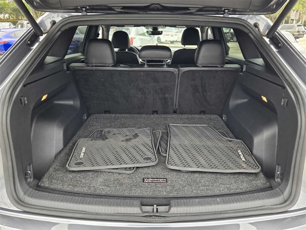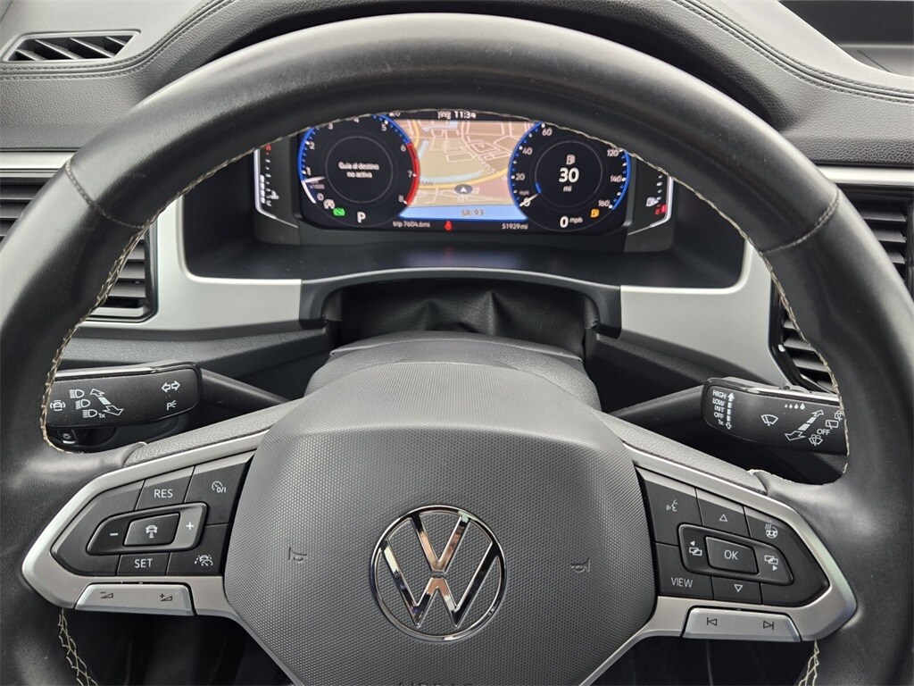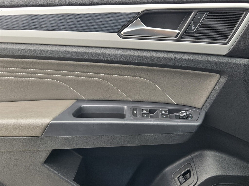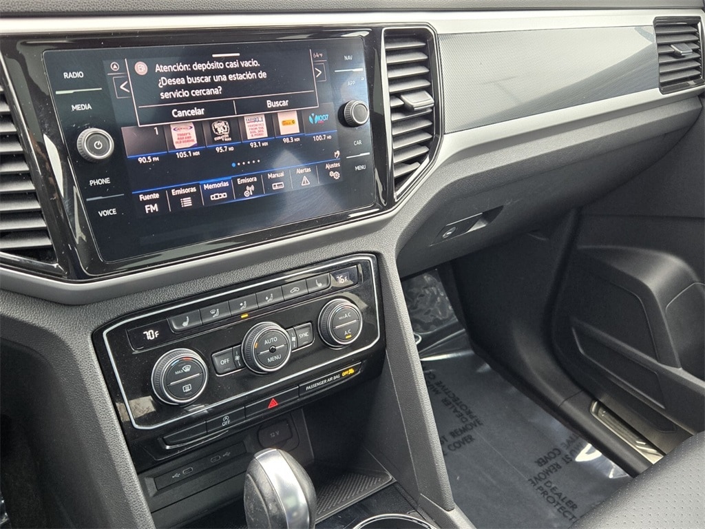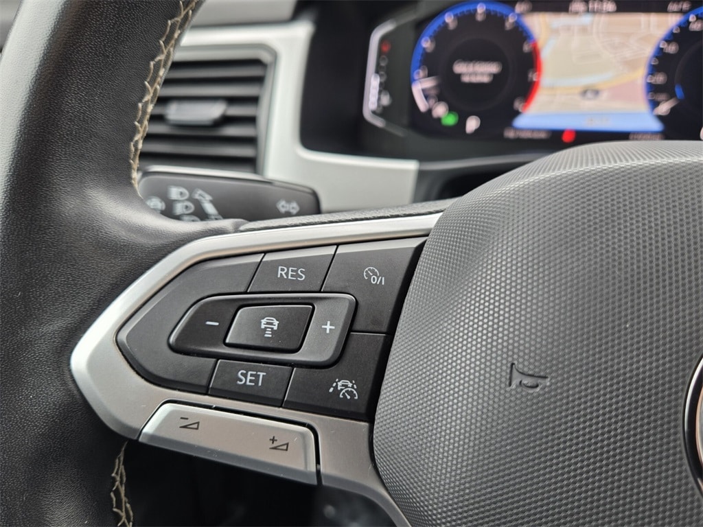 This vehicle comes equipped with 3.60 Axle Ratio, 4-Wheel Disc Brakes, 6 Speakers, ABS brakes, Active Blind Spot Monitor, Air Conditioning, Alloy wheels, AM/FM radio: SiriusXM with 360L, Auto High-beam Headlights, Auto-dimming Rear-View mirror, Automatic temperature control, Brake assist, Bumpers: body-color, Compass, Delay-off headlights, Driver door bin, Driver vanity mirror, Dual front impact airbags, Dual front side impact airbags, Electronic Stability Control, Emergency communication system: VW Car-Net services (capabilities require enrollment or subscription), Exterior Parking Camera Rear, Four wheel independent suspension, Front anti-roll bar, Front Bucket Seats, Front Center Armrest, Front dual zone A/C, Front fog lights, Front reading lights, Fully automatic headlights, Heated Comfort Front Bucket Seats, Heated door mirrors, Heated front seats, Heated steering wheel, Illuminated entry, Leather Shift Knob, Low tire pressure warning, Memory seat, Navigation System, Occupant sensing airbag, Outside temperature display, Overhead airbag, Overhead console, Panic alarm, Passenger door bin, Passenger vanity mirror, Perforated V-Tex Leatherette Seating Surfaces, Power door mirrors, Power driver seat, Power Liftgate, Power moonroof, Power passenger seat, Power steering, Power windows, Radio data system, Radio: MIB3 Discover Media w/8" Touchscreen Nav, Rain sensing wipers, Rear anti-roll bar, Rear reading lights, Rear seat center armrest, Rear window defroster, Rear window wiper, Remote keyless entry, Roof rack: rails only, Security system, Speed control, Speed-sensing steering, Split folding rear seat, Spoiler, Standard Suspension, Steering wheel mounted audio controls, Tachometer, Telescoping steering wheel, Tilt steering wheel, Traction control, Trip computer, Turn signal indicator mirrors, Variably intermittent wipers, and Wheels: 20" 5-Spoke Silver Alloy (V71) .
