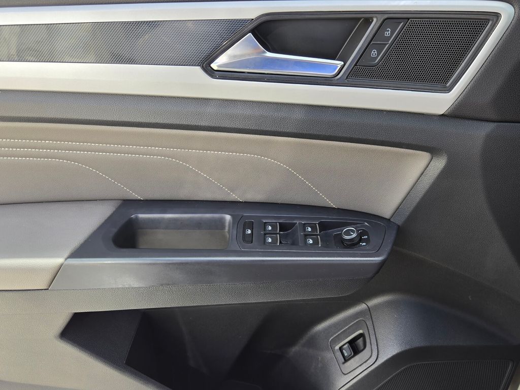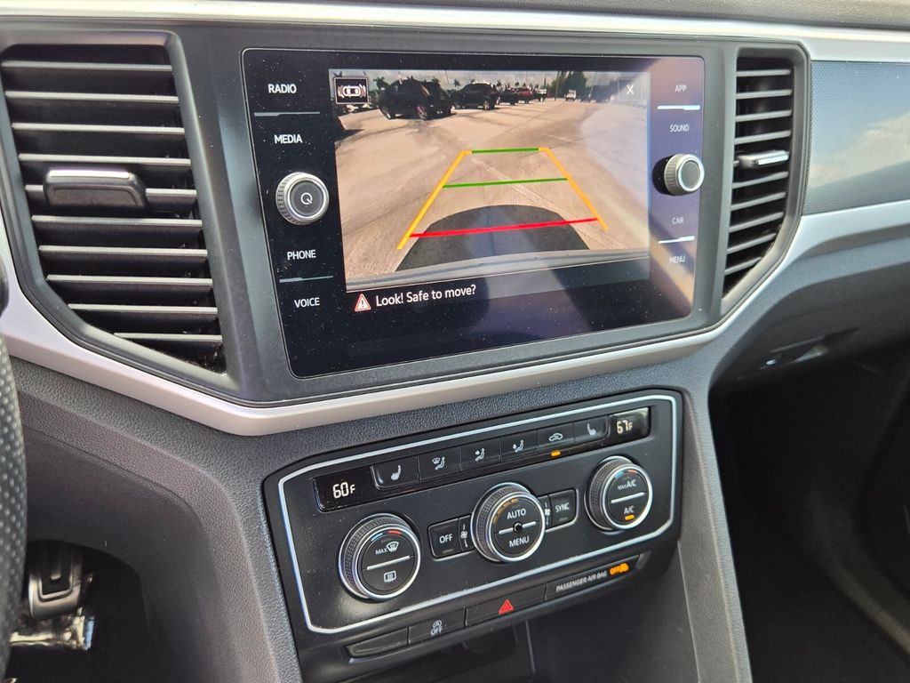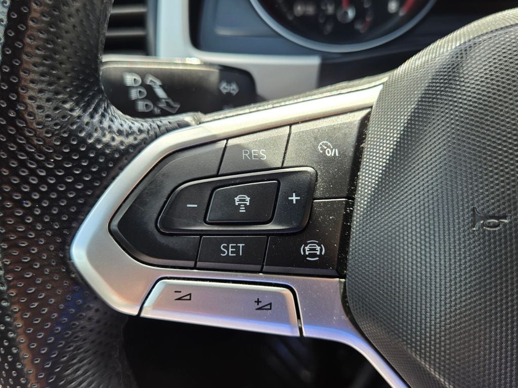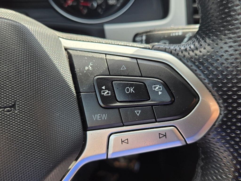 This vehicle comes equipped with Panoramic Sunroof Package (Power Tilting & Sliding Panoramic Sunroof), V6 Towing Package, 3.60 Axle Ratio, 4-Wheel Disc Brakes, 6 Speakers, ABS brakes, Air Conditioning, Alloy wheels, AM/FM radio: SiriusXM with 360L, Auto-dimming Rear-View mirror, Automatic temperature control, Brake assist, Bumpers: body-color, Compass, Delay-off headlights, Driver door bin, Driver vanity mirror, Dual front impact airbags, Dual front side impact airbags, Electronic Stability Control, Emergency communication system: VW Car-Net services (capabilities require enrollment or subscription), Exterior Parking Camera Rear, Four wheel independent suspension, Frameless Self-Dimming Rearview Mirror, Front anti-roll bar, Front Bucket Seats, Front Center Armrest, Front dual zone A/C, Front fog lights, Front reading lights, Fully automatic headlights, Heated Comfort Front Bucket Seats, Heated door mirrors, Heated front seats, Heavy Duty Trunk Liner w/VW CarGo Blocks, Illuminated entry, Leather Shift Knob, Low tire pressure warning, Occupant sensing airbag, Outside temperature display, Overhead airbag, Overhead console, Panic alarm, Passenger door bin, Passenger vanity mirror, Perforated V-Tex Leatherette Seating Surfaces, Power door mirrors, Power driver seat, Power Liftgate, Power steering, Power windows, Privacy Cover, Radio data system, Radio: MIB3 Composition Media w/8" Touchscreen, Rain sensing wipers, Rear anti-roll bar, Rear reading lights, Rear seat center armrest, Rear window defroster, Rear window wiper, Remote keyless entry, Roof rack: rails only, Rubber Mats Kit, Security system, Speed control, Speed-sensing steering, Split folding rear seat, Spoiler, Sport steering wheel, Standard Suspension, Steering wheel mounted audio controls, Tachometer, Telescoping steering wheel, Tilt steering wheel, Traction control, Trip computer, Turn signal indicator mirrors, Variably intermittent wipers, and Wheels: 20" Twin 5-Spoke Dark Graphite Alloy .