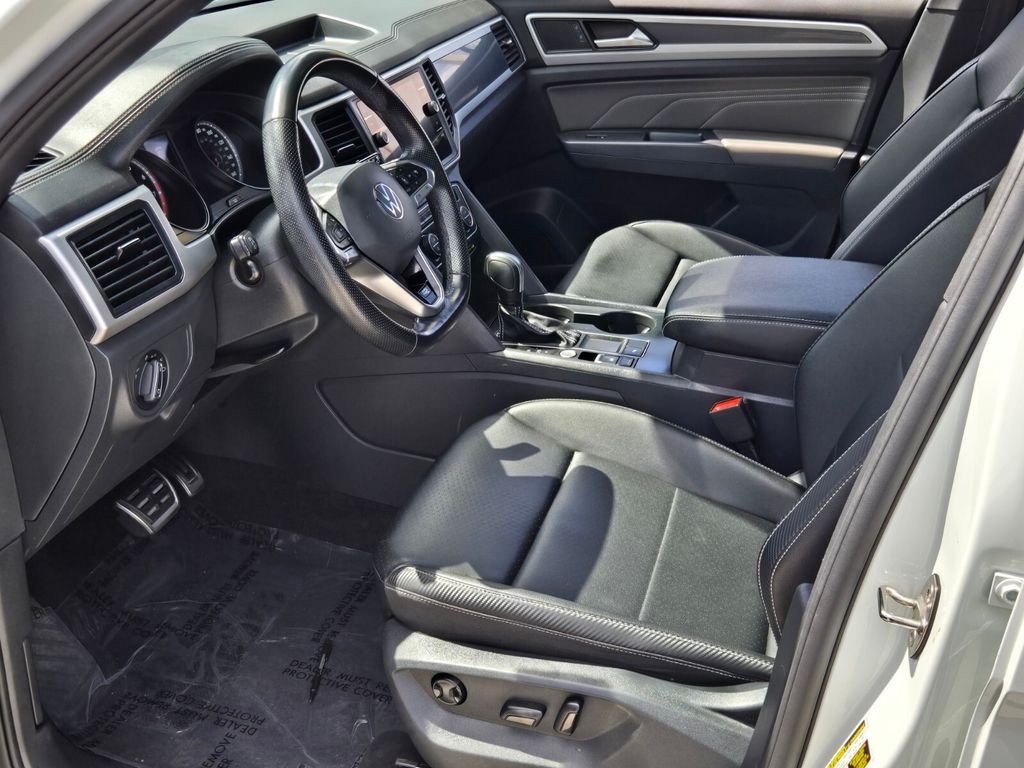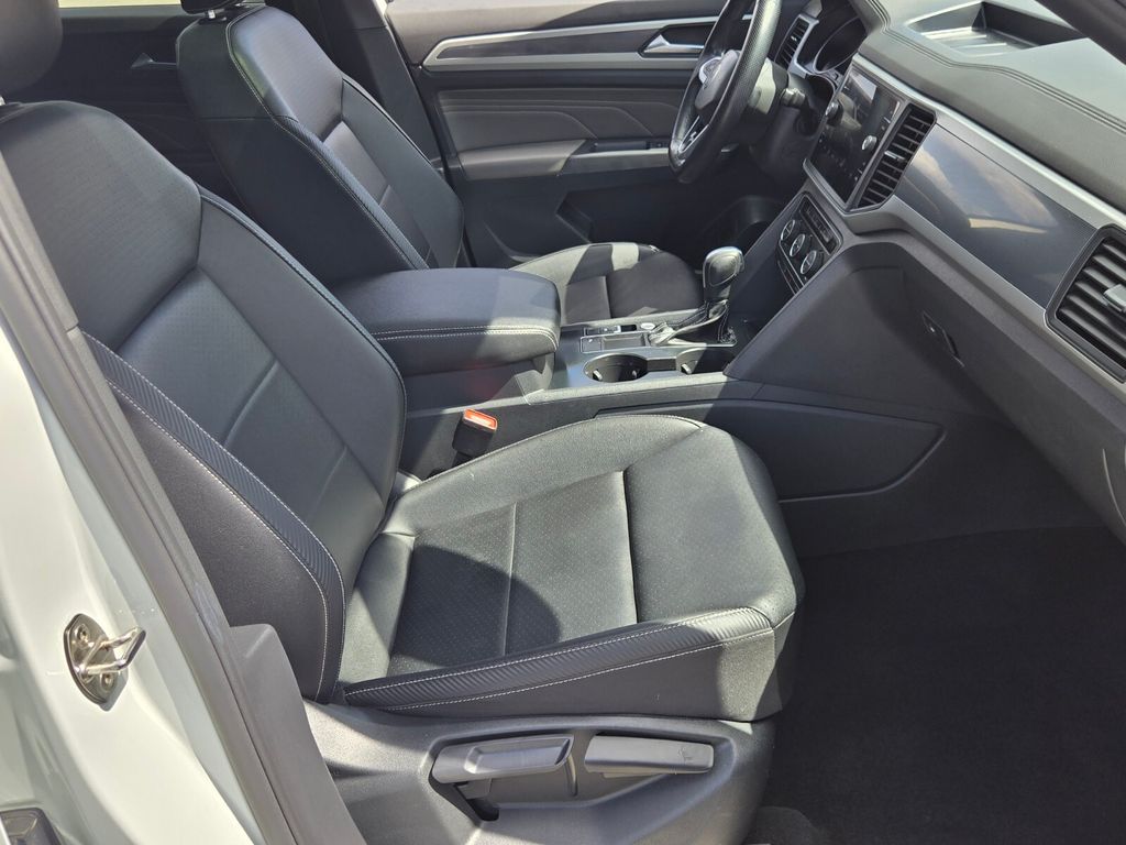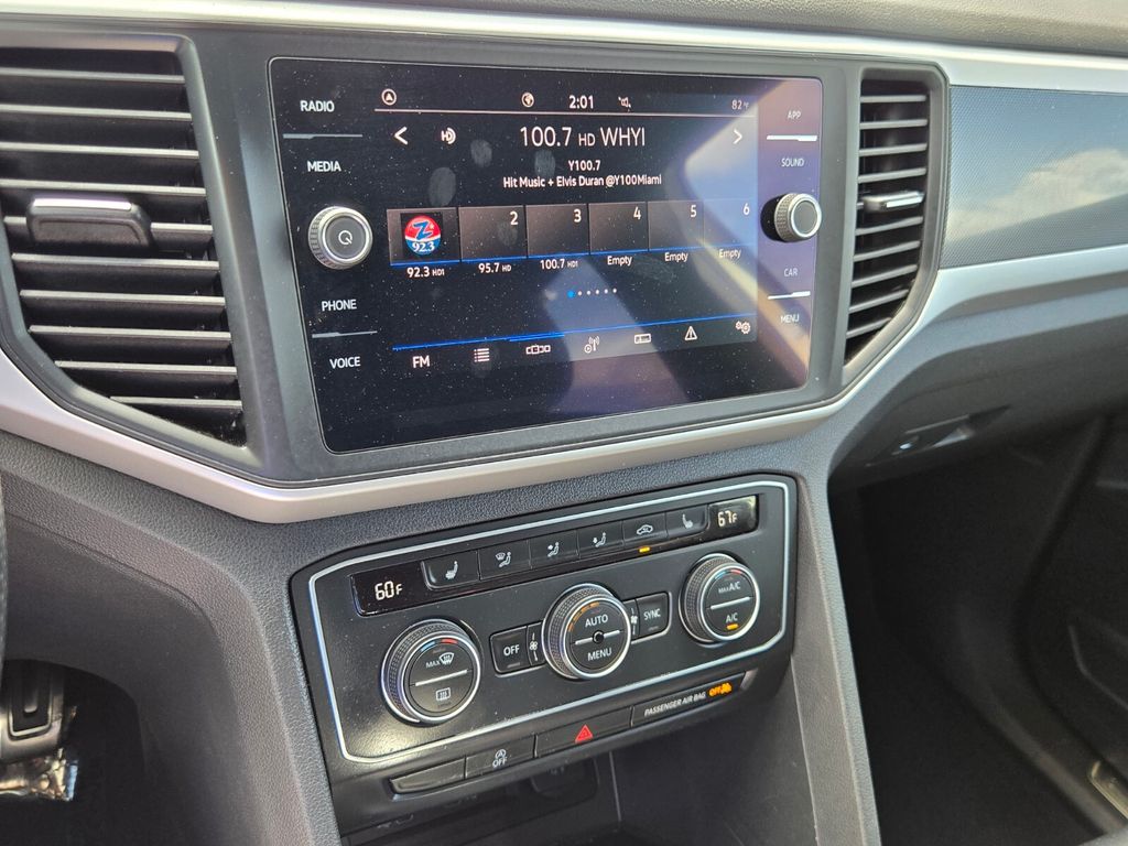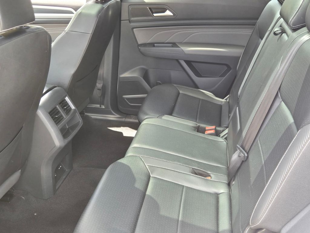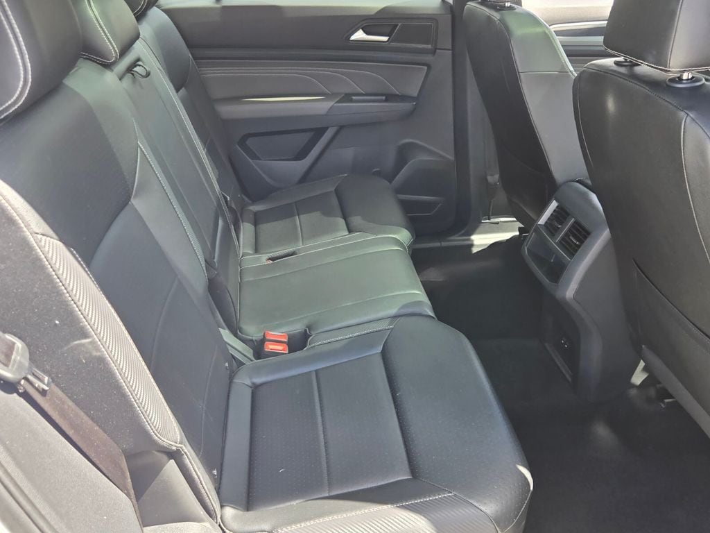 This vehicle comes equipped with Panoramic Sunroof Package (Power Tilting & Sliding Panoramic Sunroof), V6 Towing Package, 3.60 Axle Ratio, 4-Wheel Disc Brakes, 6 Speakers, ABS brakes, Air Conditioning, Alloy wheels, AM/FM radio: SiriusXM with 360L, Auto-dimming Rear-View mirror, Automatic temperature control, Brake assist, Bumpers: body-color, Compass, Delay-off headlights, Driver door bin, Driver vanity mirror, Dual front impact airbags, Dual front side impact airbags, Electronic Stability Control, Emergency communication system: VW Car-Net services (capabilities require enrollment or subscription), Exterior Parking Camera Rear, Four wheel independent suspension, Frameless Self-Dimming Rearview Mirror, Front anti-roll bar, Front Bucket Seats, Front Center Armrest, Front dual zone A/C, Front fog lights, Front reading lights, Fully automatic headlights, Heated Comfort Front Bucket Seats, Heated door mirrors, Heated front seats, Heavy Duty Trunk Liner w/VW CarGo Blocks, Illuminated entry, Leather Shift Knob, Low tire pressure warning, Occupant sensing airbag, Outside temperature display, Overhead airbag, Overhead console, Panic alarm, Passenger door bin, Passenger vanity mirror, Perforated V-Tex Leatherette Seating Surfaces, Power door mirrors, Power driver seat, Power Liftgate, Power steering, Power windows, Privacy Cover, Radio data system, Radio: MIB3 Composition Media w/8" Touchscreen, Rain sensing wipers, Rear anti-roll bar, Rear reading lights, Rear seat center armrest, Rear window defroster, Rear window wiper, Remote keyless entry, Roof rack: rails only, Rubber Mats Kit, Security system, Speed control, Speed-sensing steering, Split folding rear seat, Spoiler, Sport steering wheel, Standard Suspension, Steering wheel mounted audio controls, Tachometer, Telescoping steering wheel, Tilt steering wheel, Traction control, Trip computer, Turn signal indicator mirrors, Variably intermittent wipers, and Wheels: 20" Twin 5-Spoke Dark Graphite Alloy .
