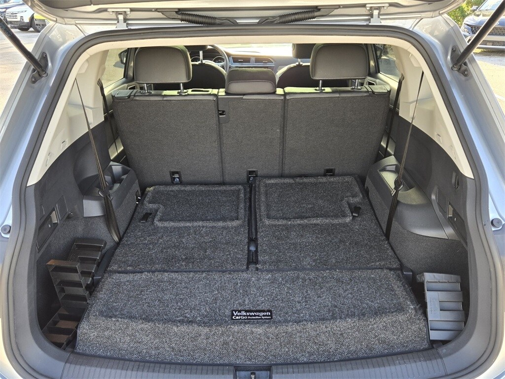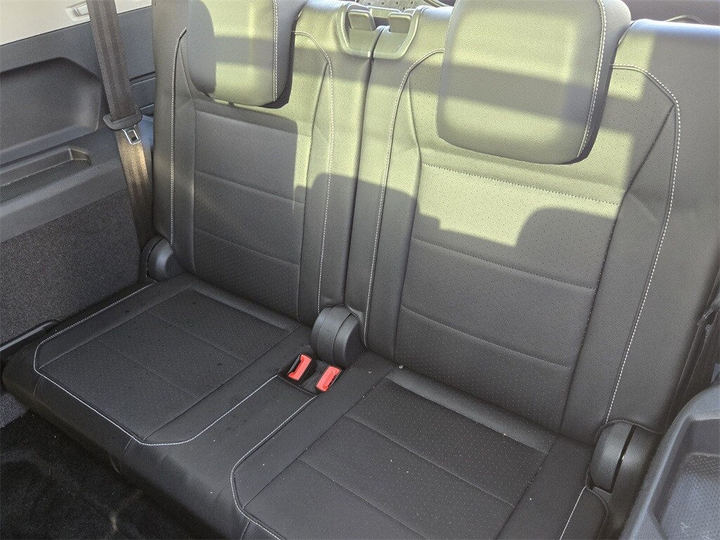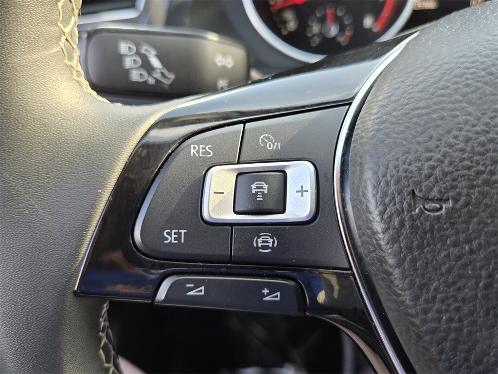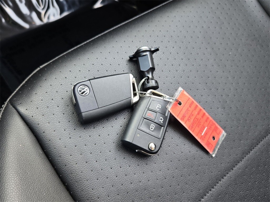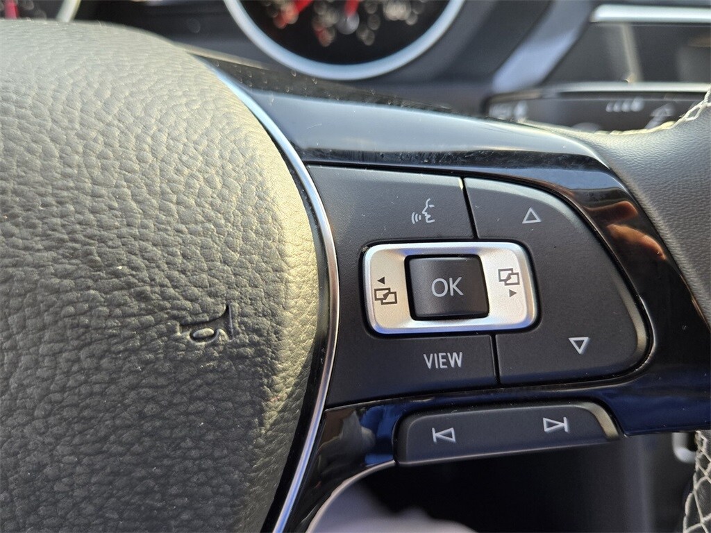 This vehicle comes equipped with 3.33 Axle Ratio, 3rd row seats: bench, 4-Wheel Disc Brakes, 4-Wheel Independent Suspension, 6 Speakers, ABS brakes, Air Conditioning, Alloy wheels, AM/FM radio: SiriusXM with 360L, Automatic temperature control, Brake assist, Bumpers: body-color, Compass, Delay-off headlights, Driver door bin, Driver vanity mirror, Dual front impact airbags, Dual front side impact airbags, Electronic Stability Control, Emergency communication system: VW Car-Net services (capabilities require enrollment or subscription), Exterior Parking Camera Rear, Forward collision: FCW w/Autonomous Emergency Braking mitigation, Four wheel independent suspension, Front anti-roll bar, Front Bucket Seats, Front Center Armrest, Front dual zone A/C, Front reading lights, Fully automatic headlights, Heated door mirrors, Heated Front Comfort Seats, Heated front seats, Illuminated entry, Leather Shift Knob, Low tire pressure warning, Occupant sensing airbag, Outside temperature display, Overhead airbag, Overhead console, Panic alarm, Passenger door bin, Passenger vanity mirror, Perforated V-Tex Leatherette Seating Surfaces, Power door mirrors, Power driver seat, Power steering, Power windows, Radio data system, Radio: MIB3 Composition Media AM/FM/HD, Rear anti-roll bar, Rear reading lights, Rear seat center armrest, Rear window defroster, Rear window wiper, Remote keyless entry, Roof rack: rails only, Security system, Speed control, Speed-sensing steering, Split folding rear seat, Spoiler, Steering wheel mounted audio controls, Tachometer, Telescoping steering wheel, Tilt steering wheel, Traction control, Trip computer, Turn signal indicator mirrors, Variably intermittent wipers, and Wheels: 17" 2-Tone Machined & Black Alloy .