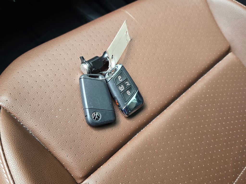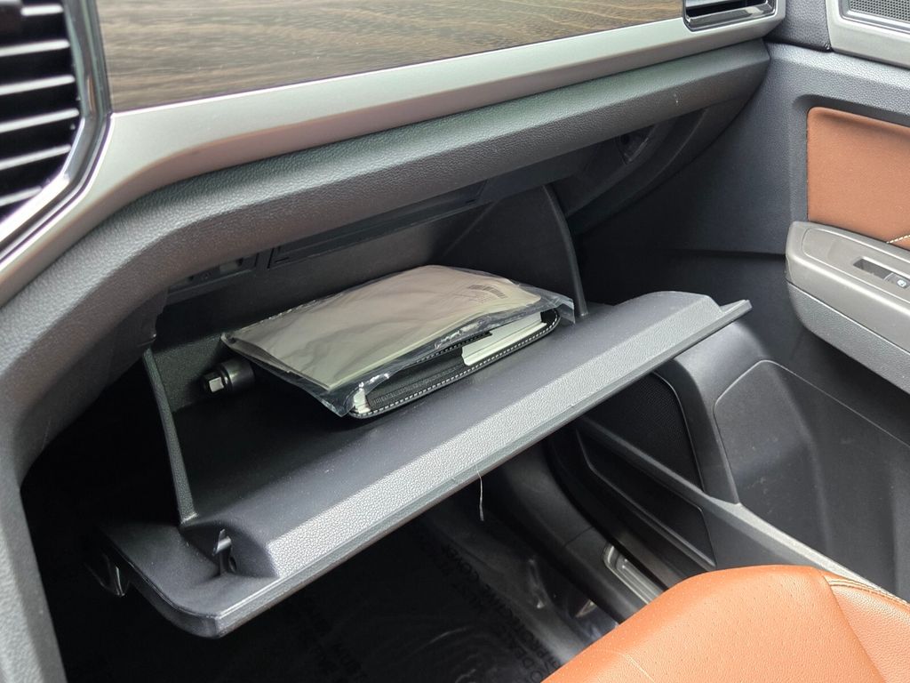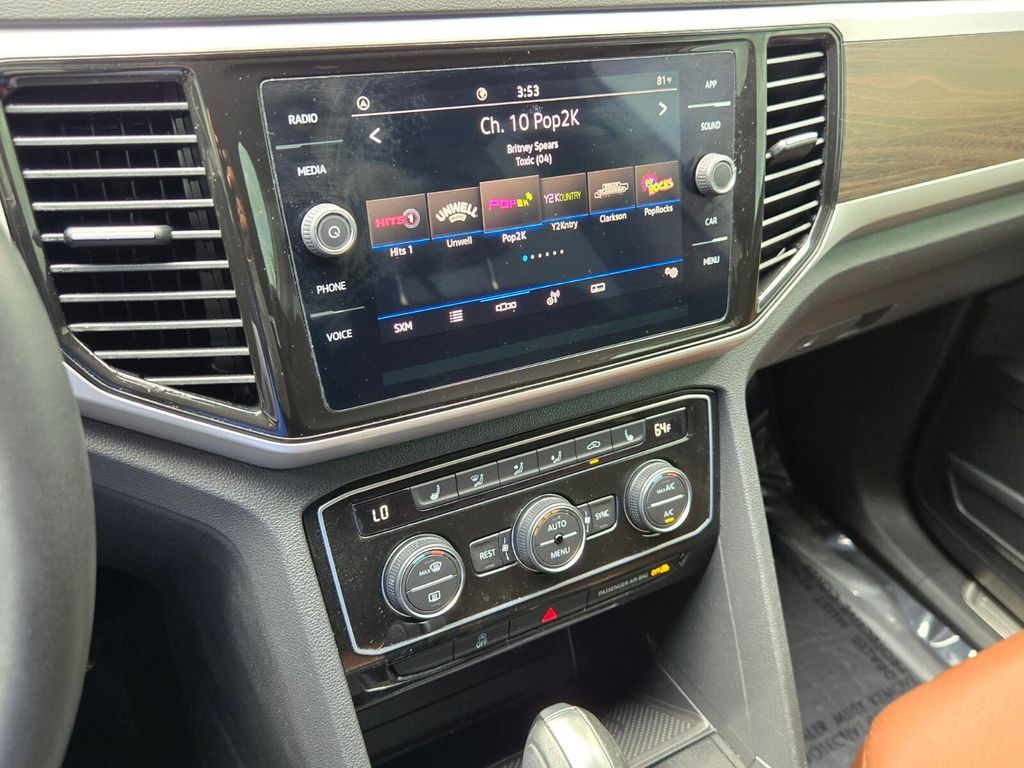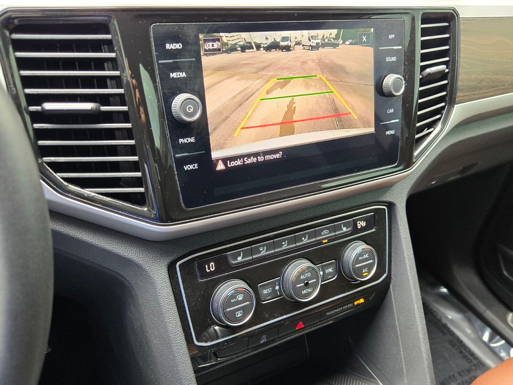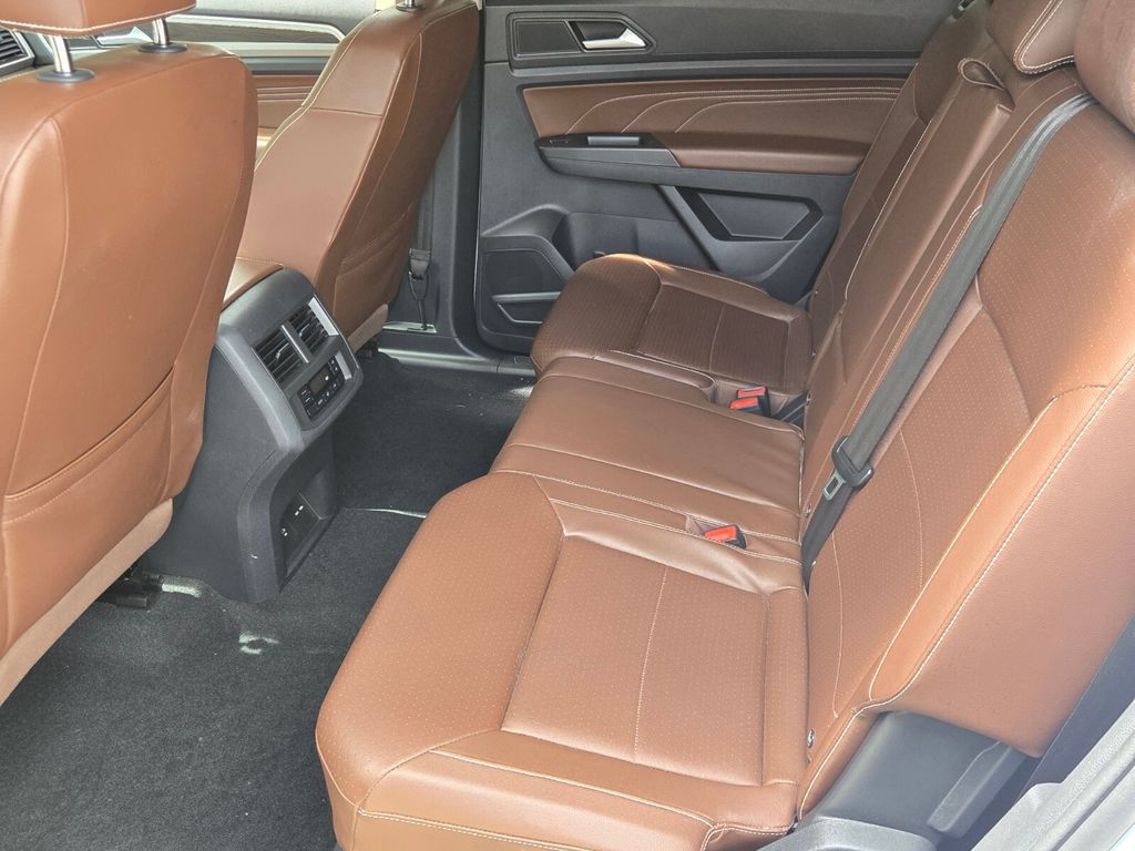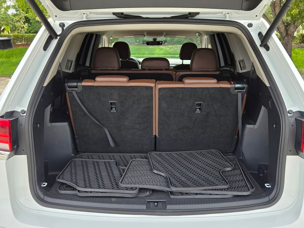 This vehicle comes equipped with Black Wheel Package (Wheels: 20" x 8J 5-Spoke Black Painted Alloy), 3.60 Axle Ratio, 3rd row seats: split-bench, 4-Wheel Disc Brakes, 6 Speakers, ABS brakes, Air Conditioning, Alloy wheels, AM/FM radio: SiriusXM with 360L, Auto-Dimming Rear-View Mirror, Auto-dimming Rear-View mirror, Automatic temperature control, Brake assist, Bumpers: body-color, Compass, Delay-off headlights, Driver door bin, Driver vanity mirror, Dual front impact airbags, Dual front side impact airbags, Electronic Stability Control, Emergency communication system, Exterior Parking Camera Rear, First Aid Kit, Four wheel independent suspension, Front anti-roll bar, Front Bucket Seats, Front Center Armrest, Front dual zone A/C, Front fog lights, Front reading lights, Fully automatic headlights, Heated Comfort Front Bucket Seats, Heated door mirrors, Heated front seats, Illuminated entry, Leather Shift Knob, Low tire pressure warning, Occupant sensing airbag, Outside temperature display, Overhead airbag, Overhead console, Panic alarm, Passenger door bin, Passenger vanity mirror, Perforated V-Tex Leatherette Seating Surfaces, Power door mirrors, Power driver seat, Power Liftgate, Power steering, Power windows, Privacy Cover (DISC), Radio data system, Radio: MIB3 Composition Media w/8" Touchscreen, Rain sensing wipers, Rear air conditioning, Rear anti-roll bar, Rear reading lights, Rear seat center armrest, Rear window defroster, Rear window wiper, Remote keyless entry, Roadside Assistance Kit (DISC), Roof rack: rails only, Rubber Mats Kit - Bench Seats (DISC), Security system, Speed control, Speed-sensing steering, Split folding rear seat, Spoiler, Standard Suspension, Steering wheel mounted audio controls, Tachometer, Telescoping steering wheel, Tilt steering wheel, Traction control, Trip computer, Trunk Liner w/VW CarGo Blocks, Turn signal indicator mirrors, Variably intermittent wipers, and Wheels: 20" x 8J 5-Spoke Silver Painted Alloy .