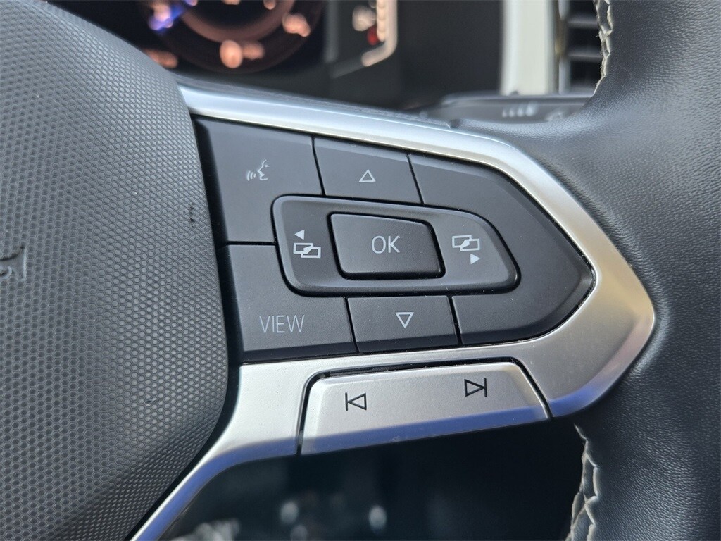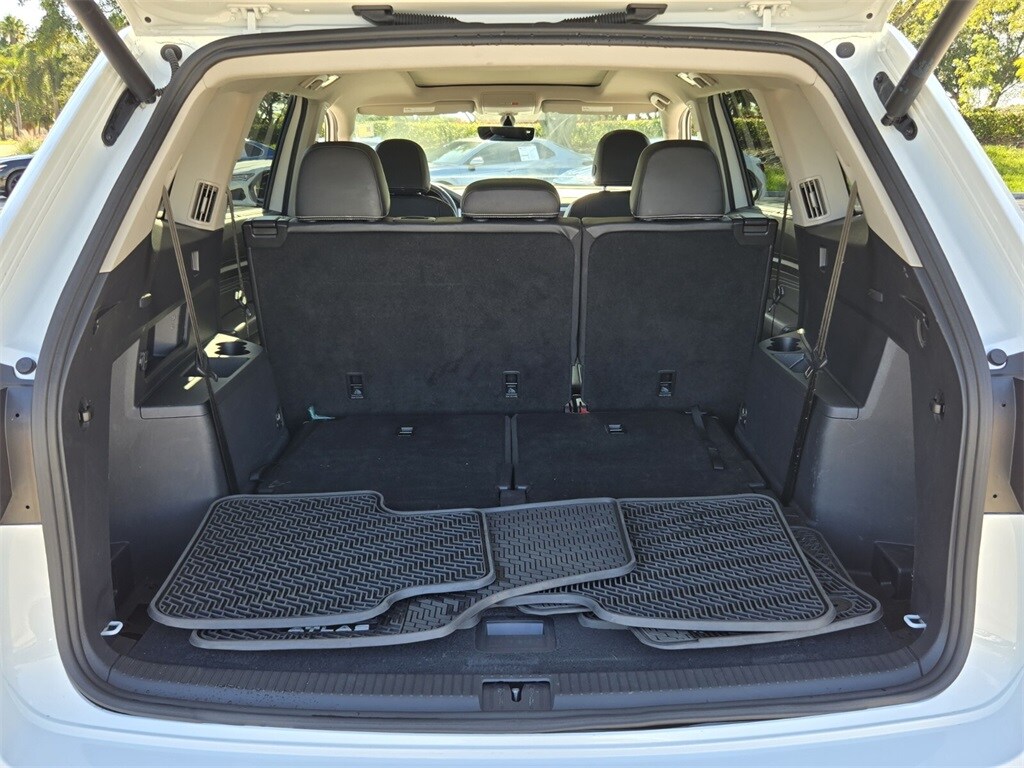 This vehicle comes equipped with Panoramic Sunroof Package (Power Tilting & Sliding Panoramic Sunroof), Trailer Hitch Extras, Volkswagen Certified Pre-Owned Certified, 3.60 Axle Ratio, 3rd row seats: split-bench, 4-Wheel Disc Brakes, 6 Speakers, ABS brakes, Air Conditioning, Alloy wheels, AM/FM radio: SiriusXM with 360L, Auto-Dimming Rear-View Mirror, Auto-dimming Rear-View mirror, Automatic temperature control, Brake assist, Bumpers: body-color, Compass, Delay-off headlights, Driver door bin, Driver vanity mirror, Dual front impact airbags, Dual front side impact airbags, Electronic Stability Control, Emergency communication system, Exterior Parking Camera Rear, First Aid Kit, Four wheel independent suspension, Front anti-roll bar, Front Bucket Seats, Front Center Armrest, Front dual zone A/C, Front fog lights, Front reading lights, Fully automatic headlights, Heated Comfort Front Bucket Seats, Heated door mirrors, Heated front seats, Illuminated entry, Leather Shift Knob, Low tire pressure warning, Occupant sensing airbag, Outside temperature display, Overhead airbag, Overhead console, Panic alarm, Passenger door bin, Passenger vanity mirror, Perforated V-Tex Leatherette Seating Surfaces, Power door mirrors, Power driver seat, Power Liftgate, Power steering, Power windows, Radio data system, Radio: MIB3 Composition Media w/8" Touchscreen, Rain sensing wipers, Rear air conditioning, Rear anti-roll bar, Rear reading lights, Rear seat center armrest, Rear window defroster, Rear window wiper, Remote keyless entry, Roadside Assistance Kit, Roof rack: rails only, Rubber Mats Kit - Bench Seats, Security system, Speed control, Speed-sensing steering, Split folding rear seat, Spoiler, Standard Suspension, Steering wheel mounted audio controls, Tachometer, Telescoping steering wheel, Tilt steering wheel, Traction control, Trip computer, Trunk Liner w/VW CarGo Blocks, Turn signal indicator mirrors, Variably