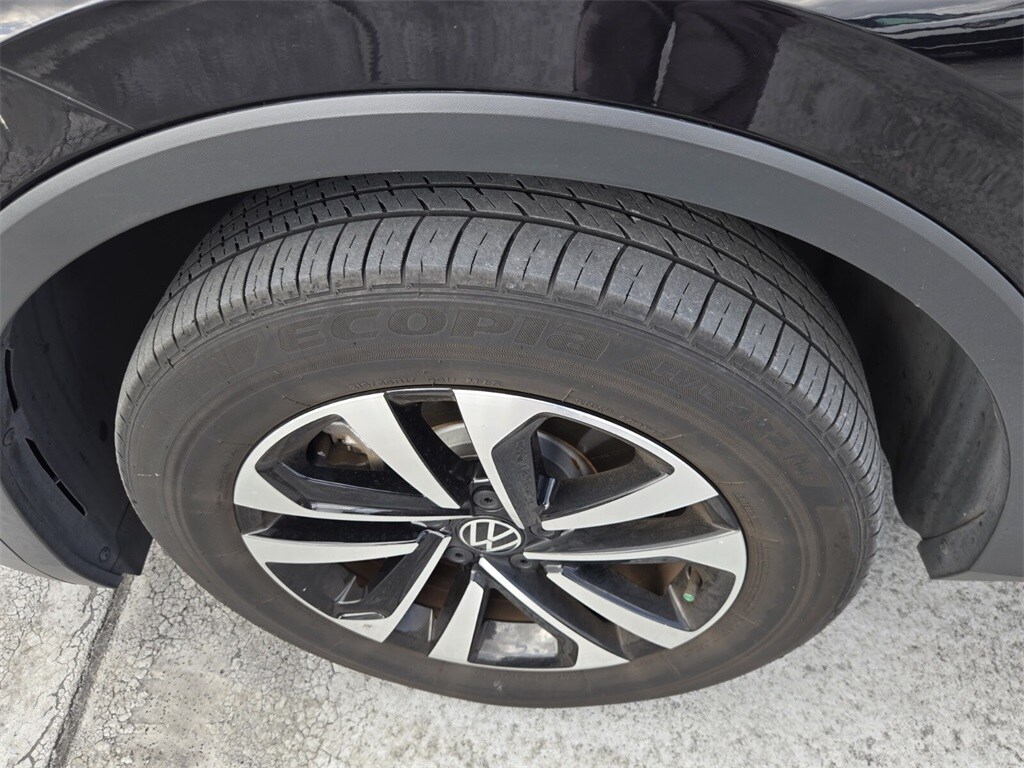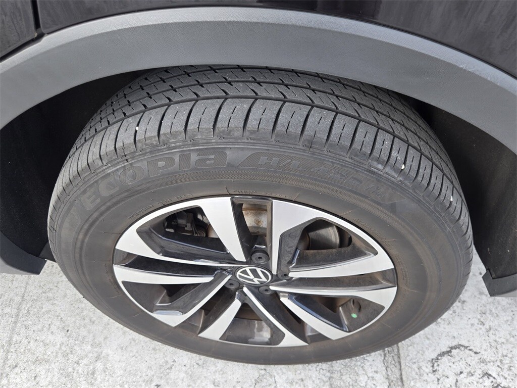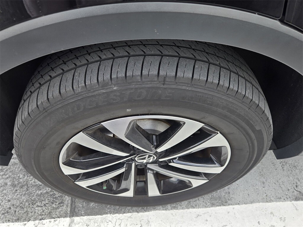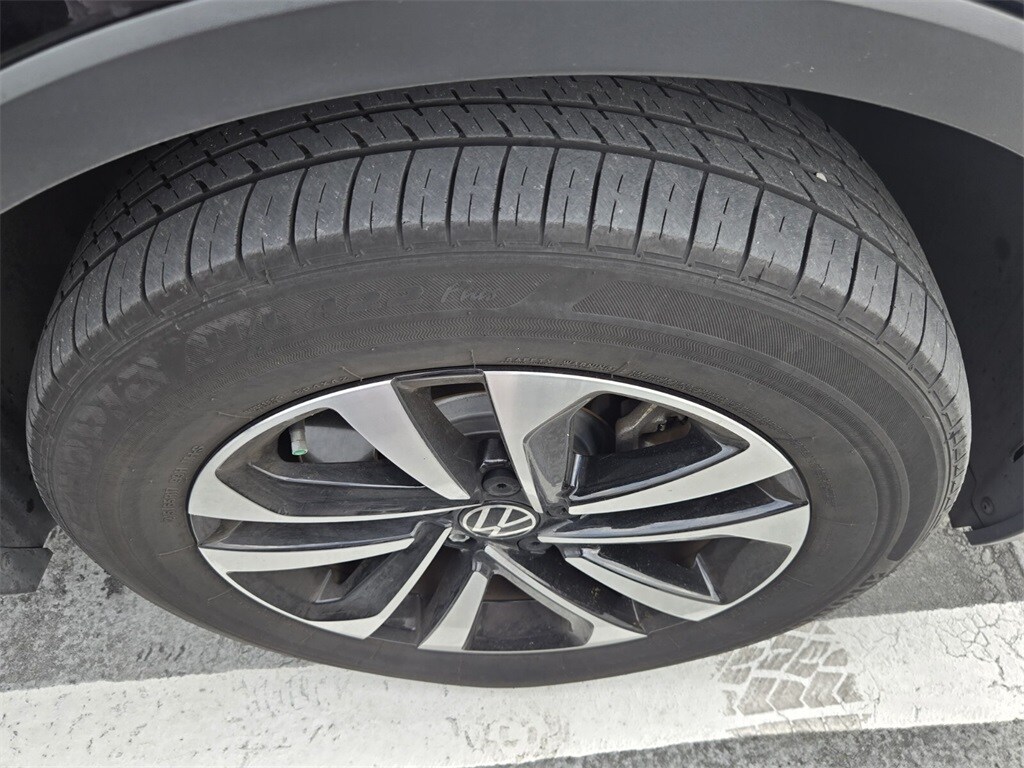 This vehicle comes equipped with 3-Row Rubber Monster Mats w/Logo Kit (Set of 5), 3.33 Axle Ratio, 3rd row seats: bench, 4-Wheel Disc Brakes, 4-Wheel Independent Suspension, 6 Speakers, ABS brakes, Air Conditioning, Alloy wheels, AM/FM radio, Brake assist, Bumpers: body-color, Cloth Seating Surfaces, Compass, Delay-off headlights, Driver door bin, Driver vanity mirror, Dual front impact airbags, Dual front side impact airbags, Electronic Stability Control, Emergency communication system: Car-Net, Exterior Parking Camera Rear, First Aid Kit, Forward collision: FCW w/Autonomous Emergency Braking mitigation, Four wheel independent suspension, Front anti-roll bar, Front Bucket Seats, Front Center Armrest, Front reading lights, Fully automatic headlights, Heated door mirrors, Heated Front Bucket Seats, Heated front seats, Heavy Duty Trunk Liner w/VW CarGo Blocks, Illuminated entry, Leather Shift Knob, Low tire pressure warning, Occupant sensing airbag, Outside temperature display, Overhead airbag, Overhead console, Panic alarm, Passenger door bin, Passenger vanity mirror, Power door mirrors, Power steering, Power windows, Radio data system, Radio: Composition Color AM/FM, Rear anti-roll bar, Rear reading lights, Rear seat center armrest, Rear Sensors Delete, Rear window defroster, Rear window wiper, Remote keyless entry, Roadside Assistance Kit, Roof rack: rails only, Speed control, Speed-sensing steering, Split folding rear seat, Spoiler, Steering wheel mounted audio controls, Tachometer, Telescoping steering wheel, Tilt steering wheel, Traction control, Trip computer, Turn signal indicator mirrors, Variably intermittent wipers, and Wheels: 17" 2-Tone Machined Twin 5-Spoke Alloy .