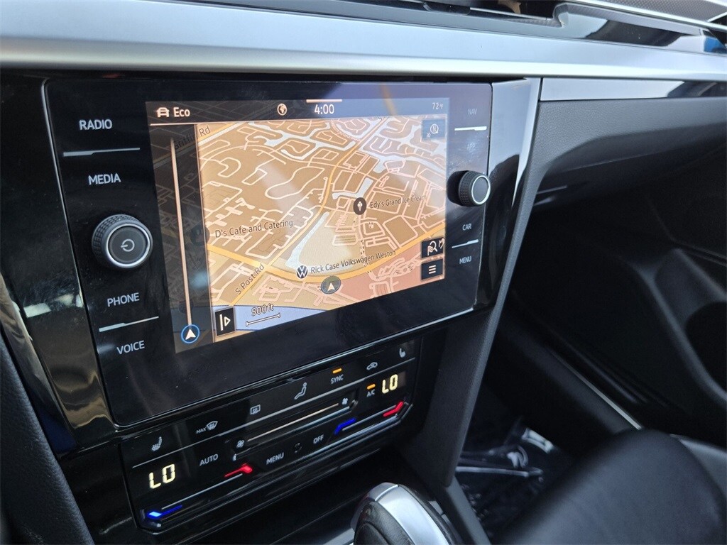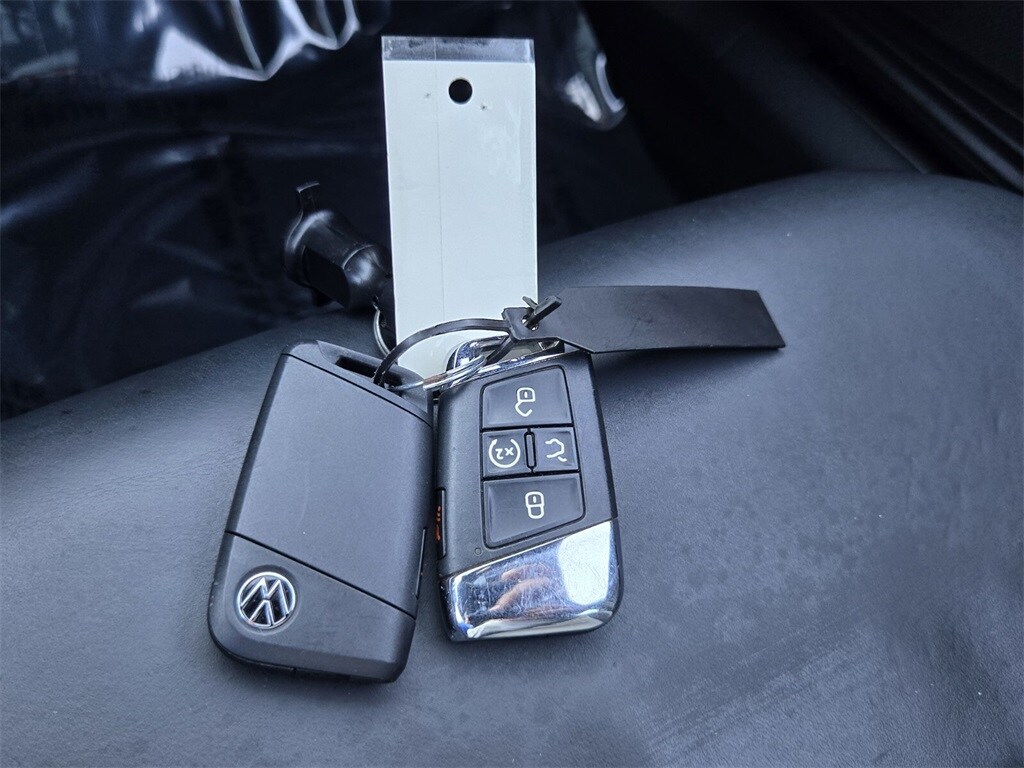 This vehicle comes equipped with 4-Wheel Disc Brakes, 8 Speakers, ABS brakes, Adaptive suspension, Air Conditioning, Alloy wheels, AM/FM radio: SiriusXM with 360L, Auto High-beam Headlights, Auto-dimming door mirrors, Auto-dimming Rear-View mirror, Automatic temperature control, Brake assist, Bumpers: body-color, Compass, Delay-off headlights, Driver door bin, Driver vanity mirror, Dual front impact airbags, Dual front side impact airbags, Electronic Stability Control, Emergency communication system: VW Car-Net Safe & Secure 5-year, Exterior Parking Camera Rear, Four wheel independent suspension, Front anti-roll bar, Front Bucket Seats, Front Center Armrest, Front dual zone A/C, Front fog lights, Front reading lights, Fully automatic headlights, Heated door mirrors, Heated Front Comfort Sport Seats, Heated front seats, Heated steering wheel, Illuminated entry, Knee airbag, Leather Shift Knob, Leather steering wheel, Low tire pressure warning, Memory seat, Nappa Leather Seating Surfaces, Navigation System, Occupant sensing airbag, Outside temperature display, Overhead airbag, Overhead console, Panic alarm, Passenger door bin, Passenger vanity mirror, Power door mirrors, Power driver seat, Power Liftgate, Power moonroof, Power passenger seat, Power steering, Power windows, Radio data system, Radio: MIB3 Discover Media Navigation AM/FM/HD, Rain sensing wipers, Rear air conditioning, Rear anti-roll bar, Rear reading lights, Rear seat center armrest, Rear window defroster, Remote keyless entry, Security system, Speed control, Speed-sensing steering, Split folding rear seat, Spoiler, Sport steering wheel, Steering wheel mounted audio controls, Tachometer, Telescoping steering wheel, Tilt steering wheel, Traction control, Trip computer, Turn signal indicator mirrors, Variably intermittent wipers, and Wheels: 20" x 8.0J 10-Spoke Dark Graphite Alloy .