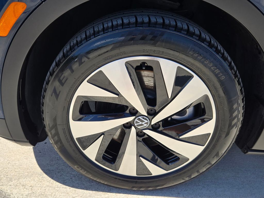 This vehicle comes equipped with 4 Wheel Independent Suspension, 4.39 Axle Ratio, 7 Speakers, ABS brakes, Air Conditioning, Alloy wheels, Auto High-beam Headlights, Auto-dimming Rear-View mirror, Auto-Dimming Rearview Mirror w/HomeLink Connect, Automatic temperature control, Brake assist, Bumpers: body-color, Cloth Seating Surfaces, Delay-off headlights, Driver door bin, Driver vanity mirror, Driver's Seat Mounted Armrest, Dual front impact airbags, Dual front side impact airbags, Electronic Stability Control, Emergency communication system: VW Car-Net Safe & Secure 5-year, Exterior Parking Camera Rear, Four wheel independent suspension, Front anti-roll bar, Front Bucket Seats, Front dual zone A/C, Front reading lights, Fully automatic headlights, Heated door mirrors, Heated Front Seats, Heated front seats, Heavy Duty Trunk Liner w/VW CarGo Blocks, Illuminated entry, Low tire pressure warning, Navigation System, Occupant sensing airbag, Outside temperature display, Overhead airbag, Overhead console, Panic alarm, Passenger door bin, Passenger seat mounted armrest, Passenger vanity mirror, Power door mirrors, Power steering, Power windows, Radio data system, Radio: Discover Pro Max w/12" Touchscreen Nav, Rain sensing wipers, Rear anti-roll bar, Rear reading lights, Rear window defroster, Rear window wiper, Remote keyless entry, Rubber Mats Kit, Speed control, Speed-sensing steering, Split folding rear seat, Spoiler, Steering wheel mounted audio controls, Telescoping steering wheel, Tilt steering wheel, Traction control, Trip computer, Turn signal indicator mirrors, Variably intermittent wipers, and Wheels: 19" 2-Tone Machined Alloy .