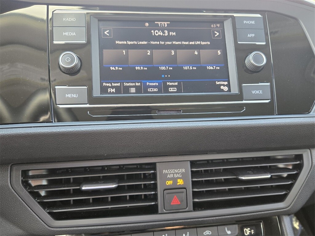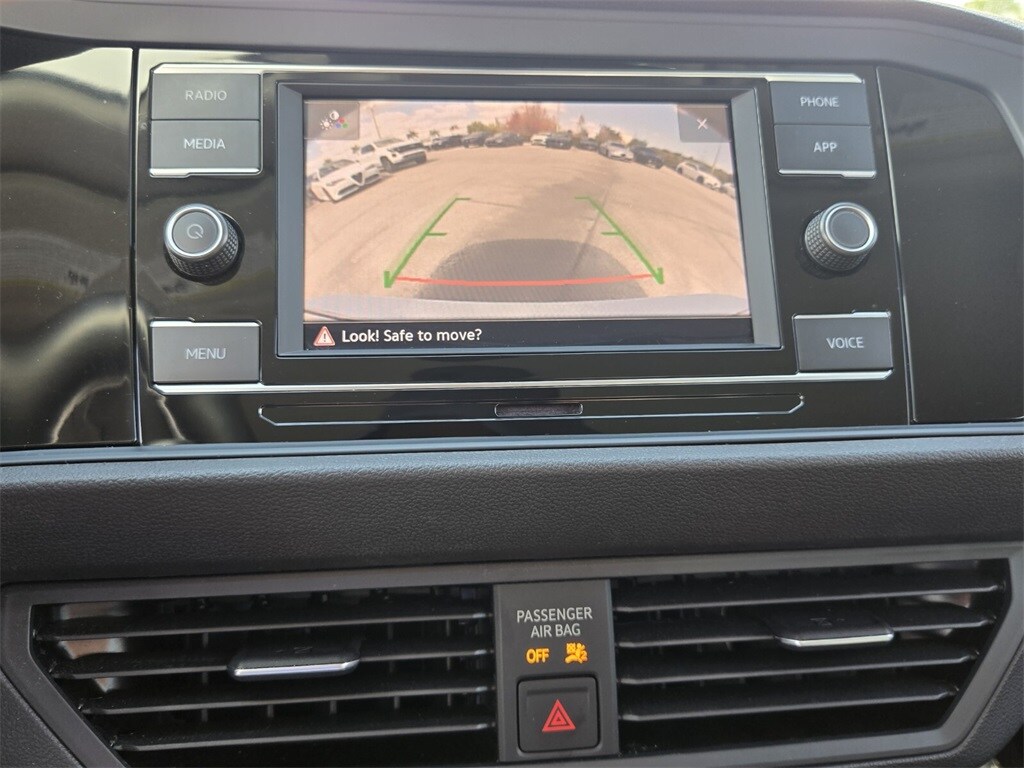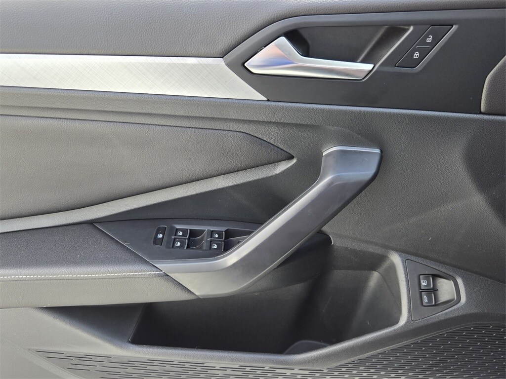 This vehicle comes equipped with Titan Black Premium Synthetic, 4 Speakers, 4-Wheel Disc Brakes, ABS brakes, Active Blind Spot Monitor, Air Conditioning, Alloy wheels, AM/FM radio, Auto-dimming Rear-View mirror, Auto-Dimming Rearview Mirror w/Electronic Compass, Automatic temperature control, Brake assist, Bumpers: body-color, Credit - Rear Sensors Removed, Delay-off headlights, Driver door bin, Driver vanity mirror, Dual front impact airbags, Dual front side impact airbags, Electronic Stability Control, Emergency communication system: VW Car-Net Safe & Secure 5-year, Exterior Parking Camera Rear, First Aid Kit, Front anti-roll bar, Front Bucket Seats, Front Center Armrest, Front dual zone A/C, Front wheel independent suspension, Fully automatic headlights, Heated door mirrors, Heated Front Comfort Sport Seats, Heated front seats, Heavy Duty Trunk Liner w/VW CarGo Blocks, Illuminated entry, Leather Shift Knob, Low tire pressure warning, Occupant sensing airbag, Outside temperature display, Overhead airbag, Overhead console, Panic alarm, Passenger door bin, Passenger vanity mirror, Power door mirrors, Power driver seat, Power steering, Power windows, Radio data system, Radio: MIB3 Composition Color w/6.5" Touchscreen, Rain sensing wipers, Rear anti-roll bar, Rear reading lights, Rear seat center armrest, Rear window defroster, Remote keyless entry, Roadside Assistance Kit, Rubber Monster Mats Kit (Set of 4), Speed control, Speed-sensing steering, Split folding rear seat, Steering wheel mounted audio controls, Tachometer, Telescoping steering wheel, Tilt steering wheel, Traction control, Trip computer, V-Tex Leatherette Seat Trim, Variably intermittent wipers, and Wheels: 17" Twin 5-Spoke Silver Painted Alloy .