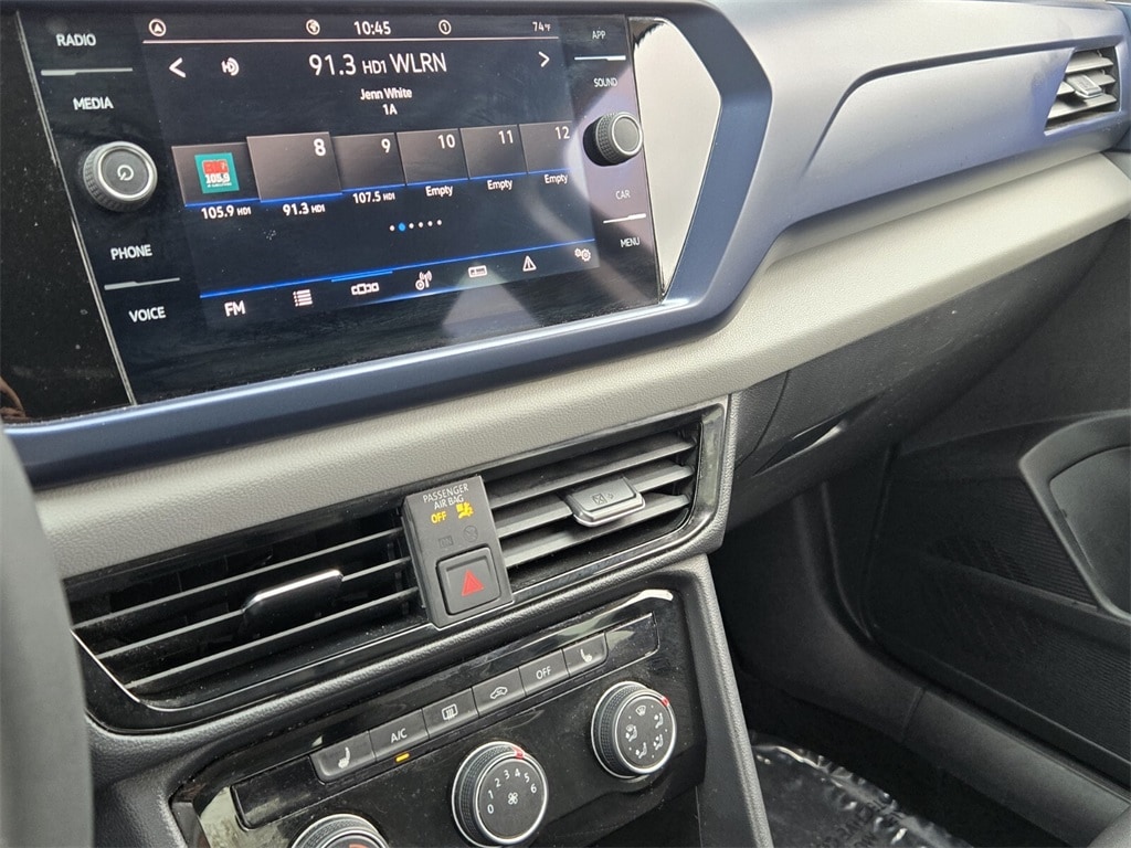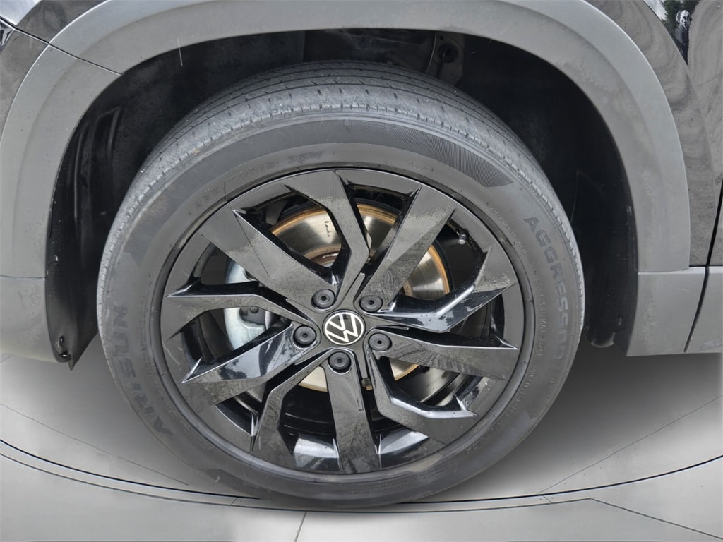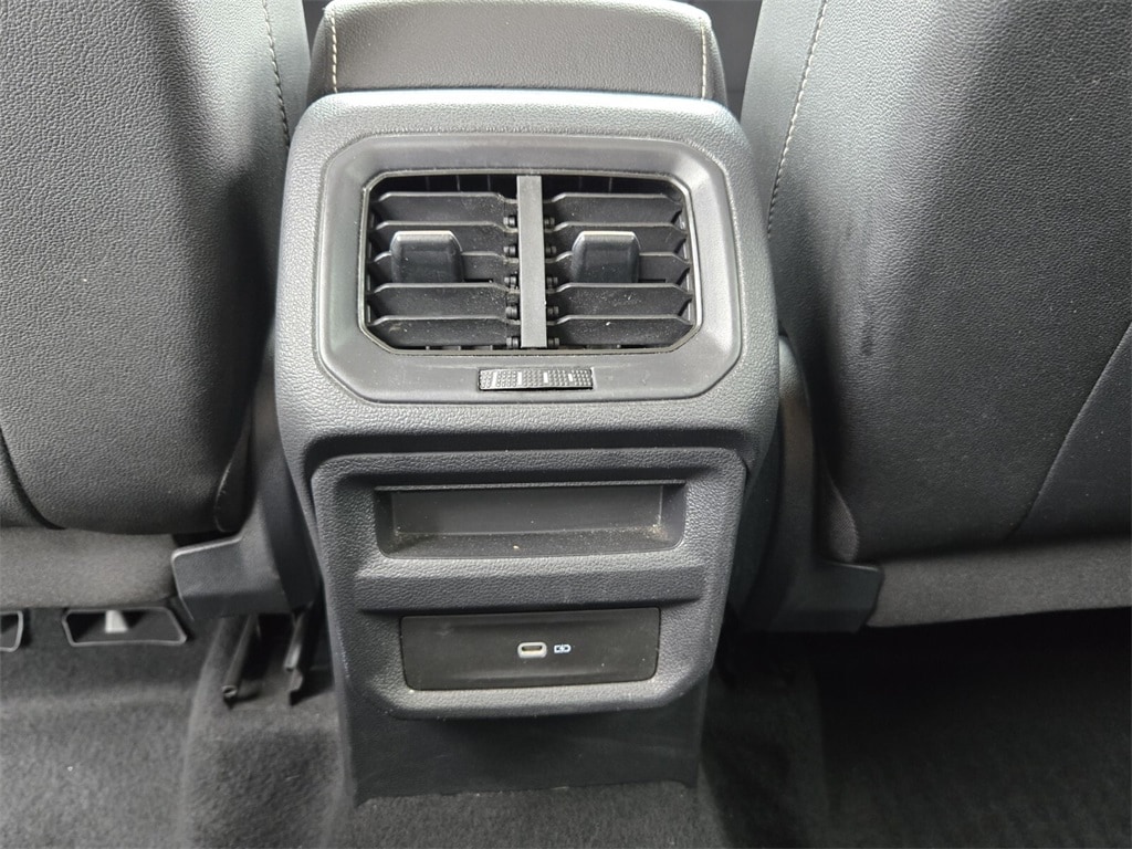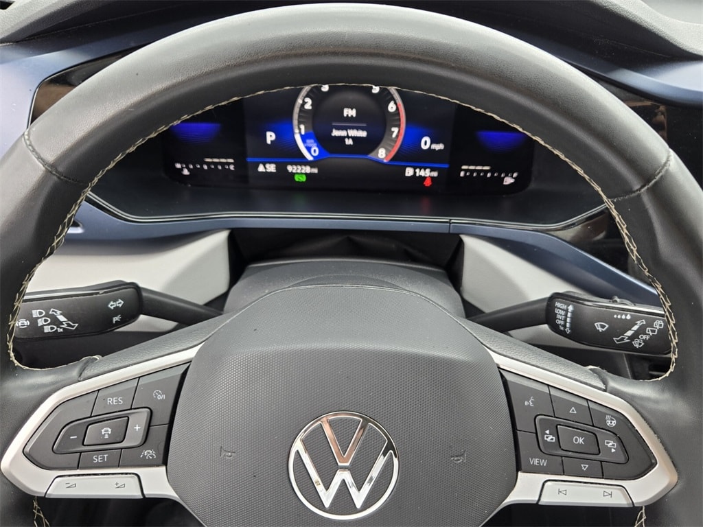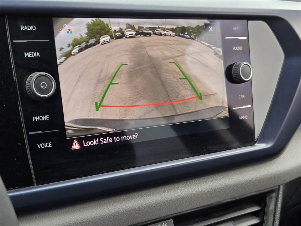 This vehicle comes equipped with Black Wheel Package (Wheels: 18" Black Painted Alloy), 3.23 Axle Ratio, 4-Wheel Disc Brakes, 6 Speakers, ABS brakes, Active Blind Spot Monitor, Air Conditioning, Alloy wheels, AM/FM radio: SiriusXM with 360L, Auto High-beam Headlights, Auto-Dimming Rearview Mirror (SRV) (DISC), Brake assist, Bumpers: body-color, Cargo Area Retractable Privacy Cover, CloudTex & Cloth Seating Surfaces, Compass, Delay-off headlights, Driver door bin, Driver vanity mirror, Dual front impact airbags, Dual front side impact airbags, Electronic Stability Control, Emergency communication system: VW Car-Net Safe & Secure 5-year, Exterior Parking Camera Rear, First Aid Kit, Front anti-roll bar, Front Bucket Seats, Front Center Armrest, Front reading lights, Front Strut Rear Torsion Beam Suspension, Front wheel independent suspension, Fully automatic headlights, Heated door mirrors, Heated Front Comfort Seats, Heated front seats, Heated steering wheel, Illuminated entry, Leather Shift Knob, Low tire pressure warning, Occupant sensing airbag, Outside temperature display, Overhead airbag, Overhead console, Panic alarm, Passenger door bin, Passenger vanity mirror, Power door mirrors, Power driver seat, Power steering, Power windows, Radio data system, Radio: MIB3 Composition Media AM/FM/HD, Rain sensing wipers, Rear anti-roll bar, Rear seat center armrest, Rear Sensors Credit, Rear window defroster, Rear window wiper, Remote keyless entry, Roadside Assistance Kit, Roof rack: rails only, Rubber Mats Kit (SNM), Security system, Speed control, Speed-sensing steering, Split folding rear seat, Spoiler, Steering wheel mounted audio controls, Tachometer, Telescoping steering wheel, Tilt steering wheel, Traction control, Trip computer, Variably intermittent wipers, and Wheels: 18" 2-Tone Machined Alloy .