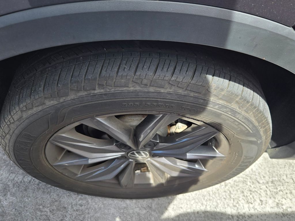 This vehicle comes equipped with 3-Row Rubber Monster Mats w/Logo Kit (Set of 5), 3.33 Axle Ratio, 3rd row seats: bench, 4-Wheel Disc Brakes, 4-Wheel Independent Suspension, 6 Speakers, ABS brakes, Air Conditioning, Alloy wheels, AM/FM radio: SiriusXM with 360L, Auto-dimming Rear-View mirror, Auto-Dimming Rearview Mirror w/Compass/HomeLink (DISC), Automatic temperature control, Brake assist, Bumpers: body-color, Cargo Area Retractable Privacy Cover, Compass, Credit - Power Rear Liftgate Removed, Delay-off headlights, Driver door bin, Driver vanity mirror, Dual front impact airbags, Dual front side impact airbags, Electronic Stability Control, Emergency communication system: VW Car-Net Safe & Secure 5-year, Exterior Parking Camera Rear, First Aid Kit, Four wheel independent suspension, Front anti-roll bar, Front Bucket Seats, Front Center Armrest, Front dual zone A/C, Front reading lights, Fully automatic headlights, Heated door mirrors, Heated Front Comfort Seats, Heated front seats, Heavy Duty Trunk Liner w/VW CarGo Blocks, Illuminated entry, Leather Shift Knob, Low tire pressure warning, Occupant sensing airbag, Outside temperature display, Overhead airbag, Overhead console, Panic alarm, Passenger door bin, Passenger vanity mirror, Perforated V-Tex Leatherette Seating Surfaces, Power door mirrors, Power driver seat, Power Liftgate, Power steering, Power windows, Radio data system, Radio: MIB3 Composition Media AM/FM/HD, Rain sensing wipers, Rear anti-roll bar, Rear reading lights, Rear seat center armrest, Rear window defroster, Rear window wiper, Remote keyless entry, Roadside Assistance Kit, Security system, Speed control, Speed-sensing steering, Split folding rear seat, Spoiler, Steering wheel mounted audio controls, Tachometer, Telescoping steering wheel, Tilt steering wheel, Traction control, Trip computer, Turn signal indicator mirrors, Variably intermittent wipers, and Wheels: 18" Dark Graphite Painted 10-Spoke Alloy .