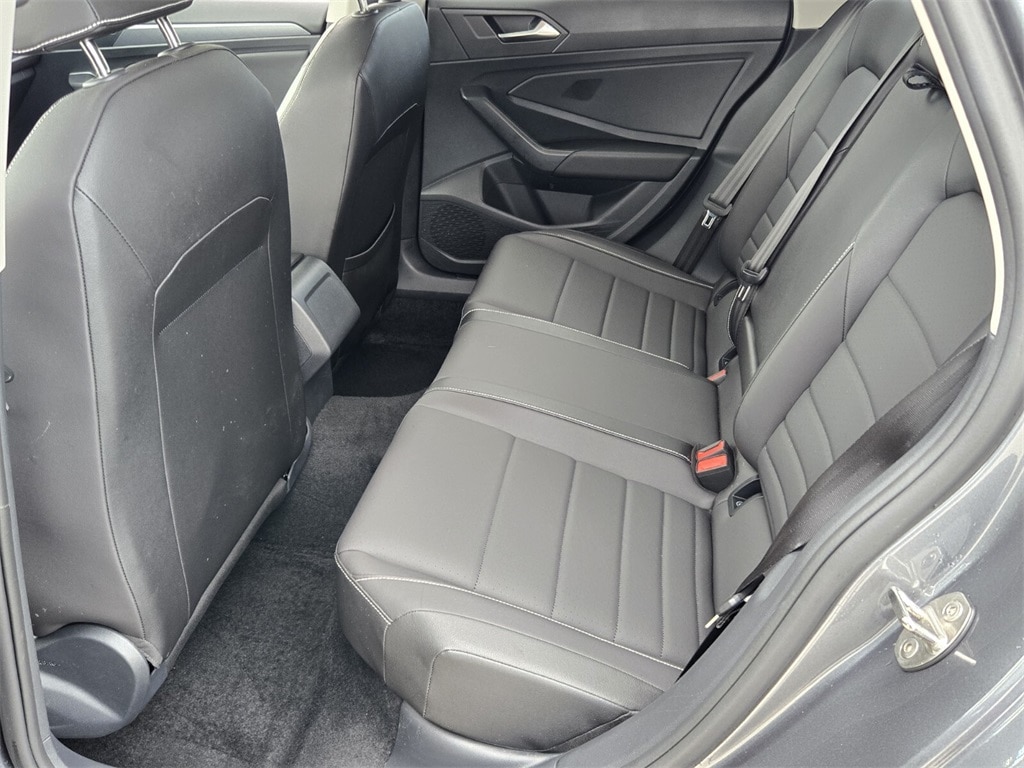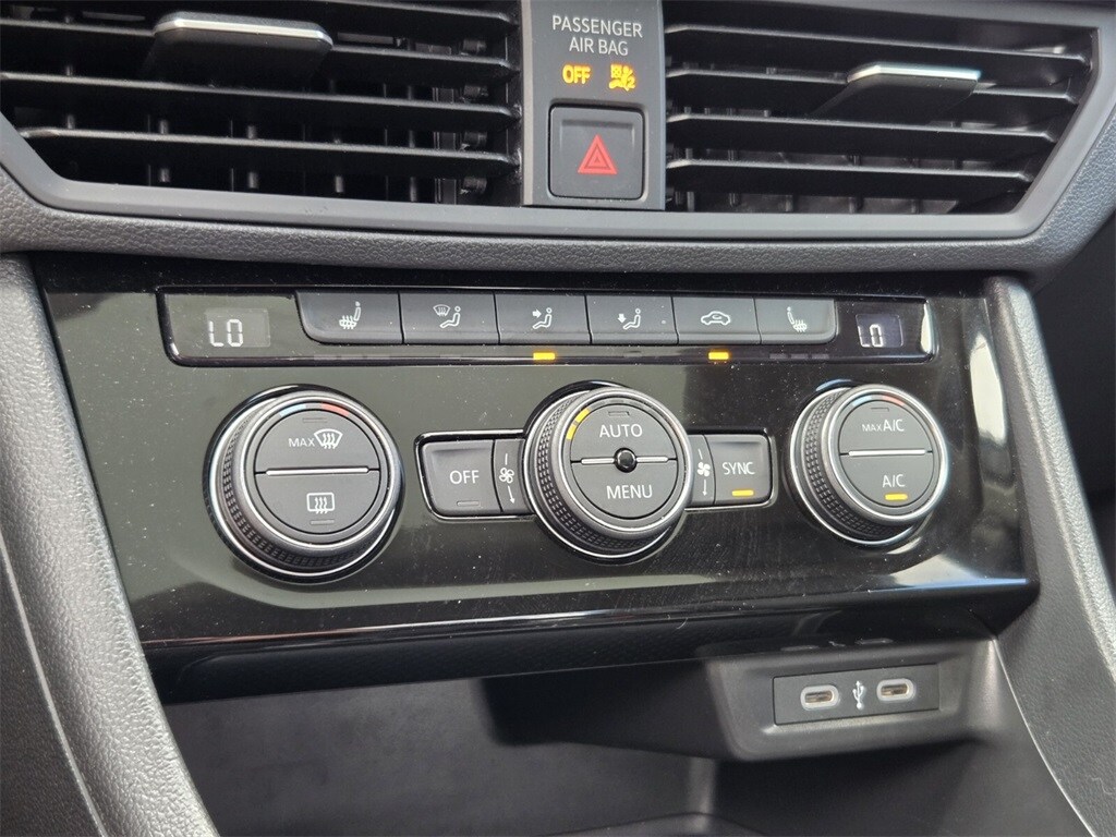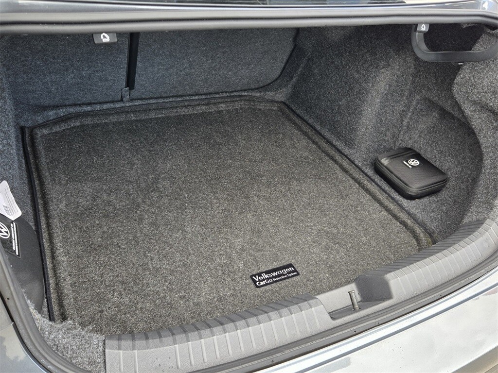 This vehicle comes equipped with Black Wheel Package (Wheels: 17" Twin 5-Spoke Dark Graphite Painted Alloy), Panoramic Sunroof Package (Dual Front Reading Lights, Illuminated Vanity Mirrors, Overhead Storage Compartment, and Power Tilting & Sliding Panoramic Sunroof), Volkswagen Certified Pre-Owned Certified, Titan Black Premium Synthetic, 4 Speakers, 4-Wheel Disc Brakes, ABS brakes, Active Blind Spot Monitor, Air Conditioning, Alloy wheels, Auto-dimming Rear-View mirror, Automatic temperature control, Brake assist, Bumpers: body-color, Delay-off headlights, Driver door bin, Driver vanity mirror, Dual front impact airbags, Dual front side impact airbags, Electronic Stability Control, Emergency communication system: VW Car-Net Safe & Secure 5-year, Exterior Parking Camera Rear, First Aid Kit, Front anti-roll bar, Front Bucket Seats, Front Center Armrest, Front dual zone A/C, Front wheel independent suspension, Fully automatic headlights, Heated door mirrors, Heated Front Seats, Heated front seats, Heavy Duty Trunk Liner w/VW CarGo Blocks, Illuminated entry, Leather Shift Knob, Leather steering wheel, Low tire pressure warning, Occupant sensing airbag, Outside temperature display, Overhead airbag, Overhead console, Panic alarm, Passenger door bin, Passenger vanity mirror, Power door mirrors, Power driver seat, Power steering, Power windows, Radio data system, Radio: MIB3 Composition Color w/6.5" Touchscreen, Rain sensing wipers, Rear anti-roll bar, Rear reading lights, Rear seat center armrest, Rear window defroster, Remote keyless entry, Roadside Assistance Kit, Rubber Monster Mats Kit (Set of 4), Speed control, Speed-sensing steering, Split folding rear seat, Steering wheel mounted audio controls, Tachometer, Telescoping steering wheel, Tilt steering wheel, Traction control, Trip computer, V-Tex Leatherette Seat Trim, Variably intermittent wipers, and Wheels: 17" Twin 5-Spoke Silver Painted Alloy .