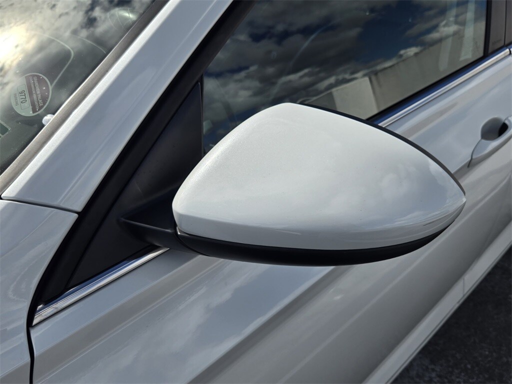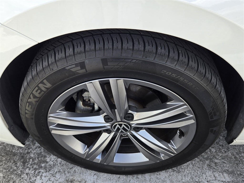 This vehicle comes equipped with 4 Speakers, 4-Wheel Disc Brakes, ABS brakes, Active Blind Spot Monitor, Air Conditioning, Alloy wheels, Auto-dimming Rear-View mirror, Automatic temperature control, Brake assist, Bumpers: body-color, Delay-off headlights, Driver door bin, Driver vanity mirror, Dual front impact airbags, Dual front side impact airbags, Electronic Stability Control, Emergency communication system: VW Car-Net Safe & Secure 5-year, Exterior Parking Camera Rear, Front anti-roll bar, Front Bucket Seats, Front Center Armrest, Front dual zone A/C, Front wheel independent suspension, Fully automatic headlights, Heated door mirrors, Heated Front Seats, Heated front seats, Illuminated entry, Leather Shift Knob, Leather steering wheel, Low tire pressure warning, Occupant sensing airbag, Outside temperature display, Overhead airbag, Overhead console, Panic alarm, Passenger door bin, Passenger vanity mirror, Power door mirrors, Power driver seat, Power steering, Power windows, Radio data system, Radio: MIB3 Composition Color w/6.5" Touchscreen, Rain sensing wipers, Rear anti-roll bar, Rear reading lights, Rear seat center armrest, Rear window defroster, Remote keyless entry, Speed control, Speed-sensing steering, Split folding rear seat, Steering wheel mounted audio controls, Tachometer, Telescoping steering wheel, Tilt steering wheel, Traction control, Trip computer, V-Tex Leatherette Seat Trim, Variably intermittent wipers, and Wheels: 17" Twin 5-Spoke Silver Painted Alloy .