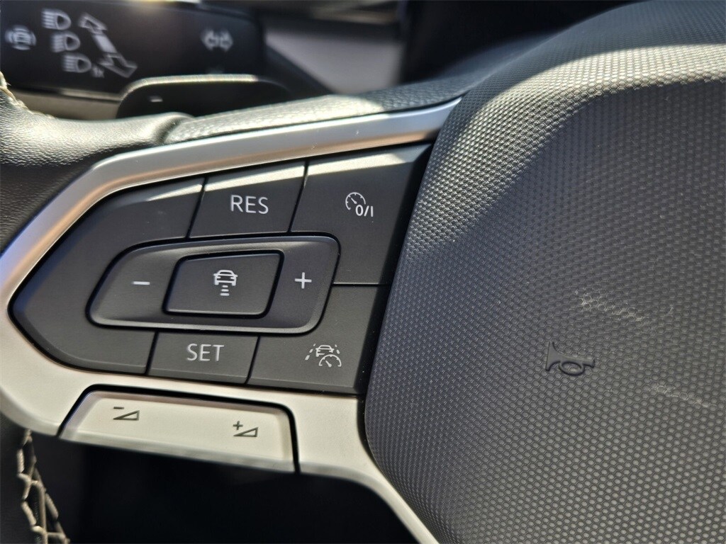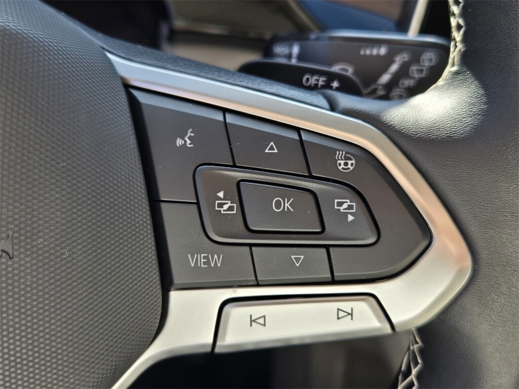 This vehicle comes equipped with 20" 2-tone machined alloy wheels, 3rd row seats: split-bench, 4-Wheel Disc Brakes, 6 Speakers, ABS brakes, Air Conditioning, Alloy wheels, AM/FM radio: SiriusXM with 360L, Auto High-beam Headlights, Auto-dimming Rear-View mirror, Automatic temperature control, Brake assist, Bumpers: body-color, Compass, Delay-off headlights, Driver door bin, Driver vanity mirror, Dual front impact airbags, Dual front side impact airbags, Electronic Stability Control, Emergency communication system: VW Car-Net Safe & Secure 5-year, Exterior Parking Camera Rear, Four wheel independent suspension, four-wheel independent suspension, Front anti-roll bar, Front Bucket Seats, Front Center Armrest, Front dual zone A/C, Front fog lights, Front reading lights, Fully automatic headlights, heated and Actively ventilated front bucket seats, Heated door mirrors, Heated front seats, Heated steering wheel, Illuminated entry, Low tire pressure warning, MIB3 composition media radio, Occupant sensing airbag, Outside temperature display, Overhead airbag, Overhead console, Panic alarm, Passenger door bin, Passenger vanity mirror, perforated V-Tex leatherette seating surfaces, Power door mirrors, Power driver seat, Power Liftgate, Power steering, Power windows, Radio data system, Rain sensing wipers, Rear air conditioning, Rear anti-roll bar, Rear reading lights, Rear seat center armrest, Rear window defroster, Rear window wiper, Remote keyless entry, Security system, Speed control, Speed-sensing steering, Split folding rear seat, Spoiler, Steering wheel mounted audio controls, Tachometer, Telescoping steering wheel, Tilt steering wheel, Traction control, Trip computer, Turn signal indicator mirrors, Variably intermittent wipers, and Ventilated front seats .