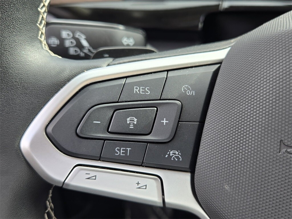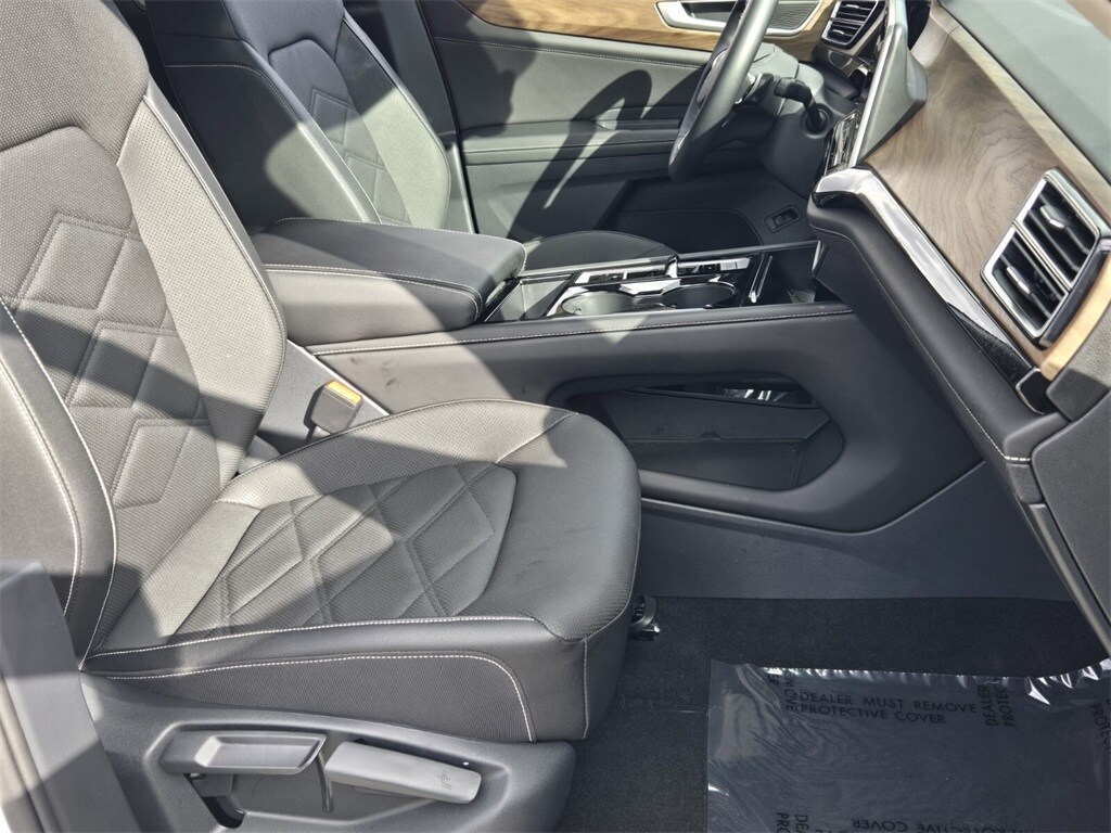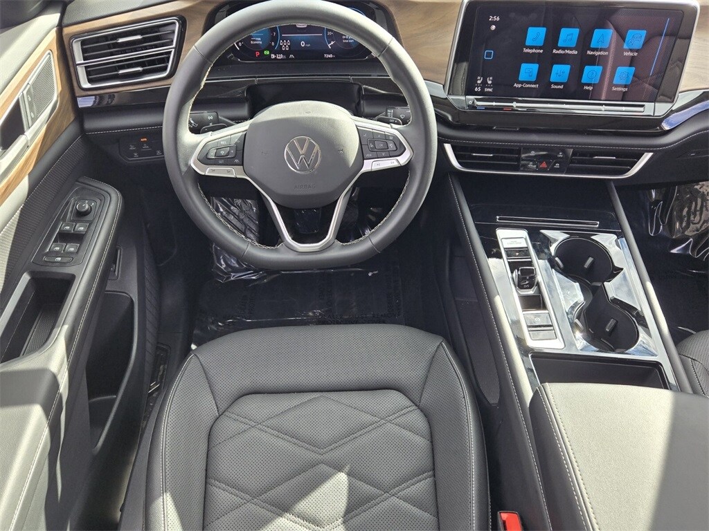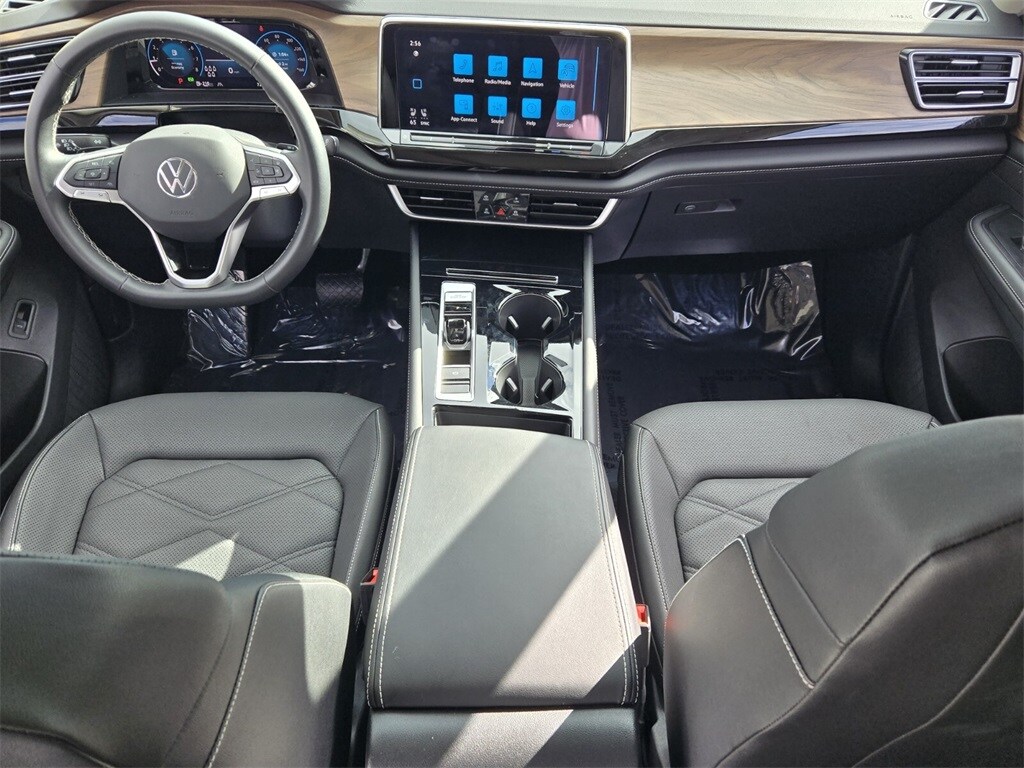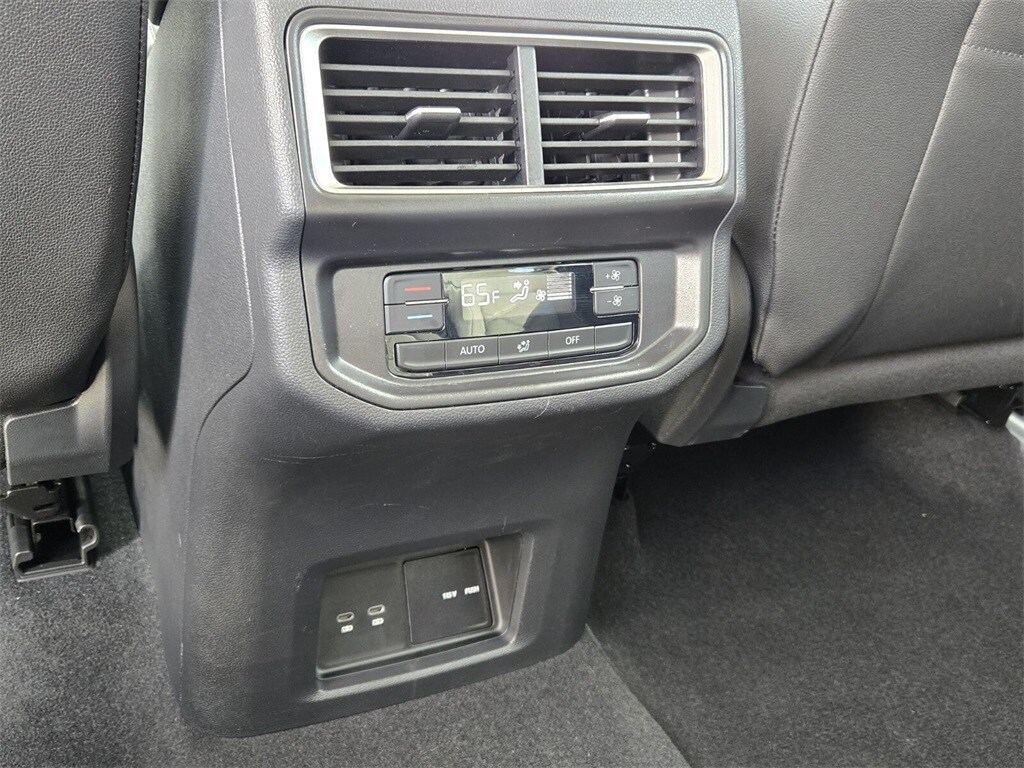 This vehicle comes equipped with 20" 2-tone machined alloy wheels, 3rd row seats: split-bench, 4-Wheel Disc Brakes, 6 Speakers, ABS brakes, Air Conditioning, Alloy wheels, AM/FM radio: SiriusXM with 360L, Auto High-beam Headlights, Auto-dimming Rear-View mirror, Automatic temperature control, Brake assist, Bumpers: body-color, Compass, Delay-off headlights, Driver door bin, Driver vanity mirror, Dual front impact airbags, Dual front side impact airbags, Electronic Stability Control, Emergency communication system: VW Car-Net Safe & Secure 5-year, Exterior Parking Camera Rear, Four wheel independent suspension, four-wheel independent suspension, Front anti-roll bar, Front Bucket Seats, Front Center Armrest, Front dual zone A/C, Front fog lights, Front reading lights, Fully automatic headlights, heated and Actively ventilated front bucket seats, Heated door mirrors, Heated front seats, Heated steering wheel, Illuminated entry, Low tire pressure warning, MIB3 composition media radio, Occupant sensing airbag, Outside temperature display, Overhead airbag, Overhead console, Panic alarm, Passenger door bin, Passenger vanity mirror, perforated V-Tex leatherette seating surfaces, Power door mirrors, Power driver seat, Power Liftgate, Power steering, Power windows, Radio data system, Rain sensing wipers, Rear air conditioning, Rear anti-roll bar, Rear reading lights, Rear seat center armrest, Rear window defroster, Rear window wiper, Remote keyless entry, Security system, Speed control, Speed-sensing steering, Split folding rear seat, Spoiler, Steering wheel mounted audio controls, Tachometer, Telescoping steering wheel, Tilt steering wheel, Traction control, Trip computer, Turn signal indicator mirrors, Variably intermittent wipers, and Ventilated front seats .