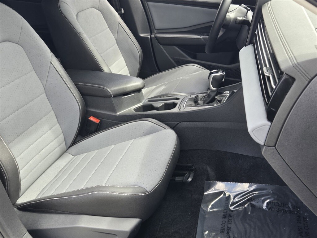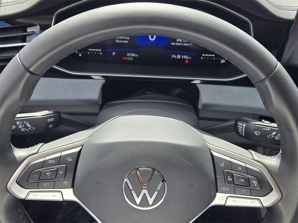 This vehicle comes equipped with Grigio/Titan Black Premium Synthetic, 4-Wheel Disc Brakes, 6 Speakers, ABS brakes, Active Blind Spot Monitor, Air Conditioning, Alloy wheels, AM/FM radio: SiriusXM with 360L, Auto-dimming Rear-View mirror, Auto-Dimming Rearview Mirror w/HomeLink Connect, Automatic temperature control, Brake assist, Bumpers: body-color, CloudTex & V-Tex Leatherette Seat Trim, Delay-off headlights, Driver door bin, Driver vanity mirror, Dual front impact airbags, Dual front side impact airbags, Electronic Stability Control, Emergency communication system: VW Car-Net Safe & Secure 5-year, Exterior Parking Camera Rear, First Aid Kit, Front anti-roll bar, Front Bucket Seats, Front Center Armrest, Front dual zone A/C, Front wheel independent suspension, Fully automatic headlights, Heated door mirrors, Heated Front Seats, Heated front seats, Heavy Duty Trunk Liner w/VW CarGo Blocks, Illuminated entry, Leather Shift Knob, Leather steering wheel, Low tire pressure warning, Occupant sensing airbag, Outside temperature display, Overhead airbag, Overhead console, Panic alarm, Passenger door bin, Passenger vanity mirror, Power door mirrors, Power driver seat, Power steering, Power windows, Radio data system, Radio: MIB3 Composition Media w/8" Touchscreen, Rain sensing wipers, Rear anti-roll bar, Rear reading lights, Rear seat center armrest, Rear window defroster, Remote keyless entry, Rubber Monster Mats Kit (Set of 4), Speed control, Speed-sensing steering, Split folding rear seat, Steering wheel mounted audio controls, Tachometer, Telescoping steering wheel, Tilt steering wheel, Traction control, Trip computer, Variably intermittent wipers, and Wheels: 17" Twin 5-Spoke 2-Tone Machined Alloy .