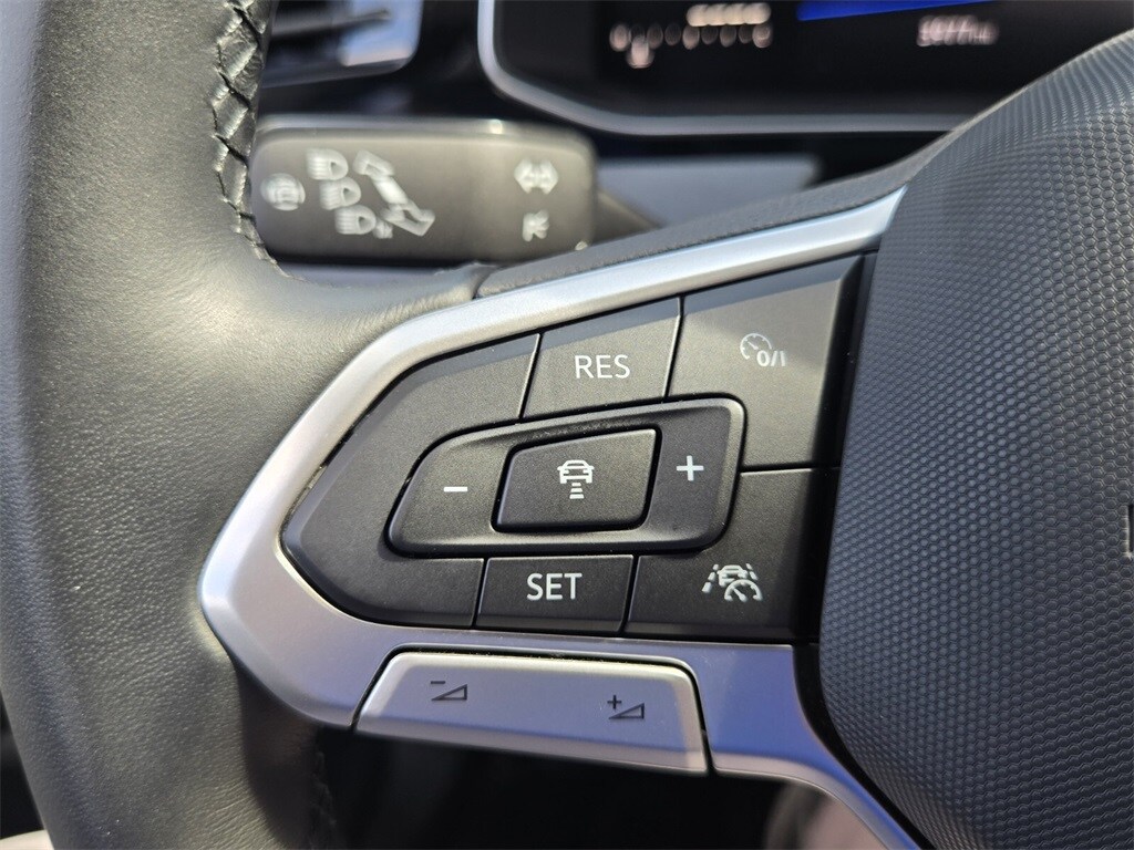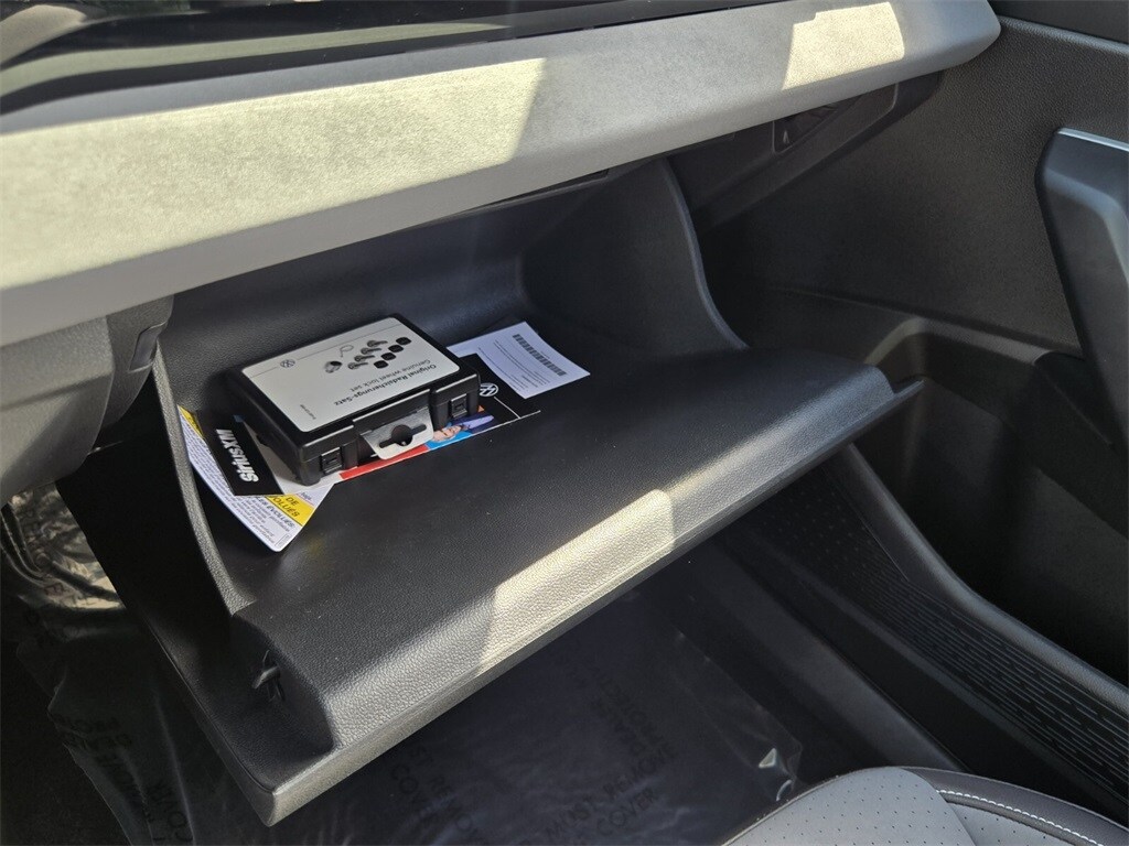 This vehicle comes equipped with Volkswagen Certified Pre-Owned Certified, Grigio/Titan Black Premium Synthetic, 4-Wheel Disc Brakes, 6 Speakers, ABS brakes, Active Blind Spot Monitor, Air Conditioning, Alloy wheels, AM/FM radio: SiriusXM with 360L, Auto-dimming Rear-View mirror, Auto-Dimming Rearview Mirror w/HomeLink Connect, Automatic temperature control, Brake assist, Bumpers: body-color, CloudTex & V-Tex Leatherette Seat Trim, Delay-off headlights, Driver door bin, Driver vanity mirror, Dual front impact airbags, Dual front side impact airbags, Electronic Stability Control, Emergency communication system: VW Car-Net Safe & Secure 5-year, Exterior Parking Camera Rear, First Aid Kit, Front anti-roll bar, Front Bucket Seats, Front Center Armrest, Front dual zone A/C, Front wheel independent suspension, Fully automatic headlights, Heated door mirrors, Heated Front Seats, Heated front seats, Heavy Duty Trunk Liner w/VW CarGo Blocks, Illuminated entry, Leather Shift Knob, Leather steering wheel, Low tire pressure warning, Occupant sensing airbag, Outside temperature display, Overhead airbag, Overhead console, Panic alarm, Passenger door bin, Passenger vanity mirror, Power door mirrors, Power driver seat, Power steering, Power windows, Radio data system, Radio: MIB3 Composition Media w/8" Touchscreen, Rain sensing wipers, Rear anti-roll bar, Rear reading lights, Rear seat center armrest, Rear window defroster, Remote keyless entry, Rubber Monster Mats Kit (Set of 4), Speed control, Speed-sensing steering, Split folding rear seat, Steering wheel mounted audio controls, Tachometer, Telescoping steering wheel, Tilt steering wheel, Traction cont