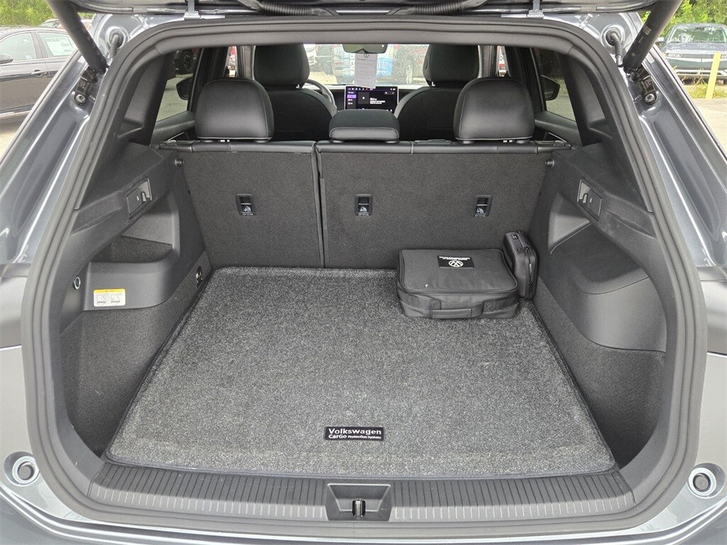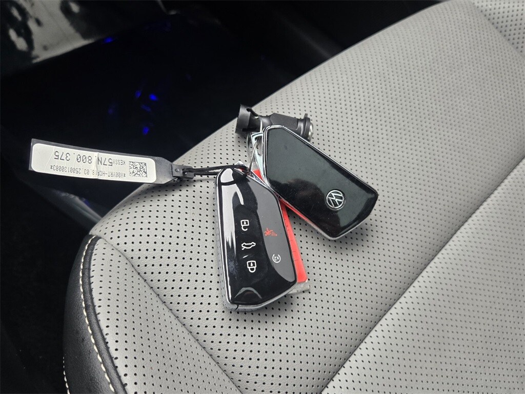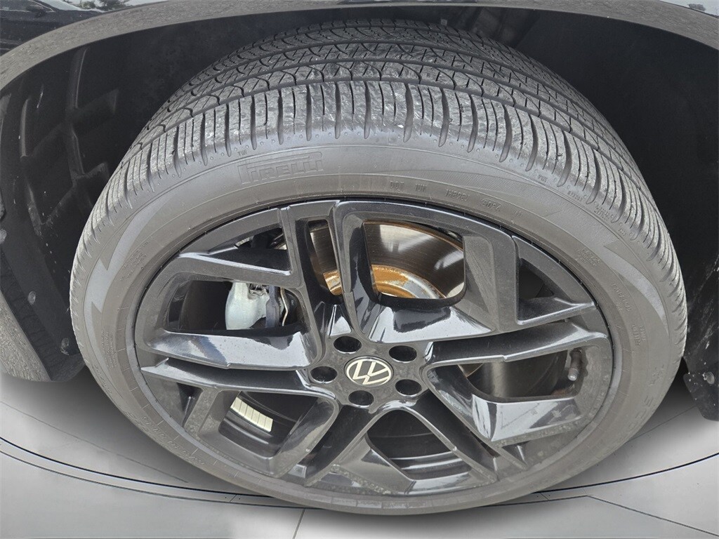This vehicle comes equipped with AWD, 4-Wheel Disc Brakes, 4-Wheel Independent Suspension, 7 Speakers, ABS brakes, Air Conditioning, Alloy wheels, AM/FM radio: SiriusXM with 360L, Auto High-beam Headlights, Auto-dimming Rear-View mirror, Automatic temperature control, Brake assist, Bumpers: body-color, Compass, Delay-off headlights, Driver door bin, Driver vanity mirror, Dual front impact airbags, Dual front side impact airbags, Electronic Stability Control, Emergency communication system: VW Car-Net Safe & Secure 5-year, Exterior Parking Camera Rear, Four wheel independent suspension, Front anti-roll bar, Front Bucket Seats, Front Center Armrest, Front dual zone A/C, Front reading lights, Fully automatic headlights, Heads-Up Display, Heated door mirrors, Heated Front Seats, Heated front seats, Illuminated entry, Knee airbag, Leather Shift Knob, Leather steering wheel, Low tire pressure warning, Occupant sensing airbag, Outside temperature display, Overhead airbag, Overhead console, Panic alarm, Passenger door bin, Passenger vanity mirror, Perforated V-Tex Leatherette Seating Surfaces, Power door mirrors, Power driver seat, Power Liftgate, Power moonroof, Power steering, Power windows, Radio data system, Radio: MIB4 Composition Media Touchscreen AM/FM, Rain sensing wipers, Rear anti-roll bar, Rear reading lights, Rear seat center armrest, Rear side impact airbag, Rear window defroster, Rear window wiper, Remote keyless entry, Security system, Speed control, Speed-sensing steering, Split folding rear seat, Spoiler, Sport steering wheel, Steering wheel mounted audio controls, Tachometer, Telescoping steering wheel, Tilt steering wheel, Traction control, Trip computer, Turn signal indicator mirrors, Variably intermittent wipers, and Wheels: 20" Black Painted Alloy .