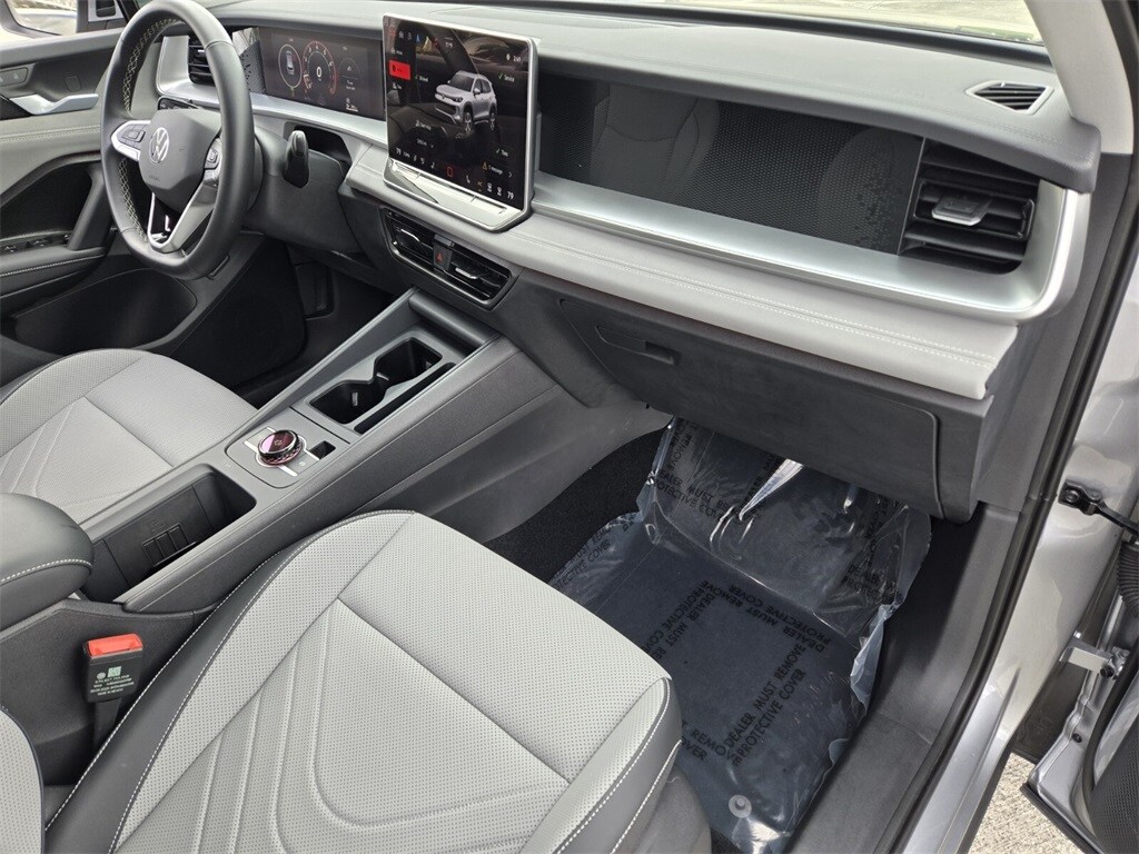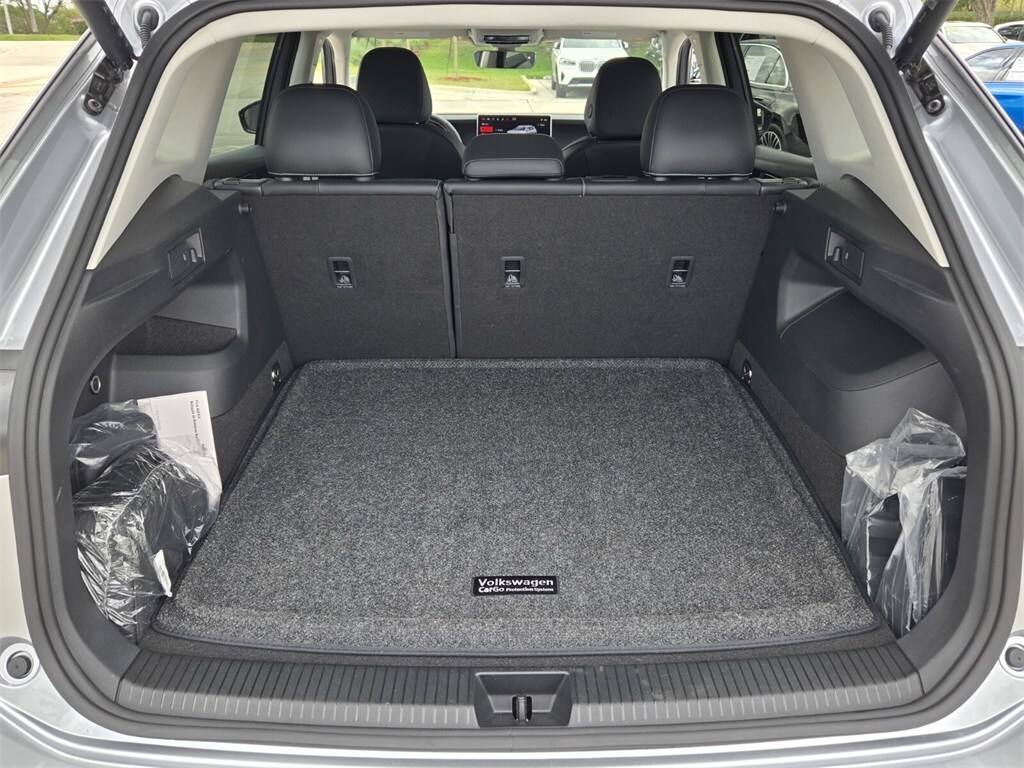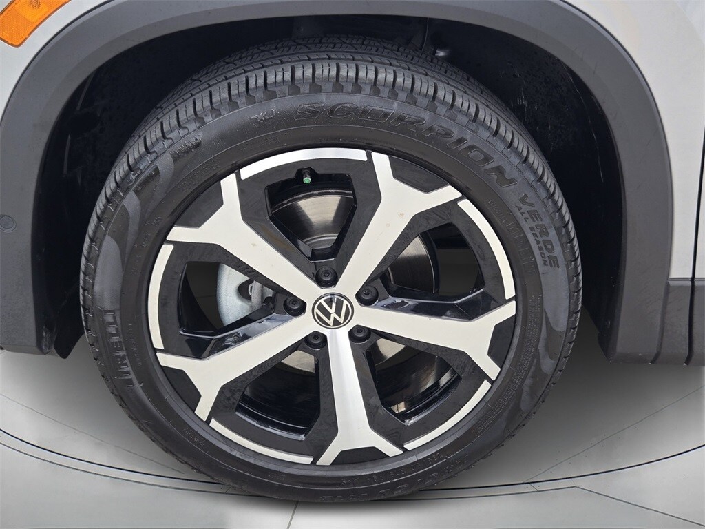 This vehicle comes equipped with Volkswagen Certified Pre-Owned Certified, 4-Wheel Disc Brakes, 4-Wheel Independent Suspension, 7 Speakers, ABS brakes, Air Conditioning, Alloy wheels, AM/FM radio: SiriusXM with 360L, Auto High-beam Headlights, Auto-dimming Rear-View mirror, Auto-Dimming Rearview Mirror w/HomeLink Connect, Automatic temperature control, Brake assist, Bumpers: body-color, Compass, Delay-off headlights, Driver door bin, Driver vanity mirror, Dual front impact airbags, Dual front side impact airbags, Electronic Stability Control, Emergency communication system: VW Car-Net Safe & Secure 5-year, Exterior Parking Camera Rear, First Aid Kit, Four wheel independent suspension, Front anti-roll bar, Front Bucket Seats, Front Center Armrest, Front dual zone A/C, Front reading lights, Fully automatic headlights, Heated door mirrors, Heated Front Seats, Heated front seats, Heavy Duty Trunk Liner w/VW CarGo Blocks, Illuminated entry, Knee airbag, Leather Shift Knob, Low tire pressure warning, Occupant sensing airbag, Outside temperature display, Overhead airbag, Overhead console, Panic alarm, Passenger door bin, Passenger vanity mirror, Perforated V-Tex Leatherette Seating Surfaces, Power door mirrors, Power driver seat, Power Liftgate, Power steering, Power windows, Radio data system, Radio: MIB4 Composition Media Touchscreen AM/FM, Rain sensing wipers, Rear anti-roll bar, Rear reading lights, Rear seat center armrest, Rear side impact airbag, Rear window defroster, Rear window wiper, Remote keyless entry, Roadside Assistance Kit, Rubber Monster Mats Kit (Set of 4), Security system, Speed control, Speed-sensing steering, Split folding rear seat, Spoiler, Steering wheel mounted audio controls, Tachometer, Telescoping steering wheel, Tilt steering wheel, Traction control, Trip computer, Turn signal indicator mirrors, Variably intermittent wipers, and Wheels: 19" 2-Tone Machined Alloy .