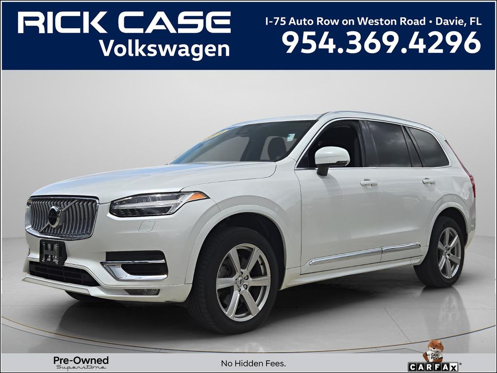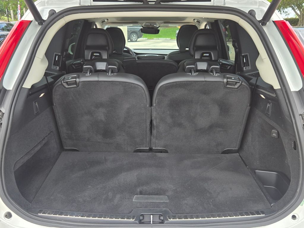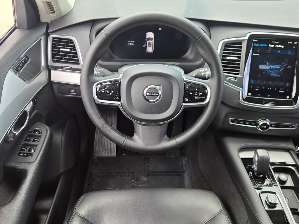 This vehicle comes equipped with AWD, 10 Speakers, 3rd row seats: bucket, 4-Wheel Disc Brakes, ABS brakes, Air Conditioning, Alloy wheels, AM/FM radio: SiriusXM, Anti-whiplash front head restraints, Apple CarPlay, Auto High-beam Headlights, Auto-dimming door mirrors, Auto-dimming Rear-View mirror, Automatic temperature control, Brake assist, Bumpers: body-color, Delay-off headlights, Driver door bin, Driver vanity mirror, Dual front impact airbags, Dual front side impact airbags, Electronic Stability Control, Emergency communication system: Volvo Cars App w/4 Year Subscription, Exterior Parking Camera Rear, Four wheel independent suspension, Front anti-roll bar, Front Bucket Seats, Front Center Armrest w/Storage, Front dual zone A/C, Front fog lights, Front reading lights, Fully automatic headlights, Garage door transmitter: HomeLink, Heated door mirrors, Heated Front Bucket Seats, Heated front seats, Illuminated entry, Knee airbag, Leather Shift Knob, Leatherette Upholstery, Low tire pressure warning, Memory seat, Navigation System, Occupant sensing airbag, Outside temperature display, Overhead airbag, Panic alarm, Passenger door bin, Passenger vanity mirror, Power door mirrors, Power driver seat, Power Liftgate, Power moonroof, Power passenger seat, Power steering, Power windows, Radio data system, Radio: High Performance Audio System, Rain sensing wipers, Rear air conditioning, Rear anti-roll bar, Rear dual zone A/C, Rear fog lights, Rear reading lights, Rear seat center armrest, Rear window defroster, Rear window wiper, Remote keyless entry, Security system, Speed control, Speed-sensing steering, Split folding rear seat, Spoiler, Steering wheel mounted audio controls, Tachometer, Telescoping steering wheel, Traction control, Trip computer, Turn signal indicator mirrors, Variably intermittent wipers, and Wheels: 19" 6-Spoke Turbine Sparkling Silver Alloy .