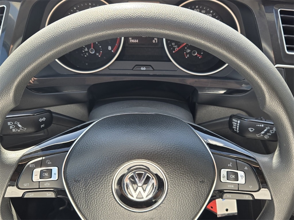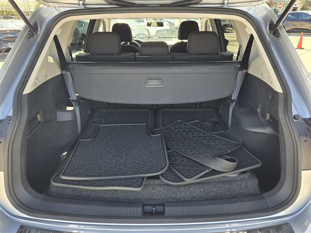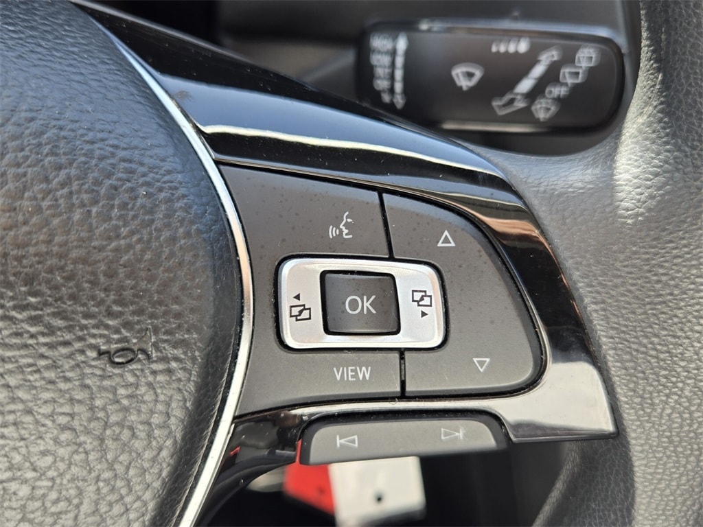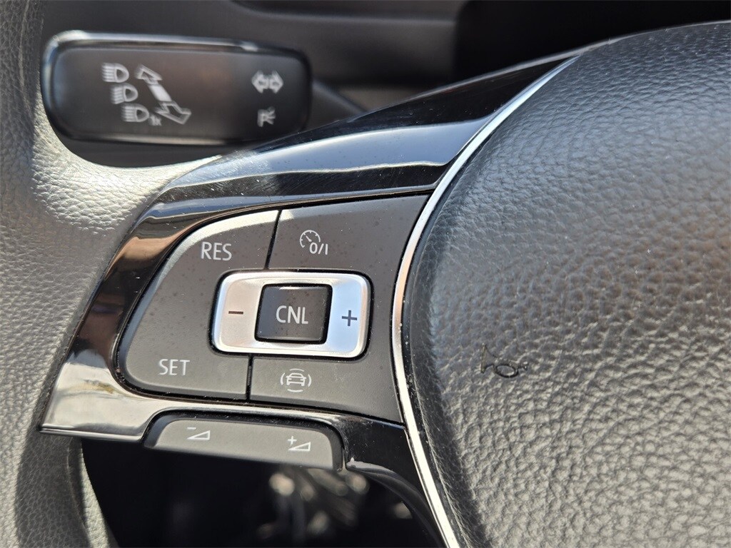 This vehicle comes equipped with Driver Assistance Package (Blind Spot Monitor w/Rear Traffic Alert and Forward Collision Warning), Volkswagen Certified Pre-Owned Certified, 17" 10-Spoke Alloy Wheels, 3-Row Rubber Mats Kit (DISC), 3.33 Axle Ratio, 3rd row seats: bench, 4-Wheel Disc Brakes, 4-Wheel Independent Suspension, 6 Speakers, ABS brakes, Air Conditioning, Alloy wheels, AM/FM radio, Brake assist, Bumperdillo Protection Plate for Rear Bumper, Bumpers: body-color, Cloth Seating Surfaces, Compass, Delay-off headlights, Driver door bin, Driver vanity mirror, Dual front impact airbags, Dual front side impact airbags, Electronic Stability Control, Exterior Parking Camera Rear, Four wheel independent suspension, Front anti-roll bar, Front Bucket Seats, Front Center Armrest, Front reading lights, Fully automatic headlights, Heated door mirrors, Heavy Duty Trunk Liner w/VW CarGo Blocks, Illuminated entry, Low tire pressure warning, Occupant sensing airbag, Outside temperature display, Overhead airbag, Overhead console, Panic alarm, Passenger door bin, Passenger vanity mirror, Power door mirrors, Power steering, Power windows, Radio data system, Radio: Composition Color AM/FM, Rear anti-roll bar, Rear reading lights, Rear seat center armrest, Rear window defroster, Rear window wiper, Remote keyless entry, Roof rack: rails only, Speed control, Speed-sensing steering, Split folding rear seat, Spoiler, Steering wheel mounted audio controls, Tachometer, Telescoping steering wheel, Tilt steering wheel, Traction control, Trip computer, Turn signal indicator mirrors, and Variably intermittent wipers .