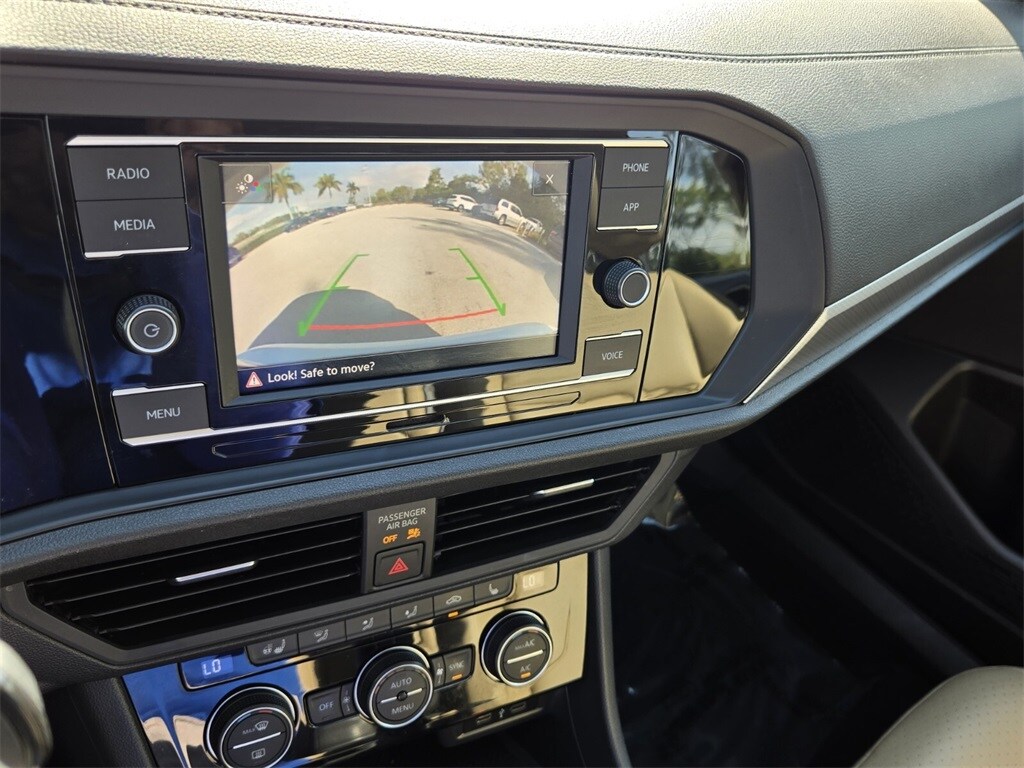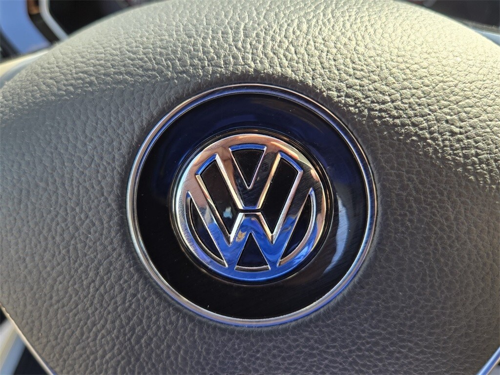 This vehicle comes equipped with Volkswagen Certified, 4 Speakers, 4-Wheel Disc Brakes, ABS brakes, Air Conditioning, Alloy wheels, AM/FM radio, Brake assist, Bumpers: body-color, Delay-off headlights, Driver door bin, Driver vanity mirror, Dual front impact airbags, Dual front side impact airbags, Electronic Stability Control, Emergency communication system: VW Car-Net services (capabilities require enrollment or subscription), Exterior Parking Camera Rear, Front anti-roll bar, Front Bucket Seats, Front Center Armrest, Front wheel independent suspension, Fully automatic headlights, Illuminated entry, Low tire pressure warning, Occupant sensing airbag, Outside temperature display, Overhead airbag, Overhead console, Panic alarm, Passenger door bin, Passenger vanity mirror, Power door mirrors, Power steering, Power windows, Radio data system, Radio: Composition Color w/6.5" Touchscreen, Rear anti-roll bar, Rear reading lights, Rear window defroster, Remote keyless entry, Speed control, Speed-sensing steering, Split folding rear seat, Steering wheel mounted audio controls, Tachometer, Telescoping steering wheel, Tilt steering wheel, Traction control, Trip computer, Variably intermittent wipers, and VW App-Connect (w/Apple CarPlay, Android Auto & MirrorLink) .