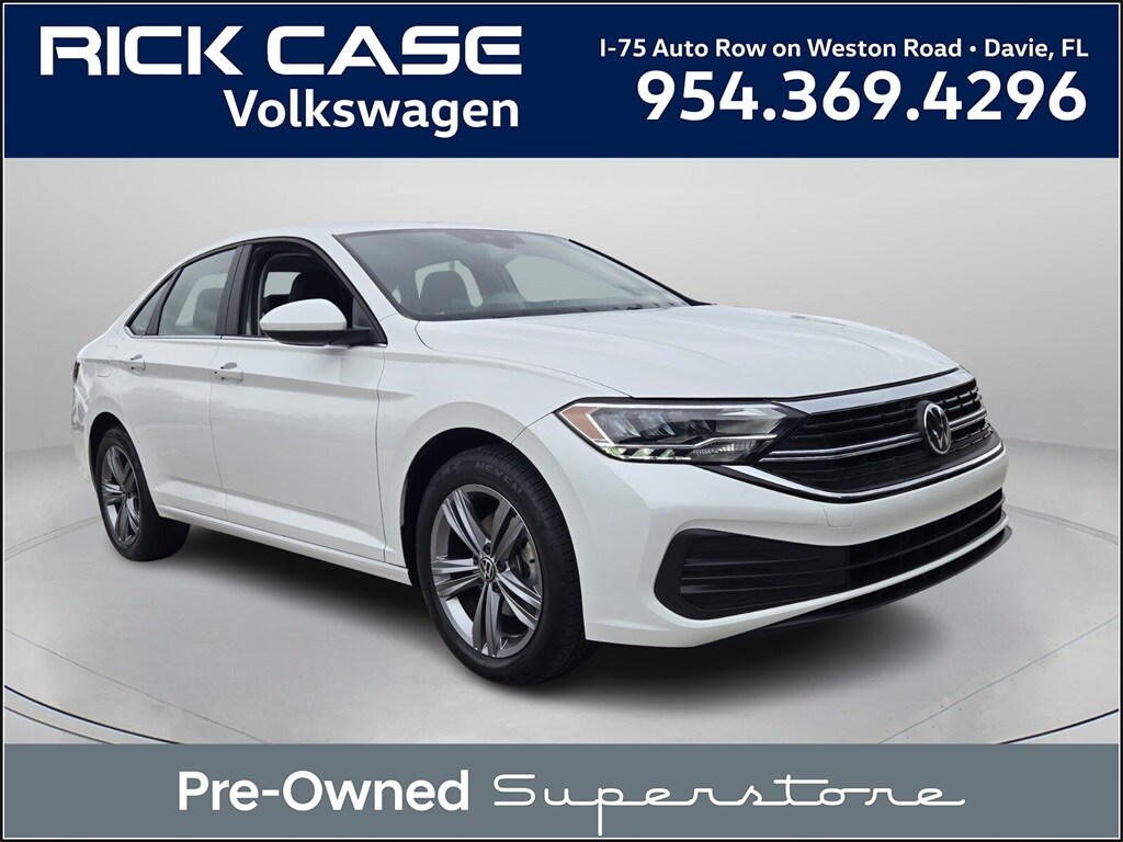 Certified. Pure White 2024 Volkswagen Jetta 1.5T SE FWD 8-Speed Automatic with Tiptronic 1.5L I-4 DI DOHC Turbocharged