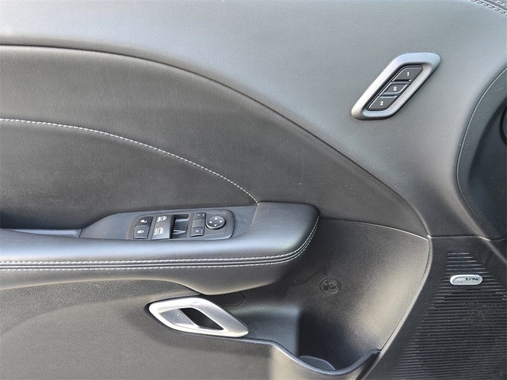 This vehicle comes equipped with Alpine Audio Group w/Subwoofer, Driver Convenience Group (Power Multi-Function Foldaway Mirrors), Plus Package, Quick Order Package 24G R/T Scat Pack, 1-Yr SiriusXM Guardian Trial, 4-Wheel Disc Brakes, 6 Speakers, 8.4" Touchscreen Display, ABS brakes, Air Conditioning, All Radio Equipped Vehicles, Alloy wheels, AM/FM radio: SiriusXM, Anti-whiplash front head restraints, Apple CarPlay, Apple CarPlay/Android Auto, Auto-dimming Rear-View mirror, Automatic temperature control, Brake assist, Bumpers: body-color, Compass, Compass Gauge, Delay-off headlights, Driver door bin, Driver vanity mirror, Dual front impact airbags, Dual front side impact airbags, Electronic Stability Control, Emergency communication system: SiriusXM Guardian, For Details, Visit DriveUconnect.com, Four wheel independent suspension, Front anti-roll bar, Front Bucket Seats, Front Center Armrest, Front dual zone A/C, Front fog lights, Front reading lights, Fully automatic headlights, Garage door transmitter, Google Android Auto, GPS Antenna Input, GPS Navigation, Heated door mirrors, Heated front seats, Heated steering wheel, Illuminated entry, Integrated Center Stack Radio, Integrated Voice Command w/Bluetooth, Leather Shift Knob, Low tire pressure warning, Media Hub (2 USB, AUX), Outside temperature display, Overhead airbag, Overhead console, Panic alarm, ParkView Rear Back-Up Camera, Passenger door bin, Passenger vanity mirror, Power door mirrors, Power driver seat, Power steering, Power windows, Radio data system, Radio: Uconnect 4C Nav w/8.4" Display, Radio: Uconnect 4C w/8.4" Display, Rear anti-roll bar, Rear reading lights, Rear seat center armrest, Rear window defroster, Remote keyless entry, Scat Pack Logo Houndstooth Seat, Security system, SiriusXM Satellite Radio, SiriusXM Traffic Plus, Speed control, Speed-sensing steering, Split folding rear seat, Spoiler, Sport steering wheel, Steering wheel mounted audio controls, Tachometer, Telescoping steering wheel, Tilt steering wheel, Traction control, Trip computer, USB Host Flip, Variably intermittent wipers, and Wheels: 20" x 9.0" Lo Gloss Granite Crystal .