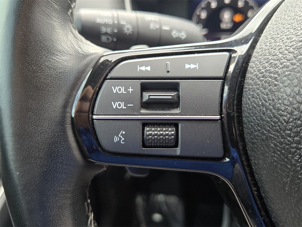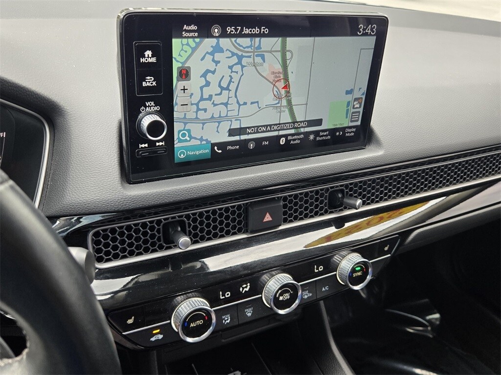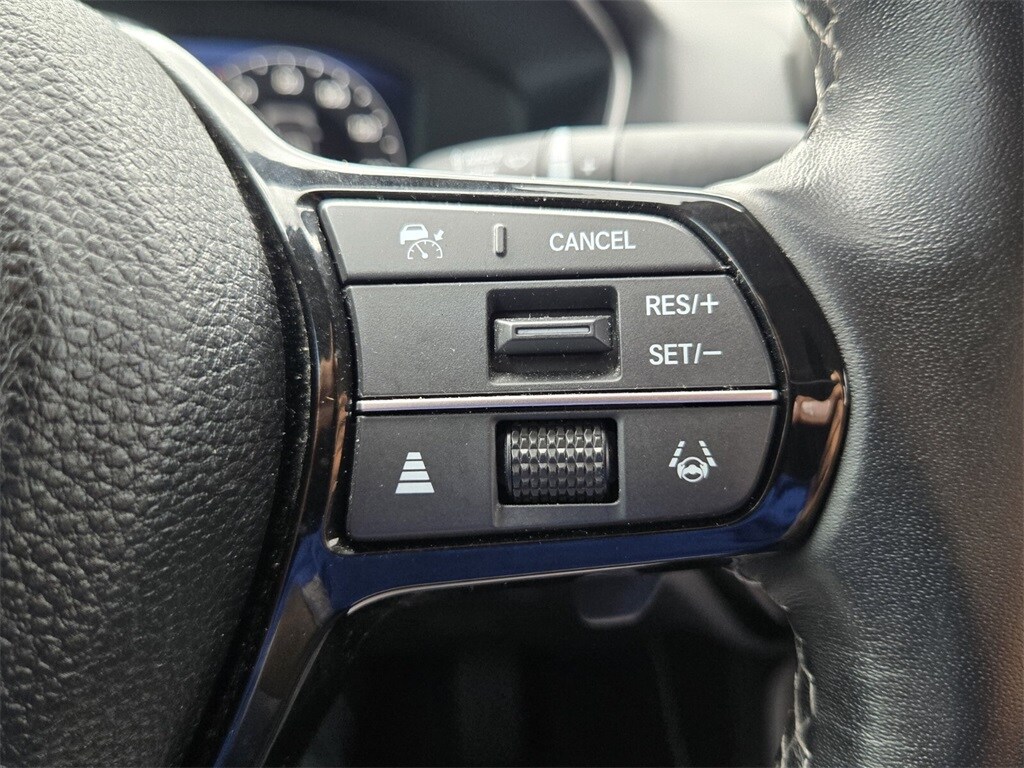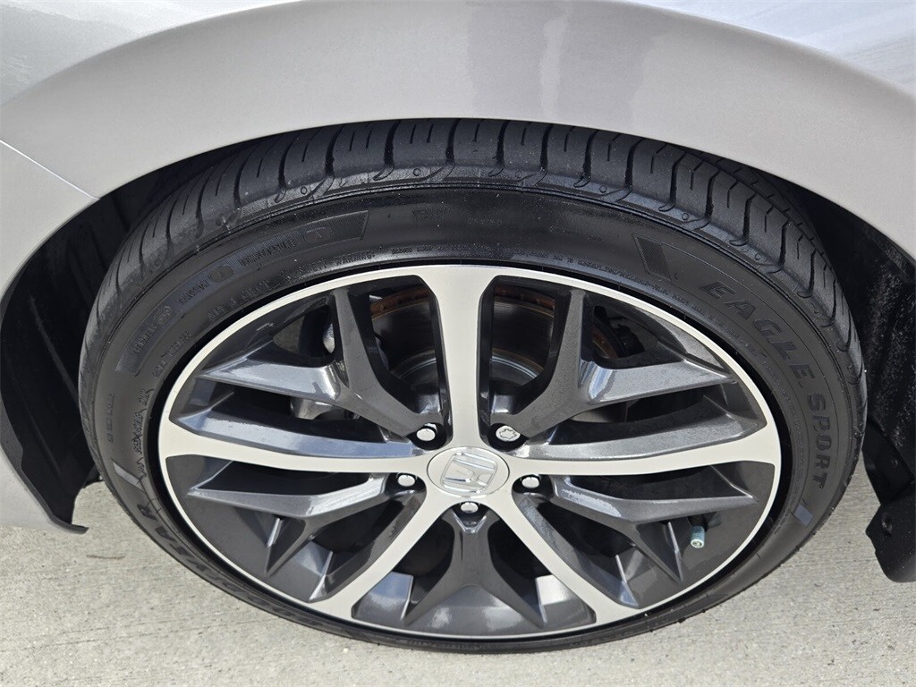 This vehicle comes equipped with Leather, 12 Speakers, 4-Wheel Disc Brakes, ABS brakes, Adaptive Cruise Control: Adaptive Cruise Control (ACC) with Low-Speed Follow, Air Conditioning, Alloy wheels, AM/FM radio: SiriusXM, Apple CarPlay/Android Auto, Auto High-beam Headlights, Auto-dimming Rear-View mirror, Automatic temperature control, Blind Spot Information (BSI) System warning, Bose Premium Audio System, Brake assist, Bumpers: body-color, Compass, Delay-off headlights, Driver door bin, Driver vanity mirror, Dual front impact airbags, Dual front side impact airbags, Electronic Stability Control, Emergency communication system: HondaLink, Exterior Parking Camera Rear, Four wheel independent suspension, Front anti-roll bar, Front Bucket Seats, Front Center Armrest, Front dual zone A/C, Front fog lights, Front reading lights, Fully automatic headlights, Garage door transmitter: HomeLink, Heated door mirrors, Heated Front Bucket Seats, Heated front seats, Illuminated entry, Knee airbag, Leather Shift Knob, Leather steering wheel, Leather-Trimmed Seating Surfaces, Low tire pressure warning, Navigation system: Honda Satellite-Linked Navigation System, Occupant sensing airbag, Outside temperature display, Overhead airbag, Overhead console, Panic alarm, Passenger door bin, Passenger vanity mirror, Power door mirrors, Power driver seat, Power moonroof, Power passenger seat, Power steering, Power windows, Radio data system, Rain sensing wipers, Rear anti-roll bar, Rear seat center armrest, Rear side impact airbag, Rear window defroster, Remote keyless entry, Security system, Speed control, Speed-sensing steering, Split folding rear seat, Steering wheel mounted audio controls, Tachometer, Telescoping steering wheel, Tilt steering wheel, Traction control, Trip computer, Turn signal indicator mirrors, Variably intermittent wipers, and Wheels: 18" Alloy w/Gloss Shark Gray Inserts .