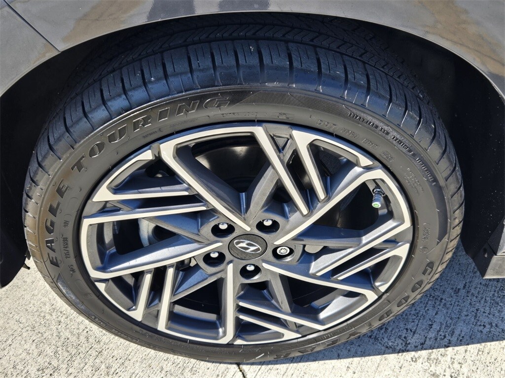 This vehicle comes equipped with Option Group 01, 18" x 7.5J Alloy Wheels, 3.174 Axle Ratio, 4-Wheel Disc Brakes, 6 Speakers, ABS brakes, Air Conditioning, Alloy wheels, AM/FM radio: SiriusXM, Apple CarPlay & Android Auto, Automatic temperature control, Brake assist, Bumpers: body-color, Cargo Net, Cargo Tray, Carpeted Floor Mats, Delay-off headlights, Driver door bin, Driver vanity mirror, Dual front impact airbags, Dual front side impact airbags, Electronic Stability Control, Emergency communication system: Blue Link Connected Car Service (3-year complimentary subscription), Exterior Parking Camera Rear, Front anti-roll bar, Front Bucket Seats, Front Center Armrest, Front reading lights, Front wheel independent suspension, Fully automatic headlights, Heated door mirrors, Heated front seats, Heated Sport Front Bucket Seats, Illuminated entry, Leather Shift Knob, Leather steering wheel, Low tire pressure warning, Navigation System, Occupant sensing airbag, Outside temperature display, Overhead airbag, Overhead console, Panic alarm, Passenger door bin, Passenger vanity mirror, Power door mirrors, Power driver seat, Power moonroof, Power steering, Power windows, Radio: AM/FM/HD/SiriusXM Audio System, Rear seat center armrest, Rear window defroster, Rear window wiper, Remote keyless entry, Roof Rack Cross Rails (DISC), Security system, Speed control, Speed-sensing steering, Split folding rear seat, Spoiler, Sport Cloth Seat Trim, Steering wheel mounted audio controls, Tachometer, Telescoping steering wheel, Tilt steering wheel, Traction control, Trip computer, Turn signal indicator mirrors, and Variably intermittent wipers .