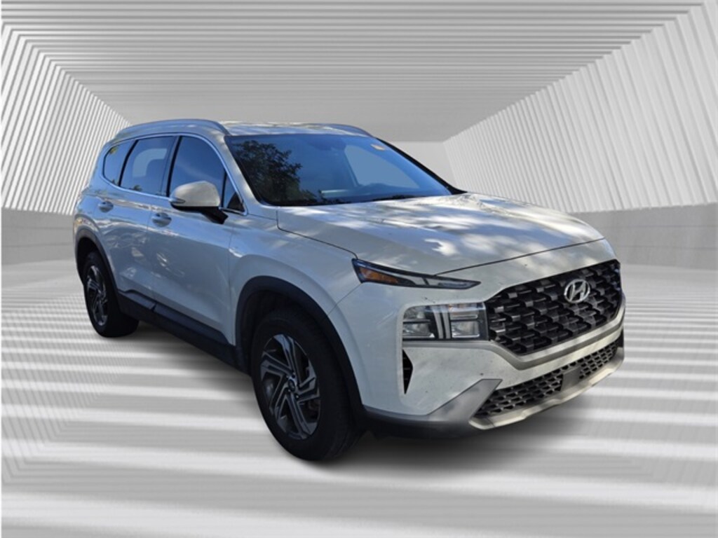 Recent Arrival! Beige Cloth. Serenity White Pearl 2023 Hyundai Santa Fe SEL FWD 2.5L I4 8-Speed Automatic with SHIFTRONIC