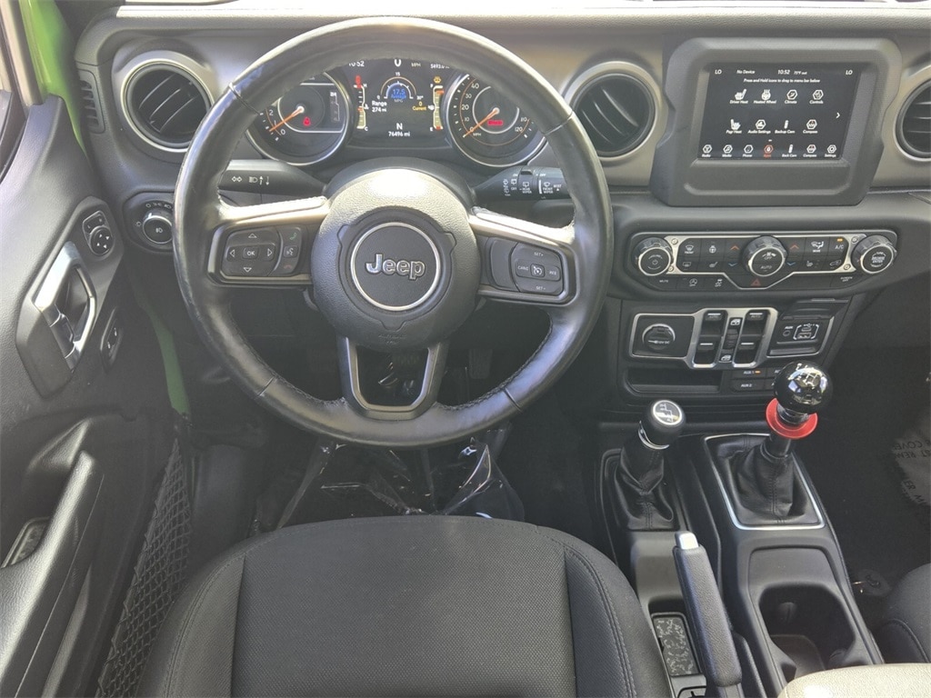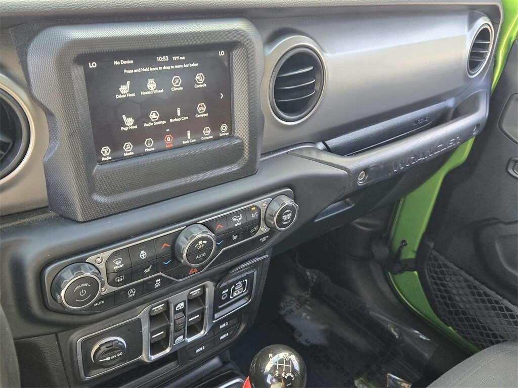 This vehicle comes equipped with Cold Weather Group (Heated Front Seats and Heated Steering Wheel), Convenience Group (Universal Garage Door Opener), Quick Order Package 23S Sport S (Automatic Headlamps, Deep Tint Sunscreen Windows, Front 1-Touch Down Power Windows, Leather Wrapped Steering Wheel, Power Heated Mirrors, Remote Keyless Entry, Security Alarm, Speed Sensitive Power Locks, Sun Visors w/Illuminated Vanity Mirrors, and Wheels: 17" x 7.5" Tech Silver Aluminum), Technology Group (1-Yr SiriusXM Radio Service, 7.0" Touchscreen Display, Air Conditioning w/Auto Temperature Control, Air Filtering, Apple CarPlay, Cluster 7.0" TFT Color Display, For More Info, Call 800-643-2112, Google Android Auto, GPS Antenna Input, Integrated Center Stack Radio, Radio: Uconnect 4 w/7" Display, SiriusXM Satellite Radio, and USB Host Flip), Trailer Tow & HD Electrical Group (240 Amp Alternator, 7 & 4 Pin Wiring Harness, 700 Amp Maintenance Free Battery, Auxiliary Switches, and Class II Receiver Hitch), 220 Amp Alternator, 3.45 Rear Axle Ratio, 4-Wheel Disc Brakes, 8 Speakers, ABS brakes, Air Conditioning, Alpine Premium Audio System, AM/FM radio, Anti-Spin Differential Rear Axle, Black 3-Piece Hard Top, Brake assist, Bridgestone Brand Tires, Cloth Low-Back Bucket Seats, Compass, Delay-off headlights, Driver door bin, Driver vanity mirror, Dual front impact airbags, Dual front side impact airbags, Electronic Stability Control, Freedom Panel Storage Bag, Front anti-roll bar, Front Bucket Seats, Front Center Armrest w/Storage, Front fog lights, Front reading lights, Integrated roll-over protection, Low tire pressure warning, MOPAR Black Tube Steps, Non-Lock Fuel Cap w/o Discriminator, Normal Duty Suspension, Occupant sensing airbag, Outside temperature display, ParkView Rear Back-Up Camera, Passenger door bin, Passenger vanity mirror, Power steering, Radio data system, Radio: Uconnect 3 w/5" Display, Rear anti-roll bar, Rear reading lights, Rear Window Defroster, Rear Window Wiper/Washer, Speed control, Split folding rear seat, Steering wheel mounted audio controls, Tachometer, Telescoping steering wheel, Tilt steering wheel, Traction control, Trip computer, Variably intermittent wipers, Wheels: 17" x 7.5" Black Steel Styled, and Wheels: 17" x 7.5" Polished Granite Crystal .