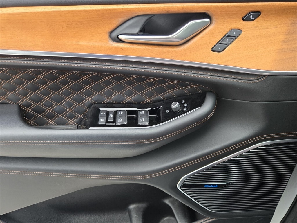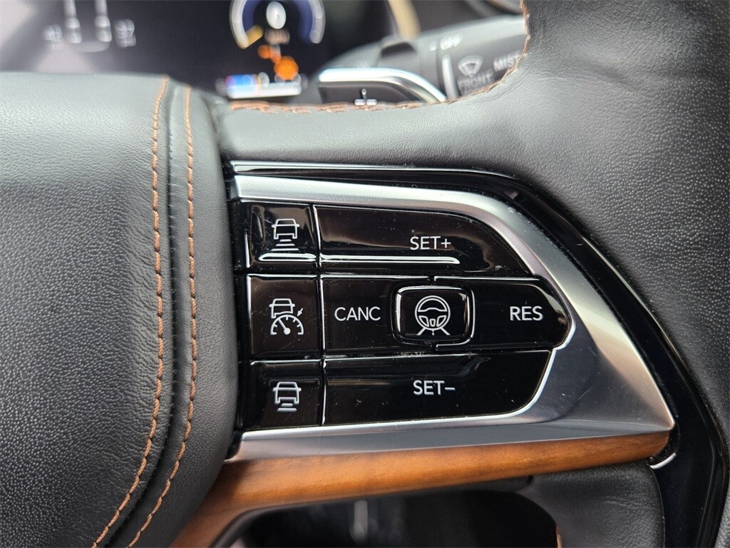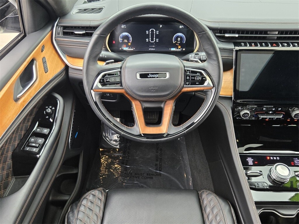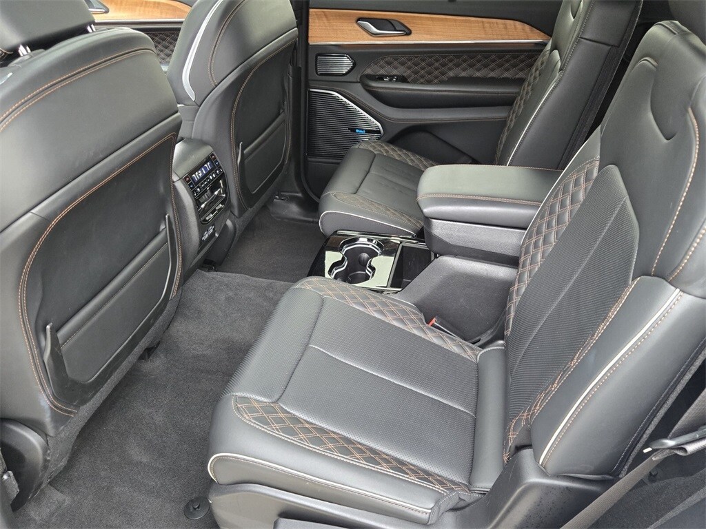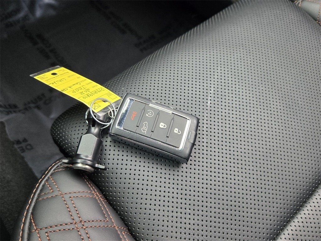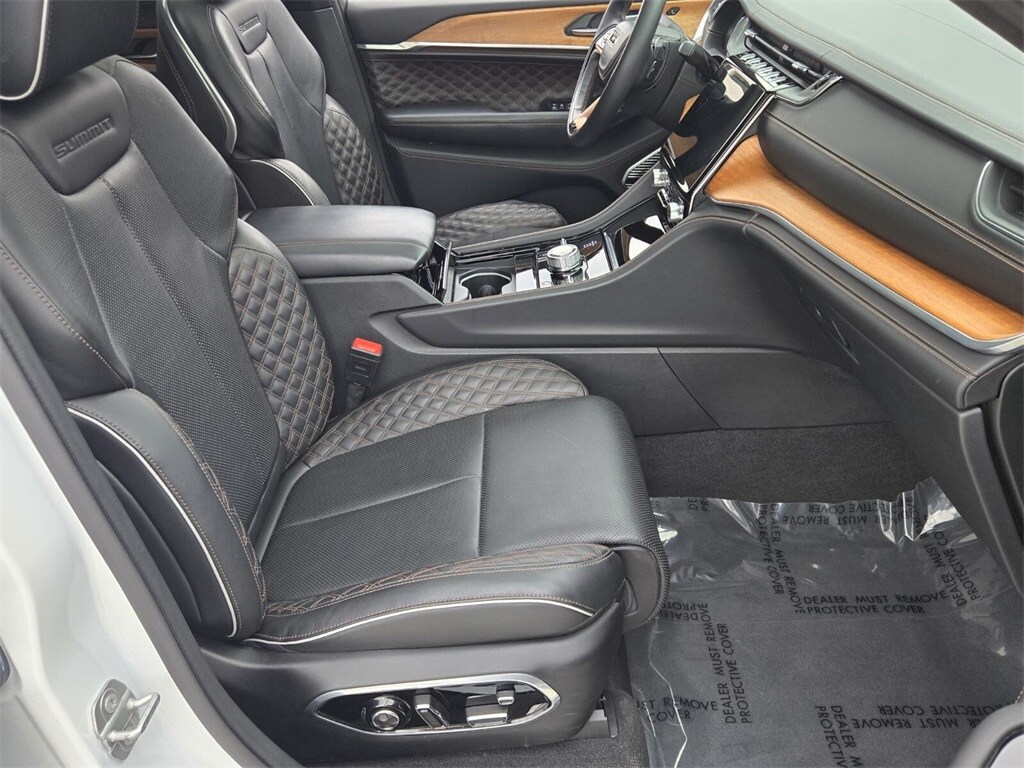 This vehicle comes equipped with Advanced Protech Group IV (Heads-Up Display, Interior Rear Facing Camera, Night Vision/Pedestrian-Animal Detection, and Rearview Autodim Digital Display Mirror), Luxury Tech Group V (2nd Row Manual Window Shades and Wireless Charging Pad), Quick Order Package 22U Summit Reserve (19 Speakers High Performance Audio, 950 Watt Amplifier, Active Noise Control System, Deluxe Headliner, Palermo Leather Door Trim, Palermo Leather Seats, Summit Reserve, Summit Reserve Badge, Ventilated Rear Seats, and Wheels: 21" x 9.0" Machined Face/Painted Aluminum), Trailer Tow Package (7 & 4 Pin Wiring Harness, Class IV Receiver Hitch, and Trailer Hitch Zoom), Two Tone Paint Group, 10 Speakers, 3.45 Rear Axle Ratio, 3rd row seats: split-bench, 4-Wheel Disc Brakes, ABS brakes, Adaptive suspension, Air Conditioning, Alloy wheels, AM/FM radio: SiriusXM w/360L, Anti-whiplash front head restraints, Apple CarPlay/Android Auto, Audio memory, Auto High-beam Headlights, Auto-dimming door mirrors, Auto-dimming Rear-View mirror, Auto-leveling suspension, Automatic temperature control, Brake assist, Bumpers: body-color, Compass, Delay-off headlights, Driver door bin, Driver vanity mirror, Dual front impact airbags, Dual front side impact airbags, Electronic Stability Control, Emergency communication system, Four wheel independent suspension, Front anti-roll bar, Front Bucket Seats, Front Center Armrest w/Storage, Front dual zone A/C, Front fog lights, Front License Plate Bracket (DISC), Front reading lights, Fully automatic headlights, Garage door transmitter, Genuine wood dashboard insert, Genuine wood door panel insert, Heated door mirrors, Heated front seats, Heated rear seats, Heated steering wheel, Illuminated entry, Knee airbag, Leather steering wheel, Low tire pressure warning, Memory seat, Nappa Leather Seats, Navigation System, Normal Duty Suspension, Occupant sensing airbag, Outside temperature display, Overhead airbag, Overhead console, Panic alarm, Passenger door bin, Passenger vanity mirror, Power door mirrors, Power driver seat, Power Fold Seatbacks, Power Liftgate, Power moonroof: CommandView, Power passenger seat, Power steering, Power windows, Radio data system, Radio: Uconnect 5 Nav w/10.1" Display, Rain sensing wipers, Rear air conditioning, Rear anti-roll bar, Rear dual zone A/C, Rear reading lights, Rear seat center armrest, Rear window defroster, Rear window wiper, Reclining 3rd row seat, Remote keyless entry, Roof rack: rails only, Security system, Speed control, Speed-Sens
