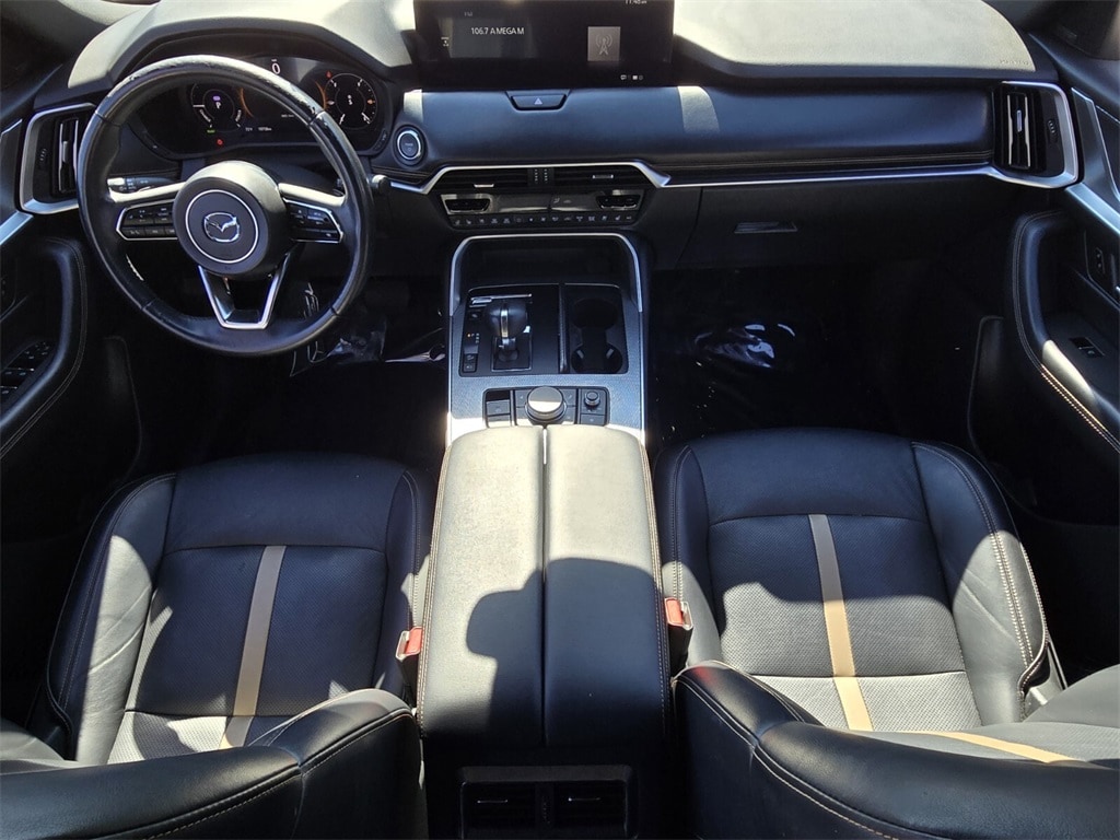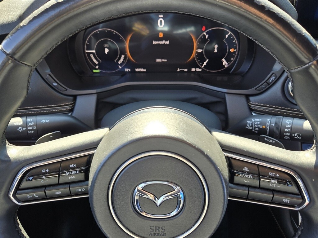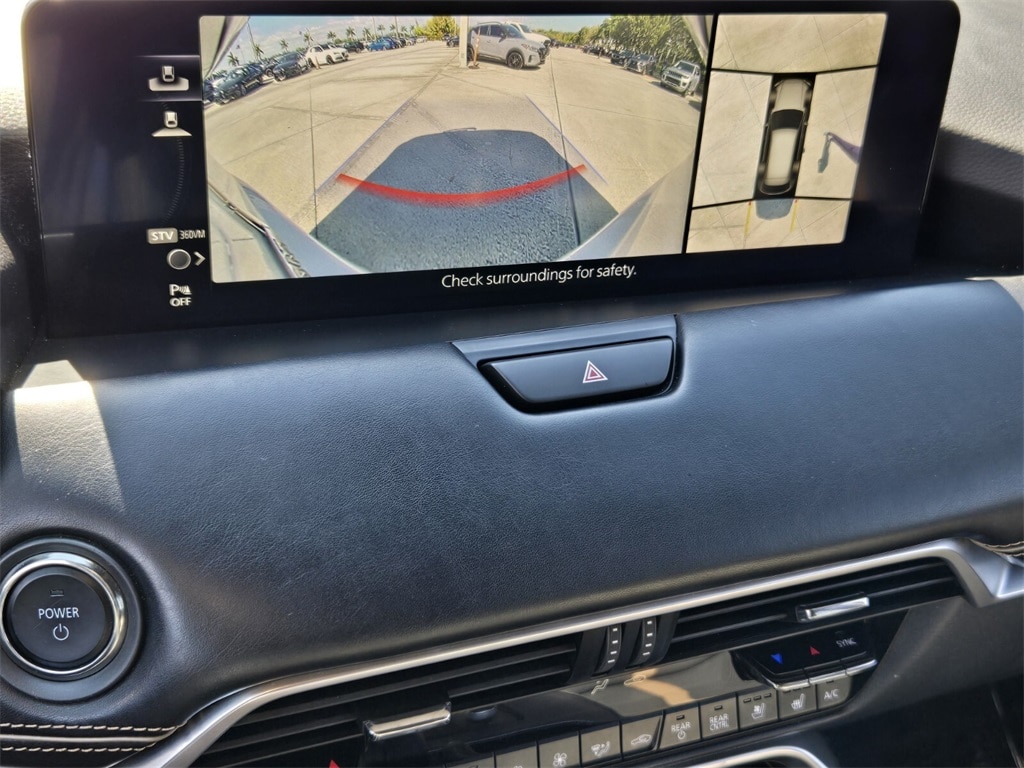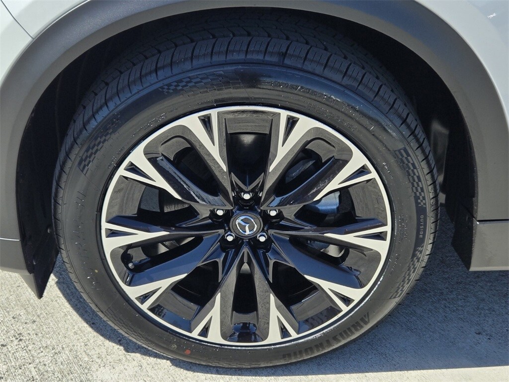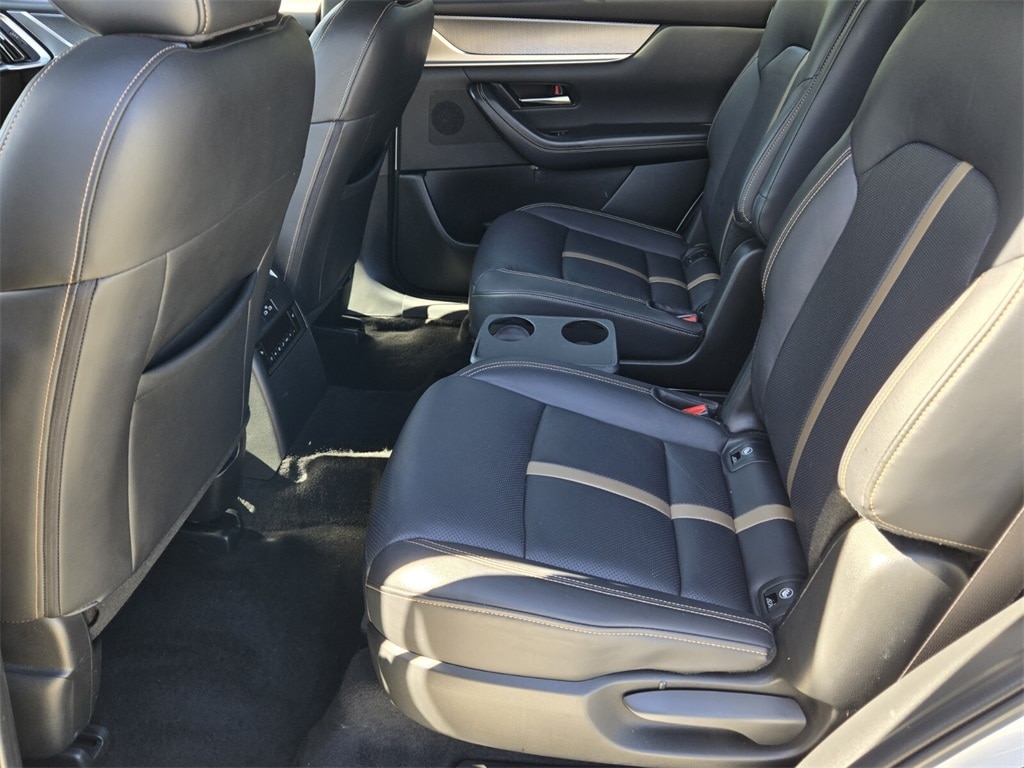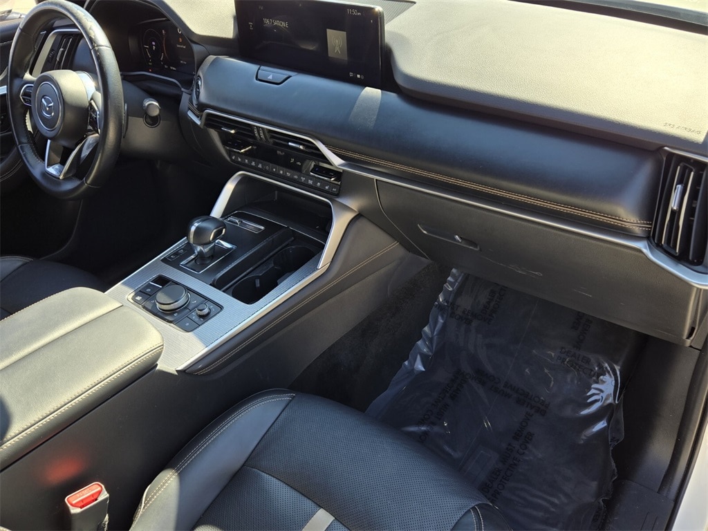 This vehicle comes equipped with 12 Speakers, 3rd row seats: bench, 4-Wheel Disc Brakes, ABS brakes, Air Conditioning, Alloy wheels, AM/FM radio: SiriusXM, Auto High-beam Headlights, Auto-dimming door mirrors, Auto-dimming Rear-View mirror, Automatic temperature control, Brake assist, Bumpers: body-color, Cargo Blocks, Compass, Delay-off headlights, Driver door bin, Driver vanity mirror, Dual front impact airbags, Dual front side impact airbags, E911 Automatic Emergency Notification, Electronic Stability Control, Emergency communication system: MAZDA CONNECT, Four wheel independent suspension, Front anti-roll bar, Front Bucket Seats, Front Center Armrest w/Storage, Front dual zone A/C, Front reading lights, Fully automatic headlights, Garage door transmitter: HomeLink, Heads-Up Display, Heated door mirrors, Heated front seats, Heated rear seats, Heated steering wheel, Heated/Ventilated Front Bucket Seats, Illuminated entry, Infotainment System Voice Command, Knee airbag, Leather Shift Knob, Leather steering wheel, Low tire pressure warning, Mazda Connected Services, Mazda Navigation System, Memory seat, Nappa Leather Seat Trim, Navigation system: MAZDA CONNECT, Occupant sensing airbag, Outside temperature display, Overhead airbag, Overhead console, Pandora Internet Radio Integration, Panic alarm, Passenger door bin, Passenger vanity mirror, Power door mirrors, Power driver seat, Power Liftgate, Power moonroof, Power passenger seat, Power steering, Power windows, Radio Broadcast Data System Program Information, Radio data system, Radio: AM/FM w/HD/Bose 12-Speaker Audio System, Rain sensing wipers, Rear air conditioning, Rear anti-roll bar, Rear reading lights, Rear window defroster, Rear window wiper, Remote keyless entry, Rhodium White Premium Paint Charge, Security system, SMS Text Msg Audio Delivery & Reply, Speed control, Speed-sensing steering, Split folding rear seat, Spoiler, Steering wheel mounted audio controls, Tachometer, Telescoping steering wheel, Tilt steering wheel, Traction control, Trip computer, Turn signal indicator mirrors, Variably intermittent wipers, Ventilated front seats, and Wheels: 21" x 9.5J Aluminum Alloy .