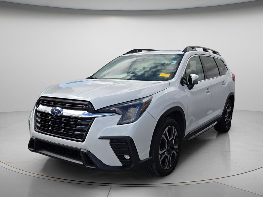 This vehicle comes equipped with Technology Package (Cabin Connect, Panoramic Power Moonroof w/UV/Drk Tint Dual Glass, Radio: Subaru STARLINK 11.6" Multimedia Nav System, Retractable Cargo Area Cover, Satin Chrome Power-Folding Exterior Power Mirrors, and Surround View Monitor System), 3rd row seats: bench, 4-Wheel Disc Brakes, 6 Speakers, ABS brakes, Aero Crossbar Set, Air Conditioning, All-Weather Floor Liners, Alloy wheels, AM/FM radio: SiriusXM, Auto High-beam Headlights, Auto-Dimming Exterior Mirror w/Approach Light, Auto-dimming Rear-View mirror, Automatic temperature control, Axle Ratio: 4.44, Brake assist, Bumpers: body-color, Delay-off headlights, Driver door bin, Driver vanity mirror, Dual front impact airbags, Dual front side impact airbags, Electronic Stability Control, Emergency communication system: STARLINK Safety and Security (Subscription Required), Exterior Parking Camera Rear, Four wheel independent suspension, Front anti-roll bar, Front Bucket Seats, Front Center Armrest, Front dual zone A/C, Front fog lights, Front reading lights, Fully automatic headlights, Garage door transmitter: HomeLink, Heated door mirrors, Heated Front Bucket Seats, Heated front seats, Heated rear seats, Heated steering wheel, HVAC memory, Illuminated entry, Knee airbag, Leather Shift Knob, Leather steering wheel, Low tire pressure warning, Memory seat, Occupant sensing airbag, Outside temperature display, Overhead airbag, Overhead console, Panic alarm, Passenger door bin, Passenger vanity mirror, Perforated Leather-Trimmed Upholstery, Power door mirrors, Power driver seat, Power Liftgate, Power passenger seat, Power steering, Power windows, Radio data system, Radio: Subaru STARLINK 11.6" Multimedia Plus System, Rear air conditioning, Rear anti-roll bar, Rear reading lights, Rear window defroster, Rear window wiper, Reclining 3rd row seat, Remote keyless entry, Security system, Speed control, Speed-sensing steering, Split folding rear seat, Spoiler, STARLINK/Apple CarPlay/Android Auto, Steering wheel mounted audio controls, Tachometer, Telescoping steering wheel, Tilt steering wheel, Traction control, Trip computer, Turn signal indicator mirrors, Variably intermittent wipers, Wheels: 20" x 7.5 J Dk Gray Alloy w/Machine Finish, Windshield Sunshade, and Wireless Charger .