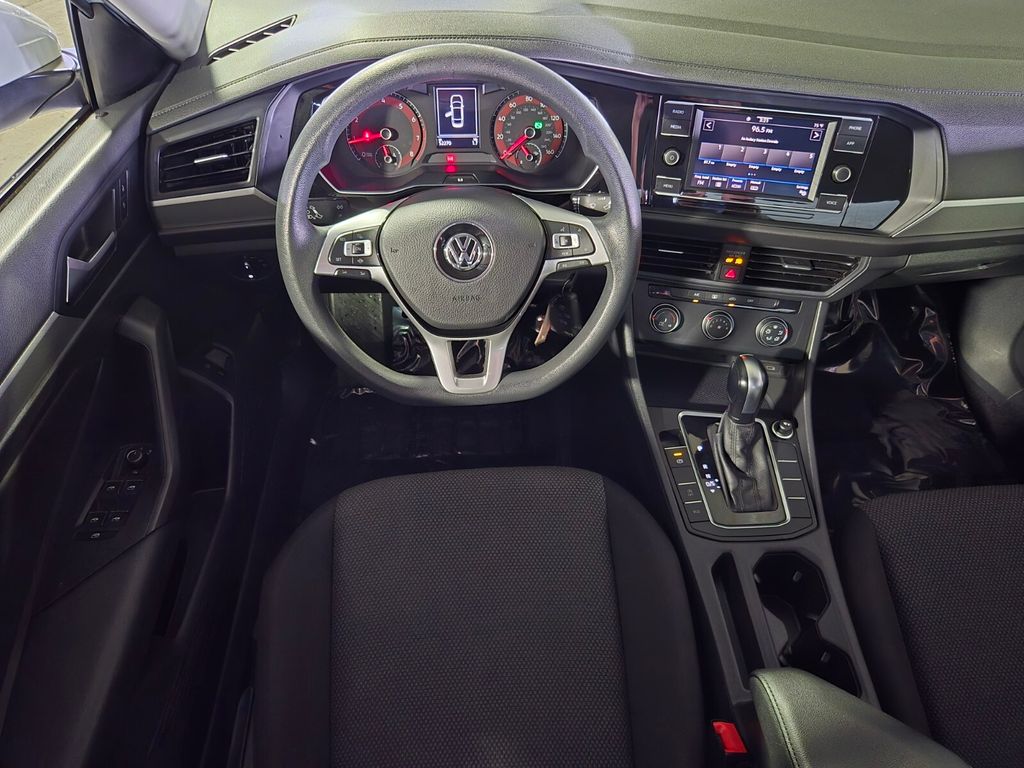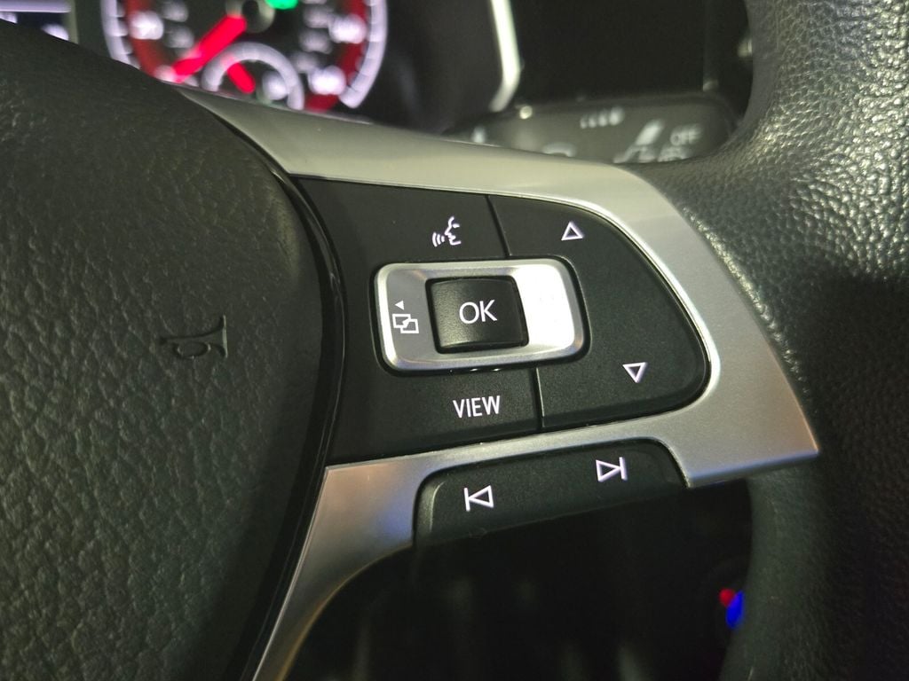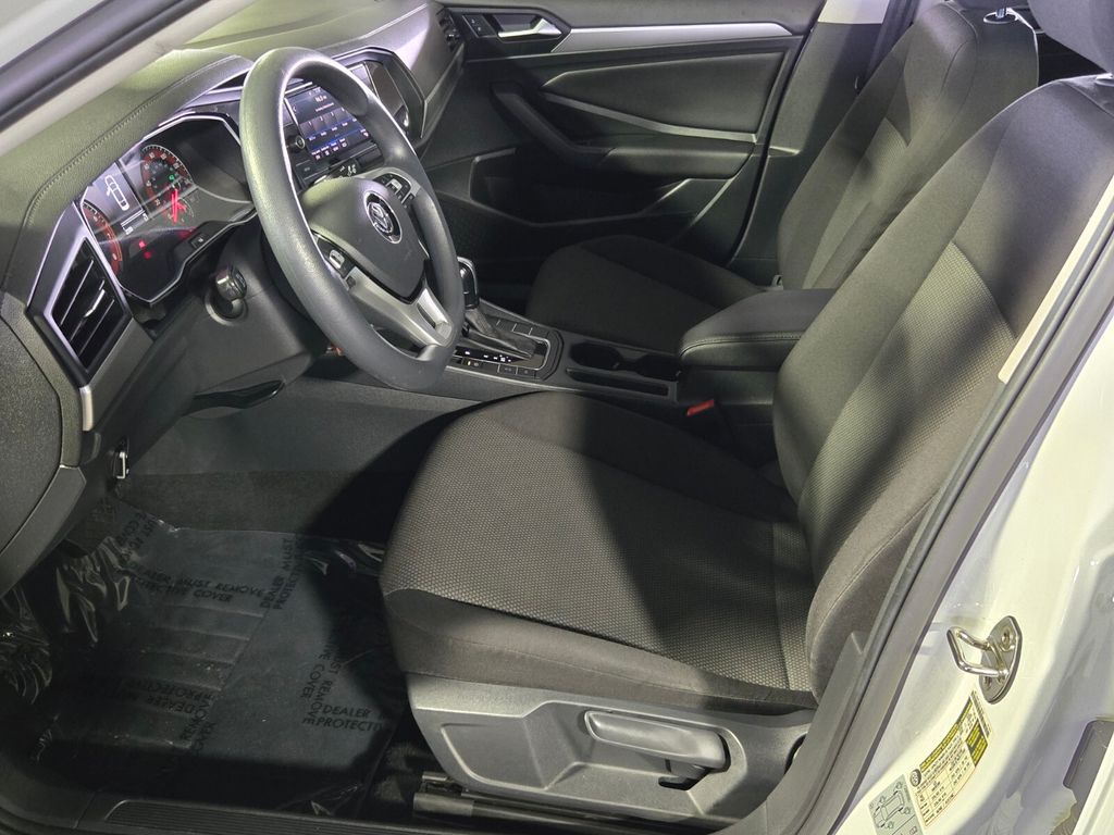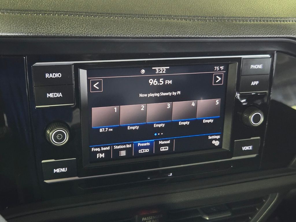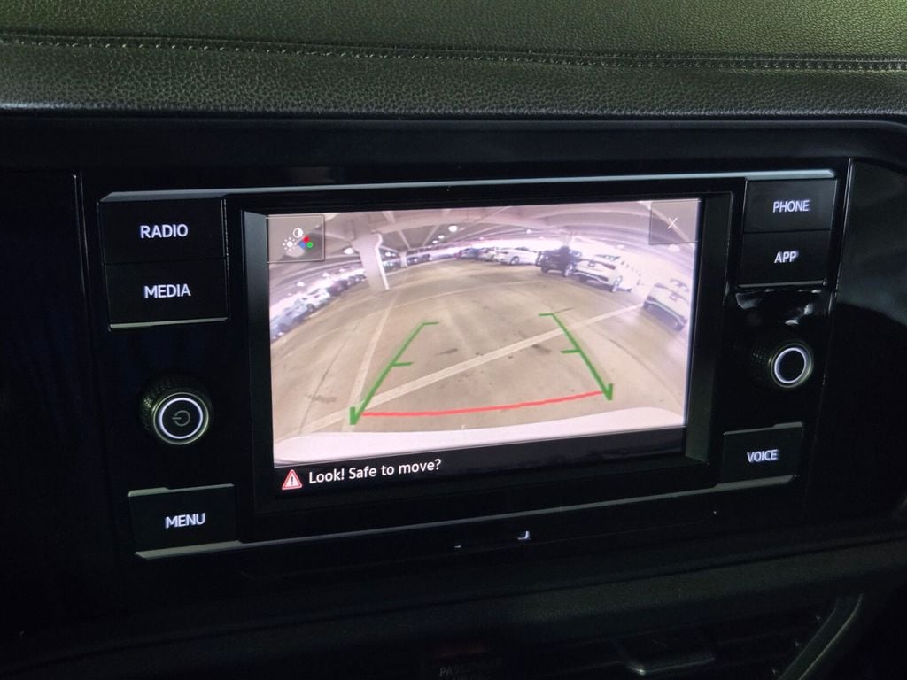 This vehicle comes equipped with Driver Assistance Package (Blind Spot Monitor, Front Assist w/Autonomous Emergency Braking, Heated Side Mirrors, and Rear Traffic Alert), Black Cloth, 4 Speakers, 4-Wheel Disc Brakes, ABS brakes, Air Conditioning, Alloy wheels, AM/FM radio, Brake assist, Bumpers: body-color, Cloth Seat Trim, Delay-off headlights, Driver door bin, Driver vanity mirror, Dual front impact airbags, Dual front side impact airbags, Electronic Stability Control, Emergency communication system: VW Car-Net services (capabilities require enrollment or subscription), Exterior Parking Camera Rear, First Aid Kit, Front anti-roll bar, Front Bucket Seats, Front Center Armrest, Front Comfort Seats, Front wheel independent suspension, Fully automatic headlights, Illuminated entry, Low tire pressure warning, Monster Mats w/Logo Rubber Mats Kit (Set of 4), Occupant sensing airbag, Outside temperature display, Overhead airbag, Overhead console, Panic alarm, Passenger door bin, Passenger vanity mirror, Power door mirrors, Power steering, Power windows, Radio data system, Radio: Composition Color w/6.5" Touchscreen, Rear anti-roll bar, Rear reading lights, Rear window defroster, Remote keyless entry, Roadside Assistance Kit, Speed control, Speed-sensing steering, Split folding rear seat, Steering wheel mounted audio controls, Tachometer, Telescoping steering wheel, Tilt steering wheel, Traction control, Trip computer, Variably intermittent wipers, VW Care, and Wheels: 16" 2-Tone Machined Alloy .