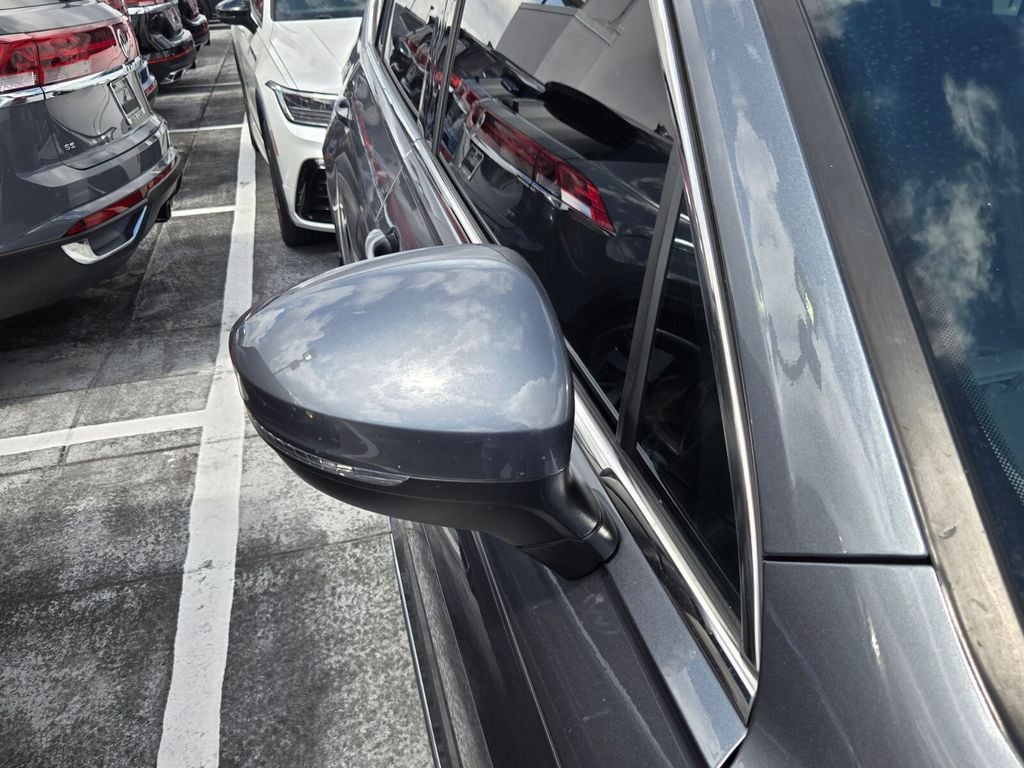 This vehicle comes equipped with Panoramic Sunroof Package, Volkswagen Certified, 3-Row Rubber Monster Mats w/Logo Kit (Set of 5), 3.33 Axle Ratio, 3rd row seats: bench, 4-Wheel Disc Brakes, 4-Wheel Independent Suspension, 6 Speakers, ABS brakes, Air Conditioning, Alloy wheels, AM/FM radio: SiriusXM with 360L, Automatic temperature control, Brake assist, Bumpers: body-color, Cargo Area Retractable Privacy Cover, Compass, Delay-off headlights, Driver door bin, Driver vanity mirror, Dual front impact airbags, Dual front side impact airbags, Electronic Stability Control, Emergency communication system: VW Car-Net services (capabilities require enrollment or subscription), Exterior Parking Camera Rear, Forward collision: FCW w/Autonomous Emergency Braking mitigation, Four wheel independent suspension, Frameless Auto-Dimming Rearview Mirror, Front anti-roll bar, Front Bucket Seats, Front Center Armrest, Front dual zone A/C, Front reading lights, Fully automatic headlights, Heated door mirrors, Heated Front Comfort Seats, Heated front seats, Heavy Duty Trunk Liner w/VW CarGo Blocks, Illuminated entry, Leather Shift Knob, Low tire pressure warning, Occupant sensing airbag, Outside temperature display, Overhead airbag, Overhead console, Panic alarm, Passenger door bin, Passenger vanity mirror, Perforated V-Tex Leatherette Seating Surfaces, Power door mirrors, Power driver seat, Power steering, Power windows, Radio data system, Radio: MIB3 Composition Media AM/FM/HD, Rear anti-roll bar, Rear reading lights, Rear seat center armrest, Rear window defroster, Rear window wiper, Remote keyless entry, Roof rack: rails only, Security system, Speed control, Speed-sensing steering, Split folding rear seat, Spoiler, Steering wheel mounted audio controls, Tachometer, Telescoping steering wheel, Tilt steering wheel, Traction control, Trip computer, Turn signal indicator mirrors, Variably intermittent wipers, and Wheels: 17" 2-Tone Machined & Black Alloy .
