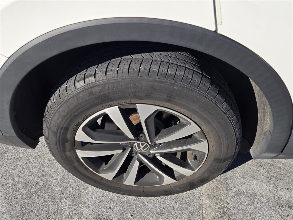 This vehicle comes equipped with 3-Row Rubber Monster Mats w/Logo Kit (Set of 5), 3.33 Axle Ratio, 3rd row seats: bench, 4-Wheel Disc Brakes, 4-Wheel Independent Suspension, 6 Speakers, ABS brakes, Air Conditioning, Alloy wheels, AM/FM radio, Brake assist, Bumpers: body-color, Cloth Seating Surfaces, Compass, Delay-off headlights, Driver door bin, Driver vanity mirror, Dual front impact airbags, Dual front side impact airbags, Electronic Stability Control, Emergency communication system: Car-Net, Exterior Parking Camera Rear, First Aid Kit, Forward collision: FCW w/Autonomous Emergency Braking mitigation, Four wheel independent suspension, Front anti-roll bar, Front Bucket Seats, Front Center Armrest, Front reading lights, Fully automatic headlights, Heated door mirrors, Heated Front Bucket Seats, Heated front seats, Heavy Duty Trunk Liner w/VW CarGo Blocks, Illuminated entry, Leather Shift Knob, Low tire pressure warning, Occupant sensing airbag, Outside temperature display, Overhead airbag, Overhead console, Panic alarm, Passenger door bin, Passenger vanity mirror, Power door mirrors, Power steering, Power windows, Radio data system, Radio: Composition Color AM/FM, Rear anti-roll bar, Rear reading lights, Rear seat center armrest, Rear window defroster, Rear window wiper, Remote keyless entry, Roadside Assistance Kit, Roof rack: rails only, Speed control, Speed-sensing steering, Split folding rear seat, Spoiler, Steering wheel mounted audio controls, Tachometer, Telescoping steering wheel, Tilt steering wheel, Traction control, Trip computer, Turn signal indicator mirrors, Variably intermittent wipers, and Wheels: 17" 2-Tone Machined Twin 5-Spoke Alloy .