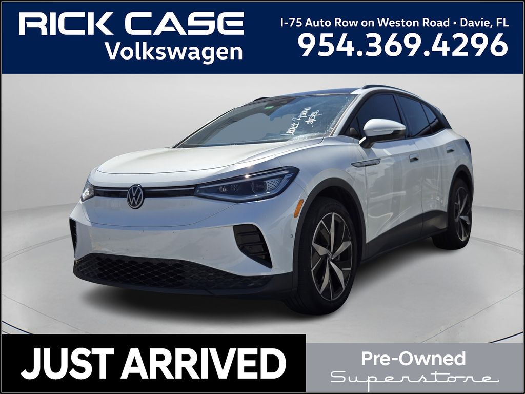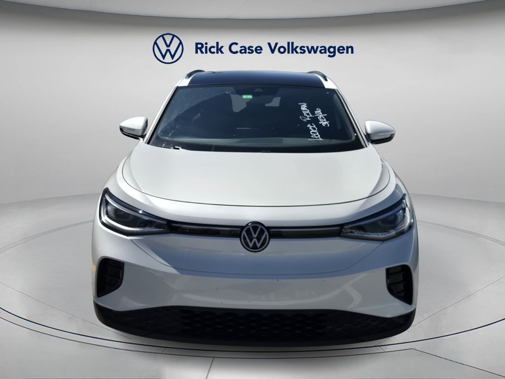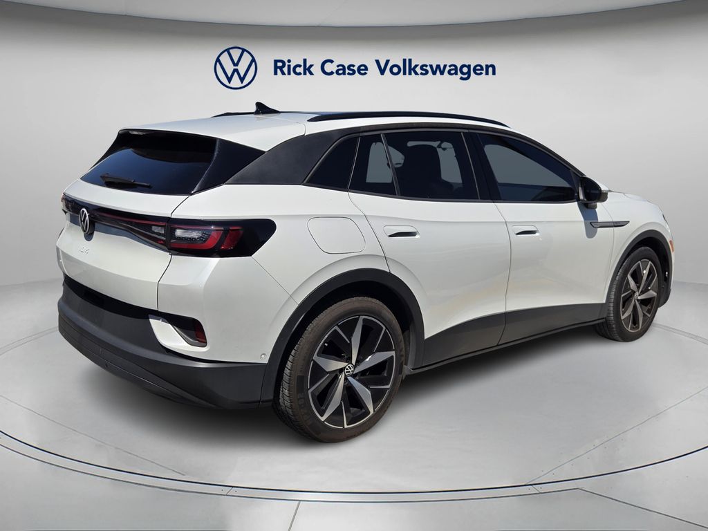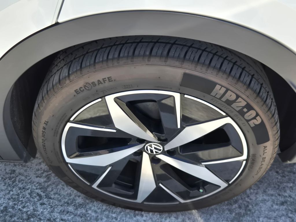 This vehicle comes equipped with ID.4 Protection & Convenience Package (IPT) (EV Roadside Assistance Kit, First Aid Kit, Heavy Duty Trunk Liner w/VW CarGo Blocks, and Rubber Mats Kit), 4 Wheel Independent Suspension, 4.39 Axle Ratio, 7 Speakers, ABS brakes, Air Conditioning, Alloy wheels, Auto High-beam Headlights, Auto-dimming Rear-View mirror, Auto-Dimming Rearview Mirror w/HomeLink Connect, Automatic temperature control, Brake assist, Bumpers: body-color, Delay-off headlights, Driver door bin, Driver vanity mirror, Driver's Seat Mounted Armrest, Dual front impact airbags, Dual front side impact airbags, Electronic Stability Control, Emergency communication system: VW Car-Net Safe & Secure 5-year, Exterior Parking Camera Rear, Four wheel independent suspension, Front anti-roll bar, Front Bucket Seats, Front dual zone A/C, Front fog lights, Front reading lights, Fully automatic headlights, Heated door mirrors, Heated Front Seats, Heated front seats, Heated steering wheel, Illuminated entry, Low tire pressure warning, Memory seat, Navigation System, Occupant sensing airbag, Outside temperature display, Overhead airbag, Overhead console, Panic alarm, Passenger door bin, Passenger seat mounted armrest, Passenger vanity mirror, Perforated V-Tex Leatherette Seating Surfaces, Power door mirrors, Power driver seat, Power Liftgate, Power passenger seat, Power steering, Power windows, Radio data system, Radio: Discover Pro Max w/12" Touchscreen Nav, Rain sensing wipers, Rear anti-roll bar, Rear reading lights, Rear seat center armrest, Rear window defroster, Rear window wiper, Remote keyless entry, Speed control, Speed-sensing steering, Split folding rear seat, Spoiler, Steering wheel mounted audio controls, Telescoping steering wheel, Tilt steering wheel, Traction control, Trip computer, Turn signal indicator mirrors, Variably intermittent wipers, and Wheels: 20" 5-Spoke 2-Tone Machined Alloy .