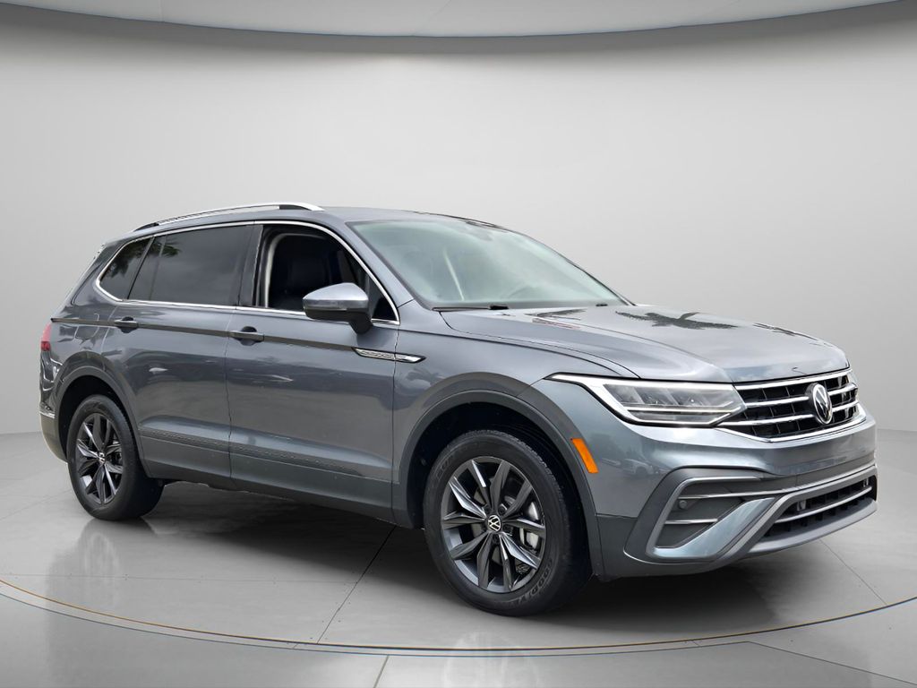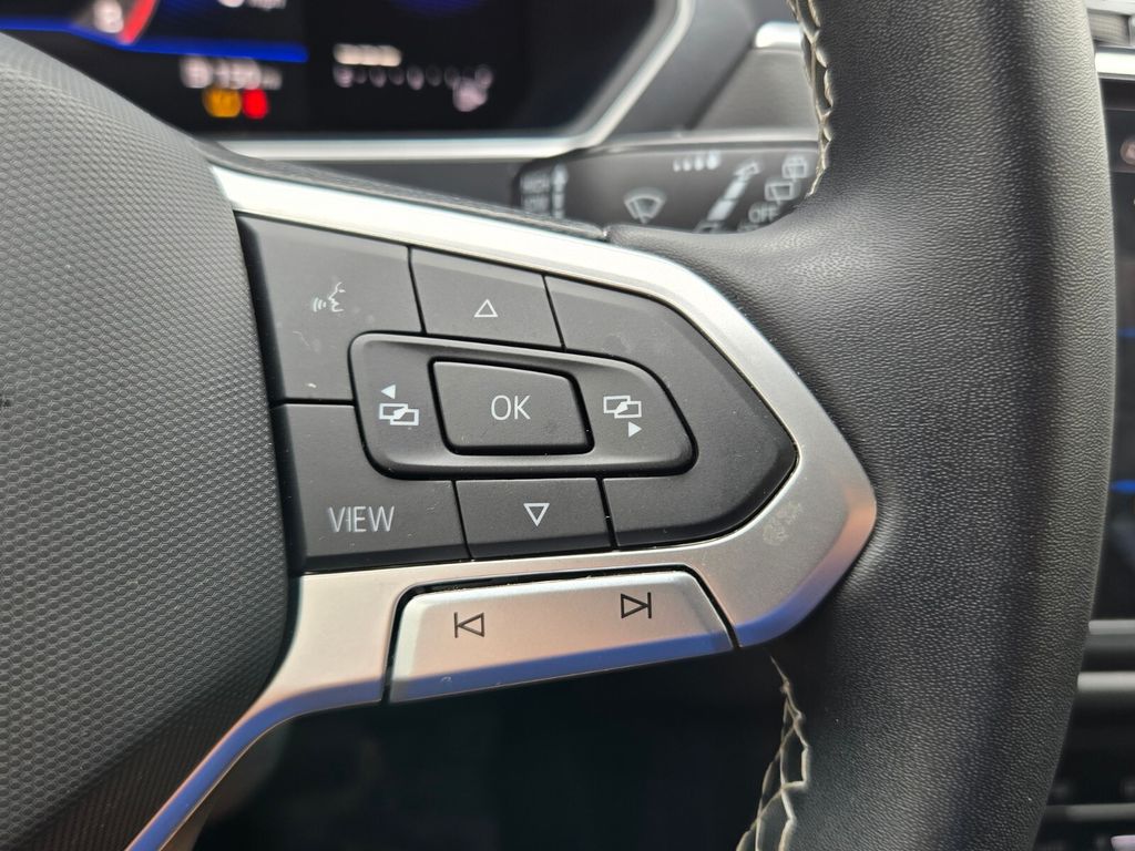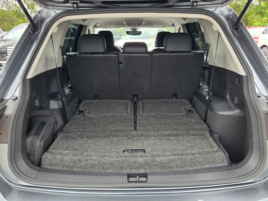 This vehicle comes equipped with 3-Row Rubber Monster Mats w/Logo Kit (Set of 5), 3.33 Axle Ratio, 3rd row seats: bench, 4-Wheel Disc Brakes, 4-Wheel Independent Suspension, 6 Speakers, ABS brakes, Air Conditioning, Alloy wheels, AM/FM radio: SiriusXM with 360L, Auto-dimming Rear-View mirror, Auto-Dimming Rearview Mirror w/Compass/HomeLink (DISC), Automatic temperature control, Brake assist, Bumpers: body-color, Cargo Area Retractable Privacy Cover, Compass, Credit - Power Rear Liftgate Removed, Delay-off headlights, Driver door bin, Driver vanity mirror, Dual front impact airbags, Dual front side impact airbags, Electronic Stability Control, Emergency communication system: VW Car-Net Safe & Secure 5-year, Exterior Parking Camera Rear, First Aid Kit, Four wheel independent suspension, Front anti-roll bar, Front Bucket Seats, Front Center Armrest, Front dual zone A/C, Front reading lights, Fully automatic headlights, Heated door mirrors, Heated Front Comfort Seats, Heated front seats, Heavy Duty Trunk Liner w/VW CarGo Blocks, Illuminated entry, Leather Shift Knob, Low tire pressure warning, Occupant sensing airbag, Outside temperature display, Overhead airbag, Overhead console, Panic alarm, Passenger door bin, Passenger vanity mirror, Perforated V-Tex Leatherette Seating Surfaces, Power door mirrors, Power driver seat, Power Liftgate, Power steering, Power windows, Radio data system, Radio: MIB3 Composition Media AM/FM/HD, Rain sensing wipers, Rear anti-roll bar, Rear reading lights, Rear seat center armrest, Rear window defroster, Rear window wiper, Remote keyless entry, Roadside Assistance Kit, Security system, Speed control, Speed-sensing steering, Split folding rear seat, Spoiler, Steering wheel mounted audio controls, Tachometer, Telescoping steering wheel, Tilt steering wheel, Traction control, Trip computer, Turn signal indicator mirrors, Variably intermittent wipers, and Wheels: 18" Dark Graphite Painted 10-Spoke Alloy .