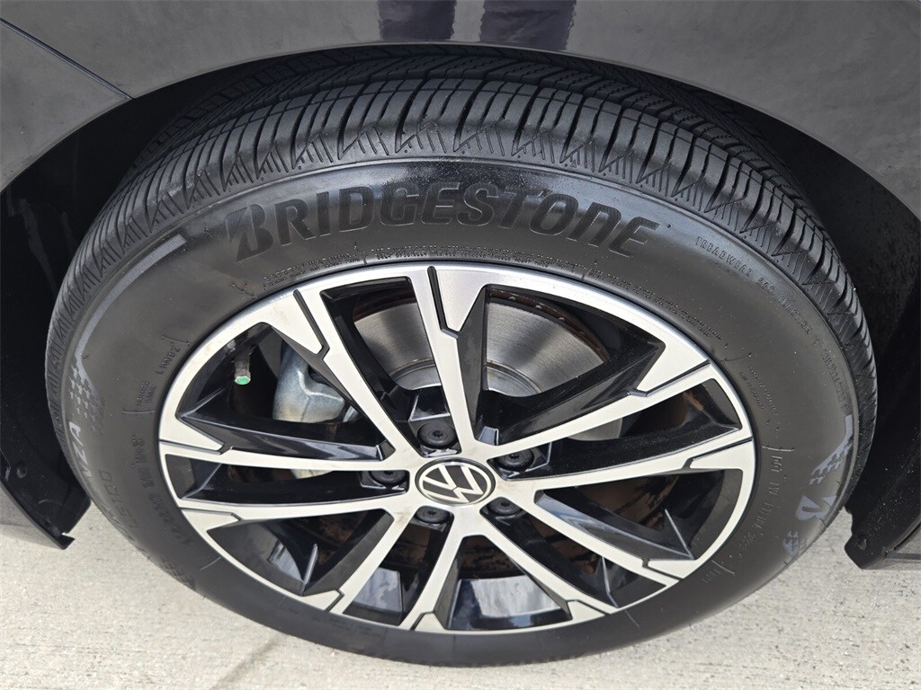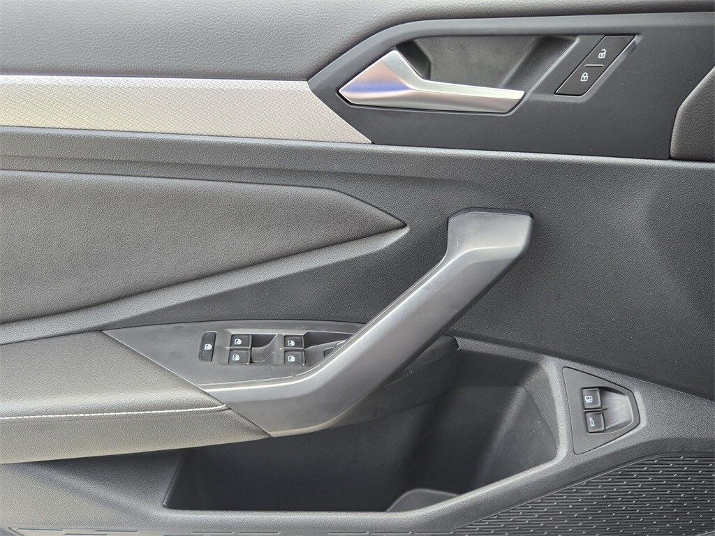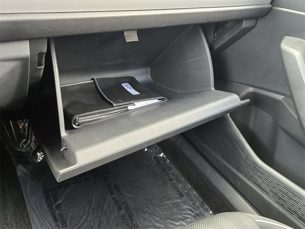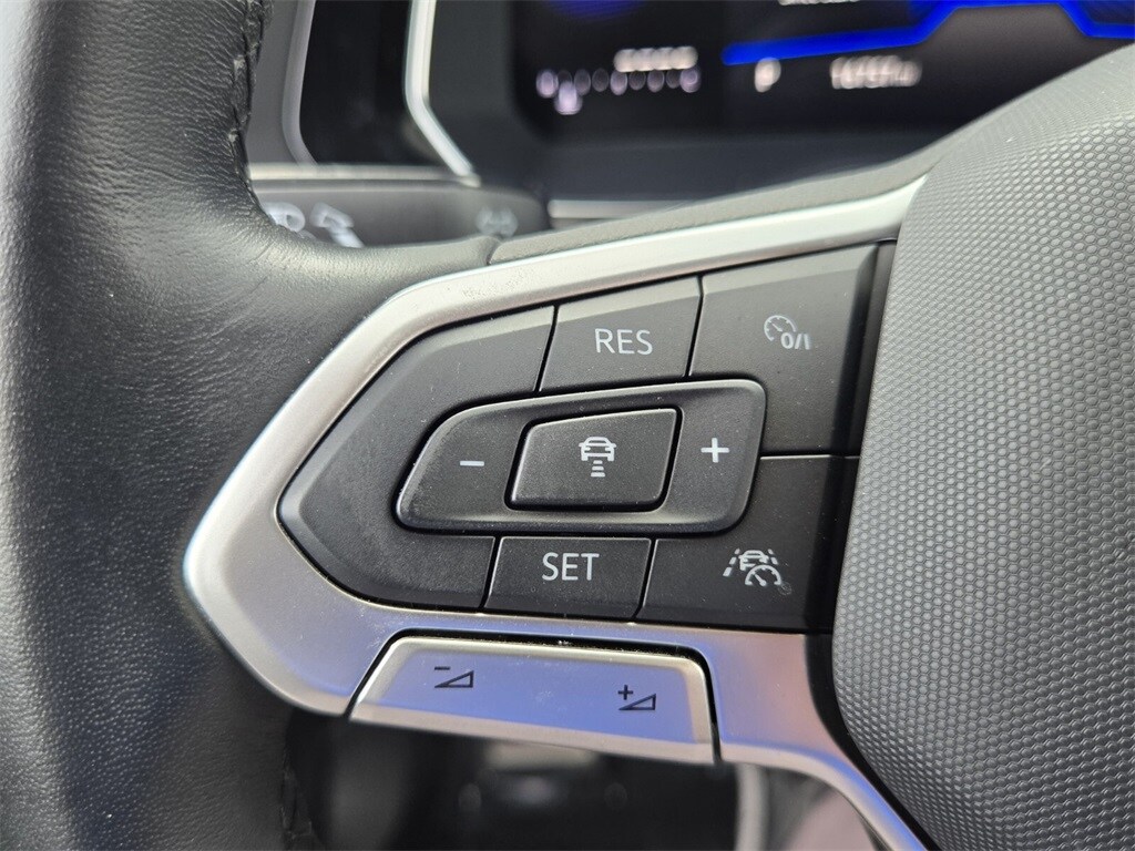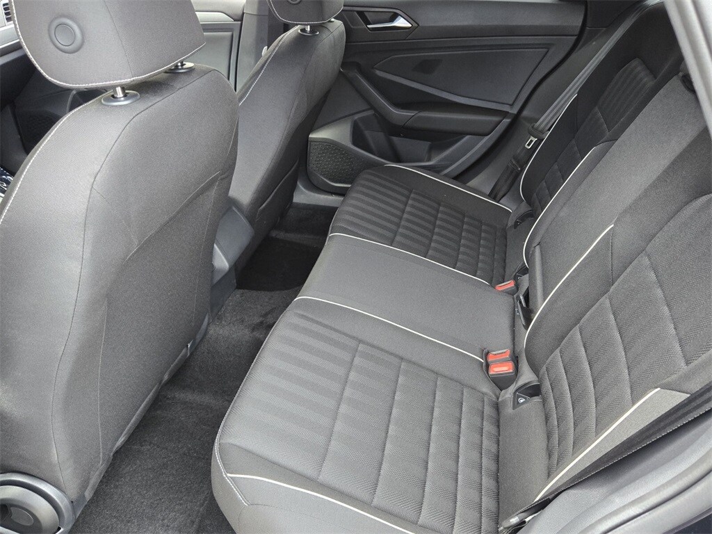 This vehicle comes equipped with Cloth, 4 Speakers, 4-Wheel Disc Brakes, ABS brakes, Active Blind Spot Monitor, Air Conditioning, Alloy wheels, Auto-dimming Rear-View mirror, Brake assist, Bumpers: body-color, Cloth Seat Trim, Delay-off headlights, Driver door bin, Driver vanity mirror, Dual front impact airbags, Dual front side impact airbags, Electronic Stability Control, Emergency communication system: VW Car-Net Safe & Secure 5-year, Exterior Parking Camera Rear, Front anti-roll bar, Front Bucket Seats, Front Center Armrest, Front wheel independent suspension, Fully automatic headlights, Heated door mirrors, Heated Front Seats, Heated front seats, Illuminated entry, Leather Shift Knob, Leather steering wheel, Low tire pressure warning, Occupant sensing airbag, Outside temperature display, Overhead airbag, Overhead console, Panic alarm, Passenger door bin, Passenger vanity mirror, Power door mirrors, Power steering, Power windows, Radio data system, Radio: MIB3 Composition Color w/6.5" Touchscreen, Rain sensing wipers, Rear anti-roll bar, Rear reading lights, Rear seat center armrest, Rear window defroster, Remote keyless entry, Speed control, Speed-sensing steering, Split folding rear seat, Steering wheel mounted audio controls, Tachometer, Telescoping steering wheel, Tilt steering wheel, Traction control, Trip computer, Variably intermittent wipers, and Wheels: 17" 2-Tone Machined Alloy .