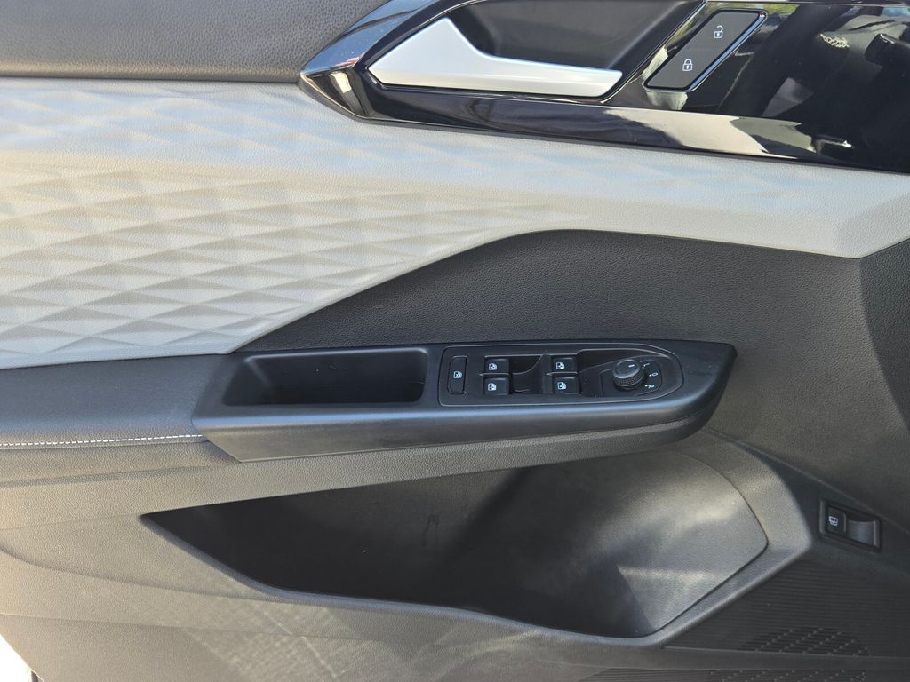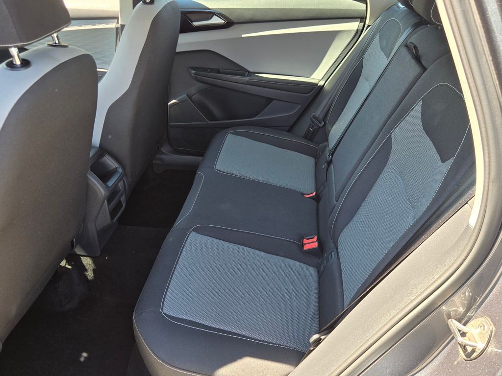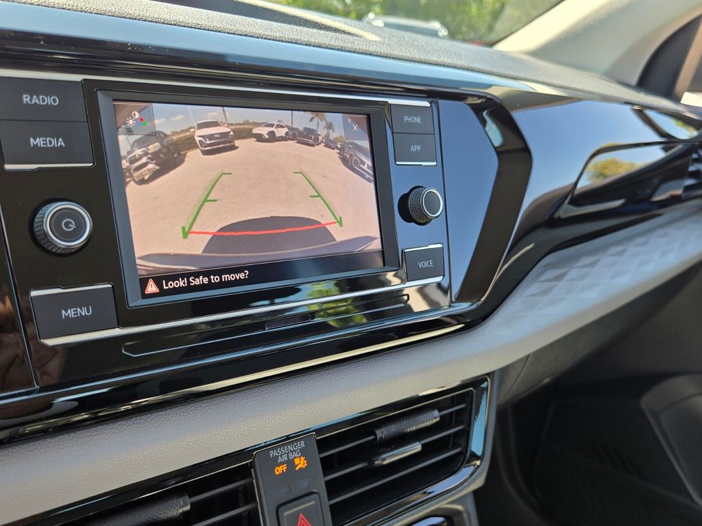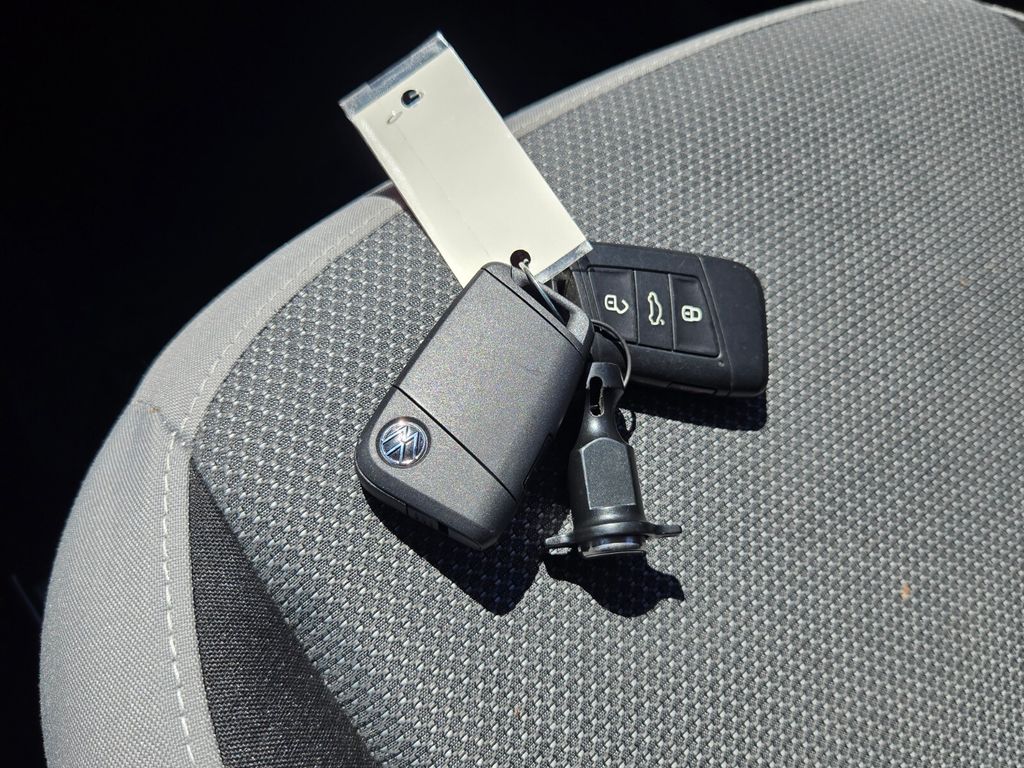 This vehicle comes equipped with 3.23 Axle Ratio, 4-Wheel Disc Brakes, 6 Speakers, ABS brakes, Active Blind Spot Monitor, Air Conditioning, Alloy wheels, AM/FM radio, Auto High-beam Headlights, Brake assist, Bumpers: body-color, Cloth Seating Surfaces, Compass, Delay-off headlights, Driver door bin, Driver vanity mirror, Dual front impact airbags, Dual front side impact airbags, Electronic Stability Control, Emergency communication system: VW Car-Net Safe & Secure 5-year, Exterior Parking Camera Rear, Front anti-roll bar, Front Bucket Seats, Front Center Armrest, Front reading lights, Front Strut Rear Torsion Beam Suspension, Front wheel independent suspension, Fully automatic headlights, Heated steering wheel, Illuminated entry, Leather Shift Knob, Low tire pressure warning, Occupant sensing airbag, Outside temperature display, Overhead airbag, Overhead console, Panic alarm, Passenger door bin, Passenger vanity mirror, Power door mirrors, Power steering, Power windows, Radio data system, Radio: Composition Color AM/FM, Rain sensing wipers, Rear anti-roll bar, Rear seat center armrest, Rear window defroster, Rear window wiper, Remote keyless entry, Roof rack: rails only, Rubber Mats Kit (SNM), Speed control, Speed-sensing steering, Split folding rear seat, Spoiler, Steering wheel mounted audio controls, Tachometer, Telescoping steering wheel, Tilt steering wheel, Traction control, Trip computer, Variably intermittent wipers, and Wheels: 17" Silver Painted Alloy .