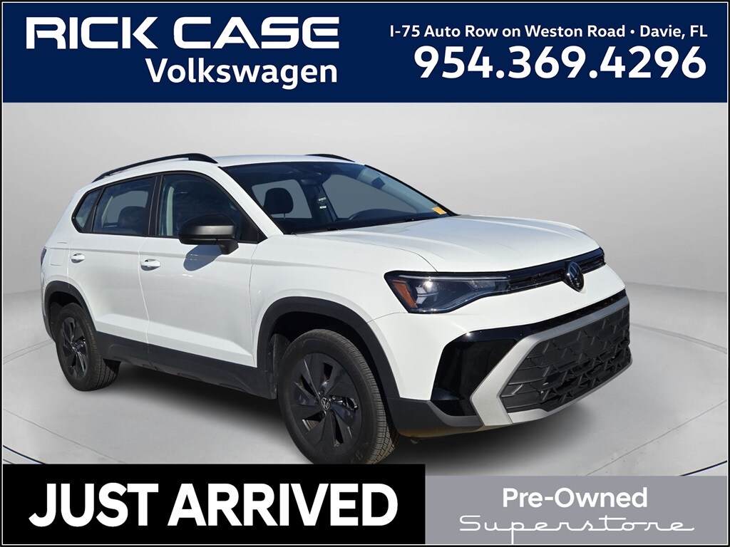 White 2025 Volkswagen Taos 1.5T S FWD 8-Speed Automatic with Tiptronic 1.5L I4 Turbocharged DOHC 16V LEV3-SULEV30 174hp