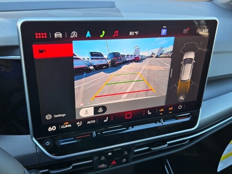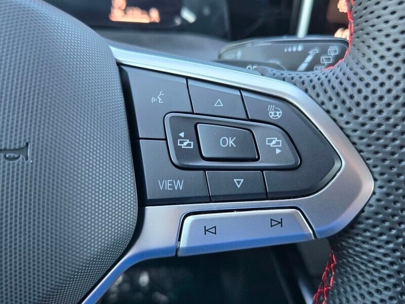This vehicle comes equipped with 4-Wheel Disc Brakes, 7 Speakers, ABS brakes, Air Conditioning, Alloy wheels, AM/FM radio: SiriusXM with 360L, Auto-dimming Rear-View mirror, Automatic temperature control, Brake assist, Bumpers: body-color, Cloth Seating Surfaces with Scalepaper Plaid Inserts, Compass, Delay-off headlights, Driver door bin, Driver vanity mirror, Dual front impact airbags, Dual front side impact airbags, Electronic Stability Control, Emergency communication system: VW Car-Net Safe & Secure 5-year, Exterior Parking Camera Rear, Forward collision: FCW w/Autonomous Emergency Braking mitigation, Four wheel independent suspension, Front anti-roll bar, Front Bucket Seats, Front Center Armrest, Front fog lights, Front reading lights, Fully automatic headlights, Heated door mirrors, Heated front seats, Heated Front Top Sport Seats, Heated steering wheel, Illuminated entry, Leather steering wheel, Low tire pressure warning, Navigation System, Occupant sensing airbag, Outside temperature display, Overhead airbag, Overhead console, Panic alarm, Passenger door bin, Passenger vanity mirror, Power door mirrors, Power driver seat, Power passenger seat, Power steering, Power windows, Radio data system, Radio: MIB3 Discover Pro AM/FM/HD with 12.9" Touchscreen Navigation, Rain sensing wipers, Rear anti-roll bar, Rear reading lights, Rear seat center armrest, Rear window defroster, Rear window wiper, Remote keyless entry, Security system, Speed control, Speed-sensing steering, Speed-Sensitive Wipers, Split folding rear seat, Spoiler, Sport steering wheel, Steering wheel mounted audio controls, Tachometer, Telescoping steering wheel, Tilt steering wheel, Traction control, Trip computer, Turn signal indicator mirrors, Variably intermittent wipers, and Wheels: 18" 2-Tone Machined Alloy .